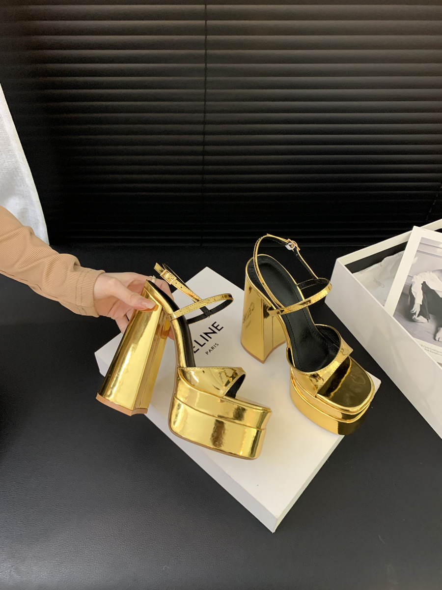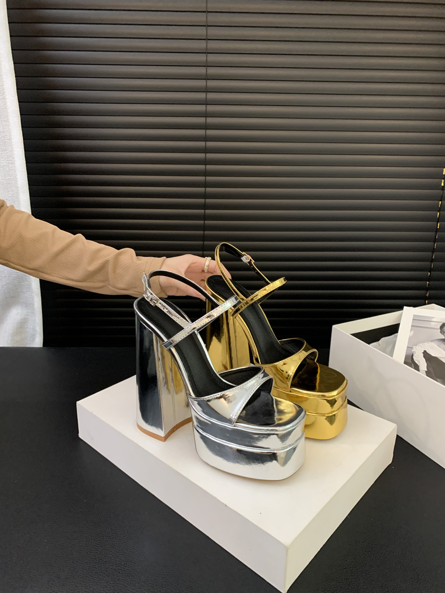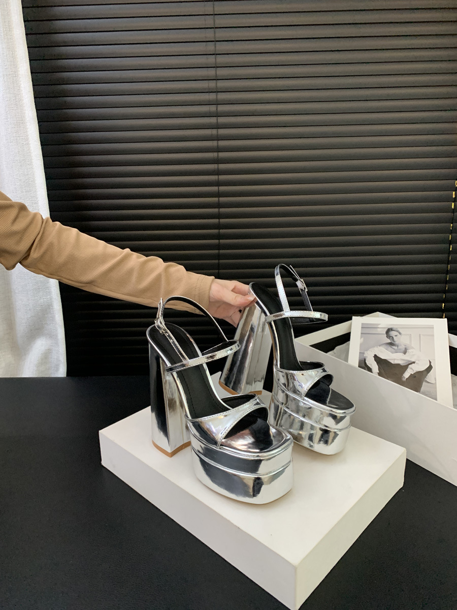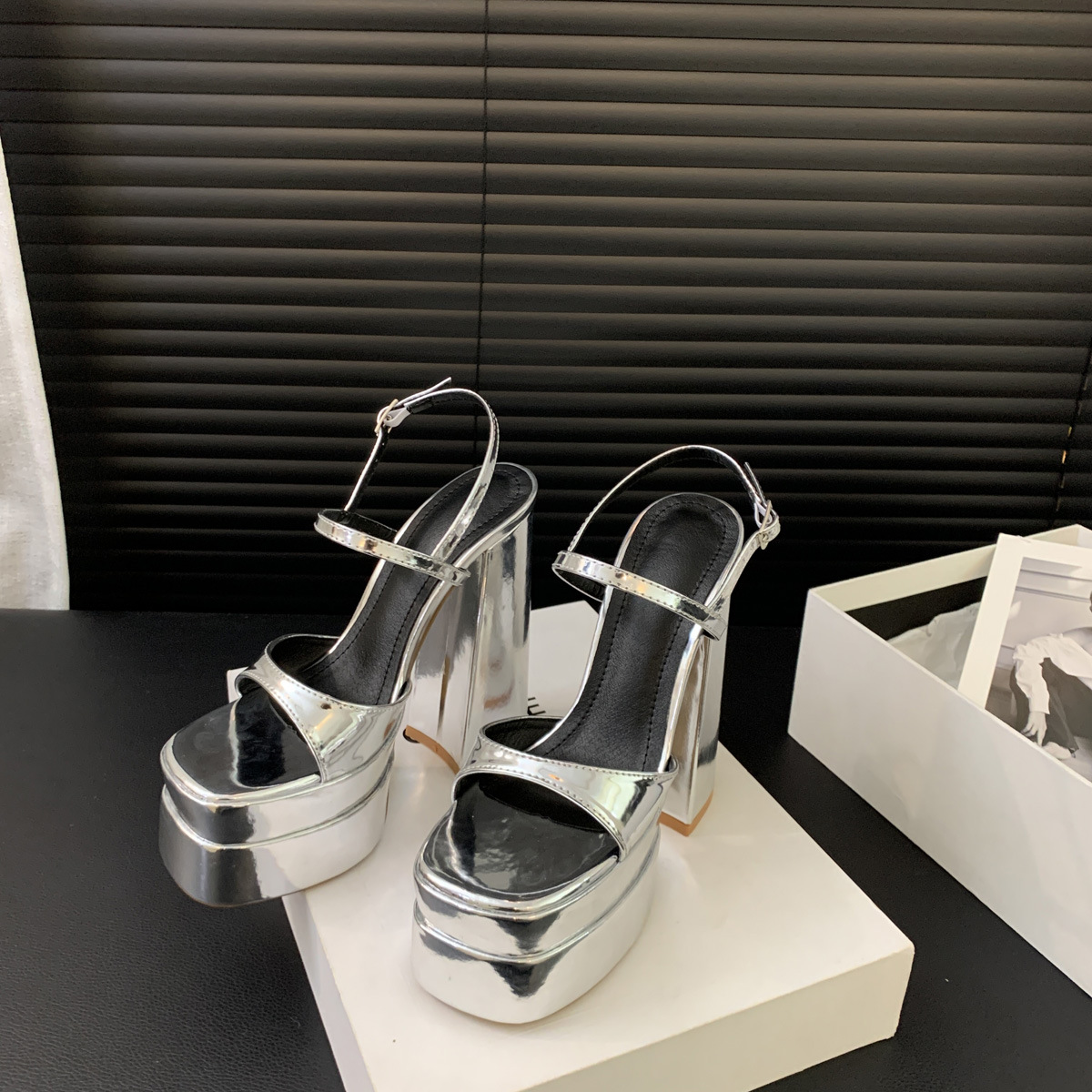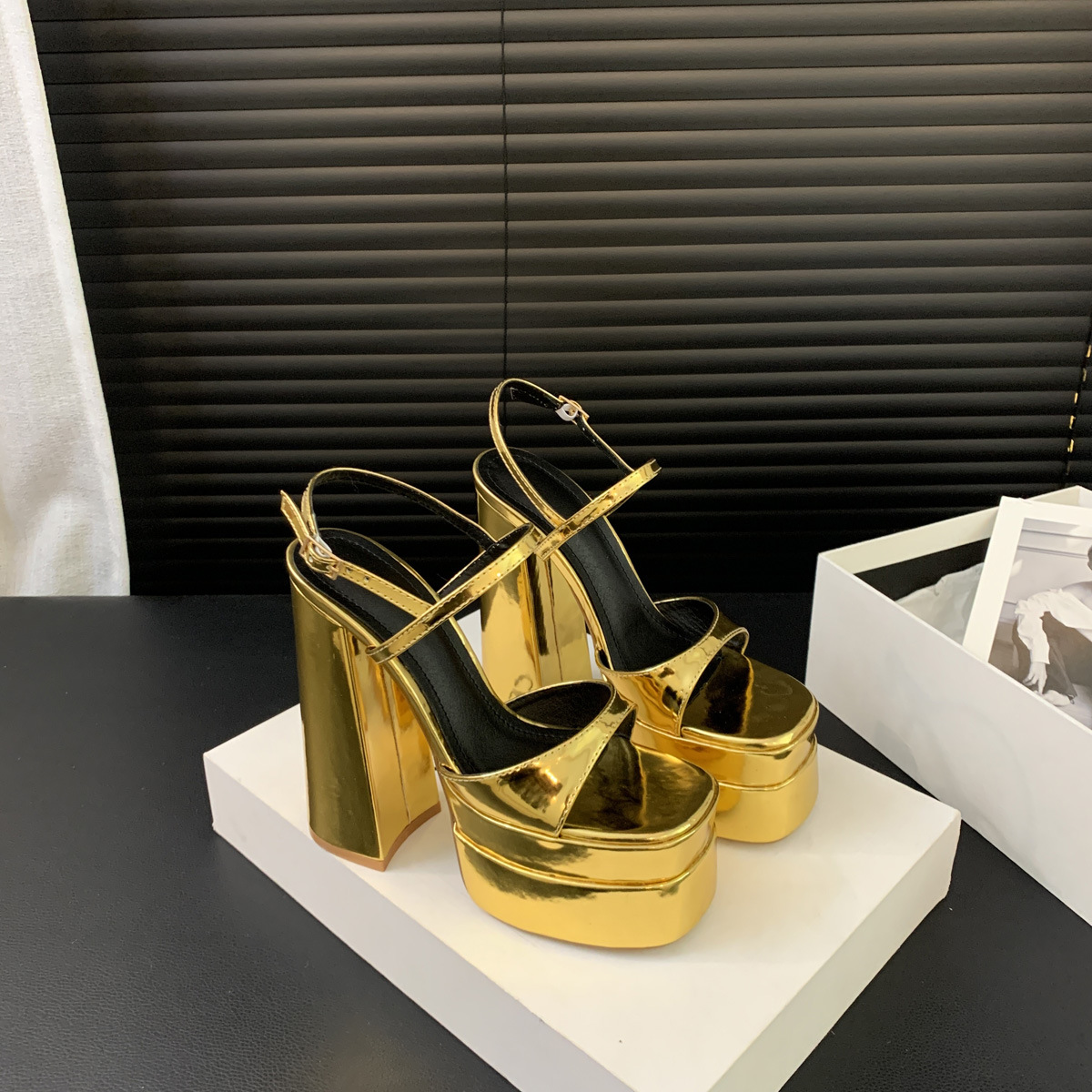 2024 여름 새로운 수로 두꺼운 힐 버클 샌들 14cm 로마 하이힐 힐 대형 신발 버클 샌들스토어 가기