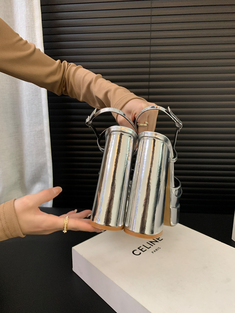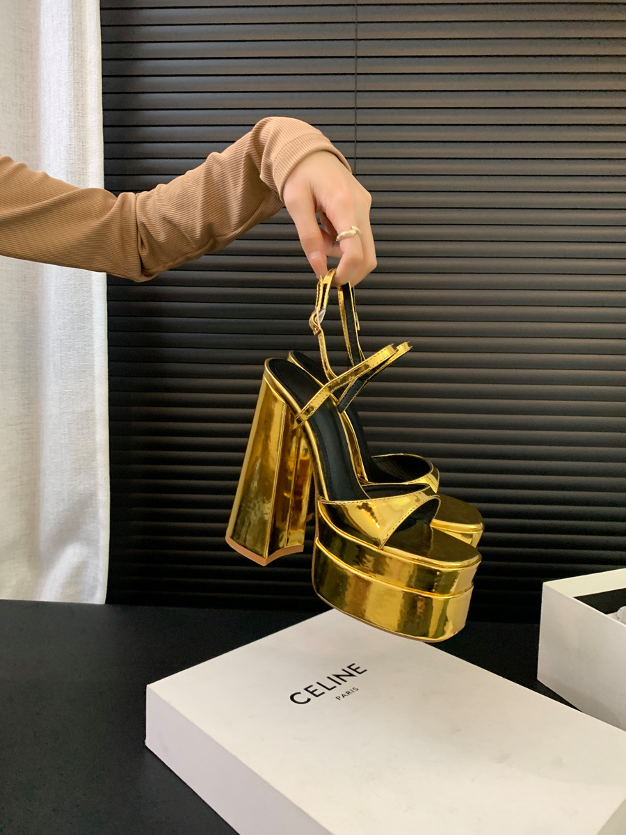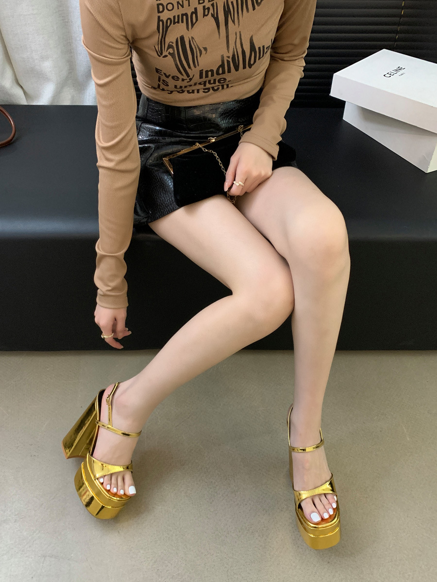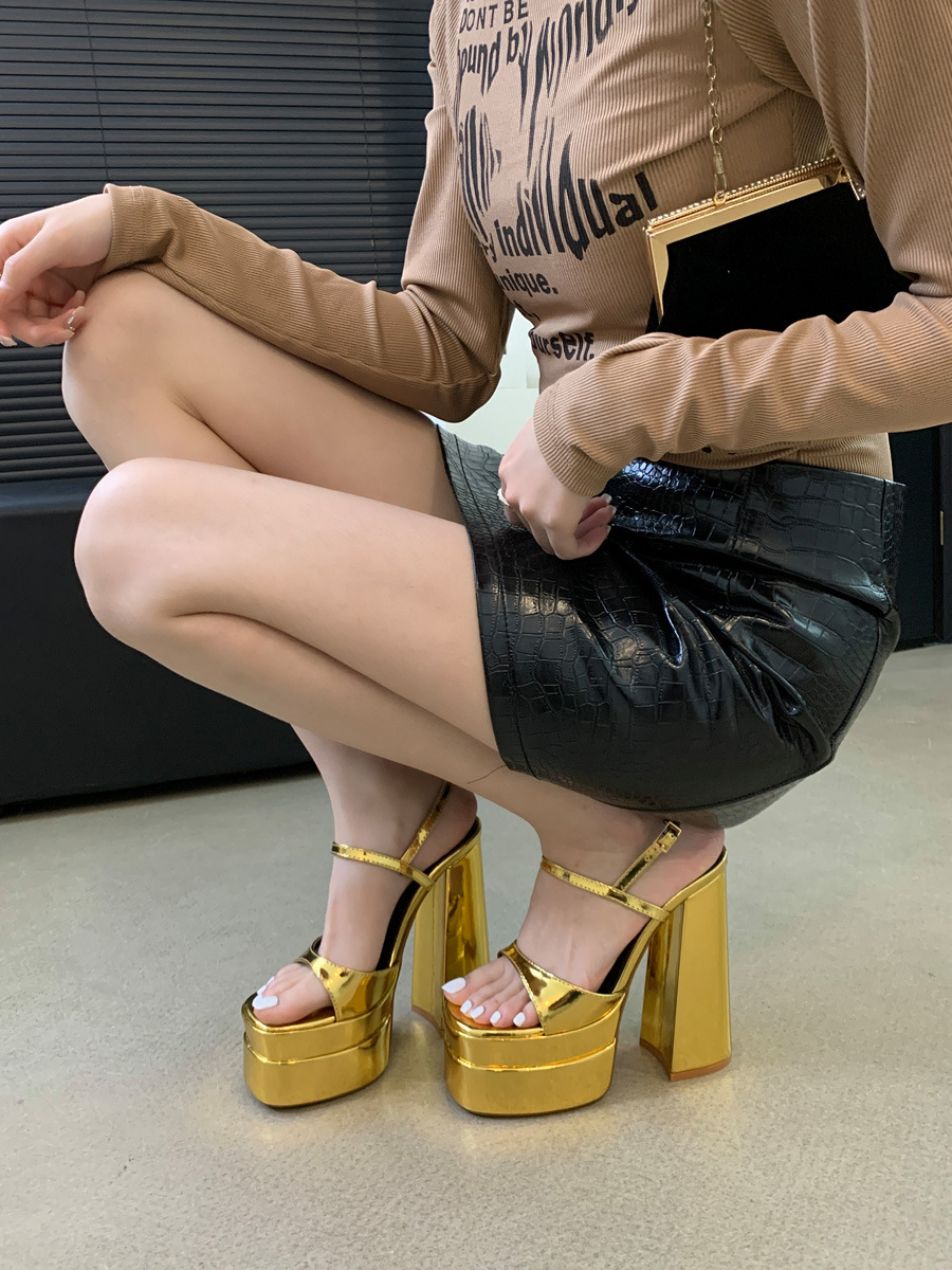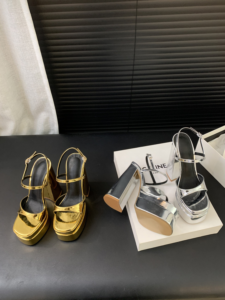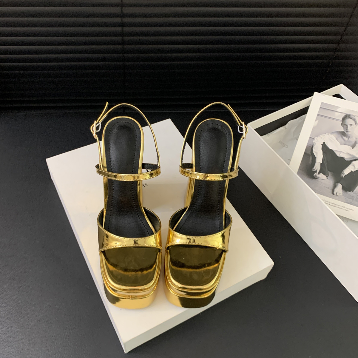 2024 여름 새로운 수로 두꺼운 힐 버클 샌들 14cm 로마 하이힐 힐 대형 신발 버클 샌들스토어 가기