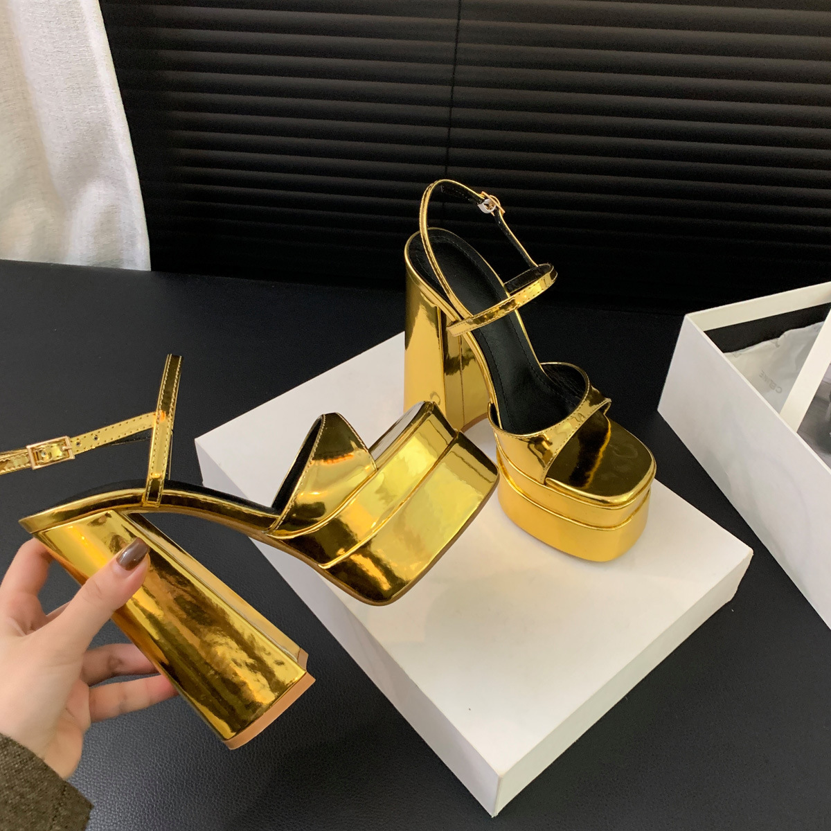 2024 여름 새로운 수로 두꺼운 힐 버클 샌들 14cm 로마 하이힐 힐 대형 신발 버클 샌들