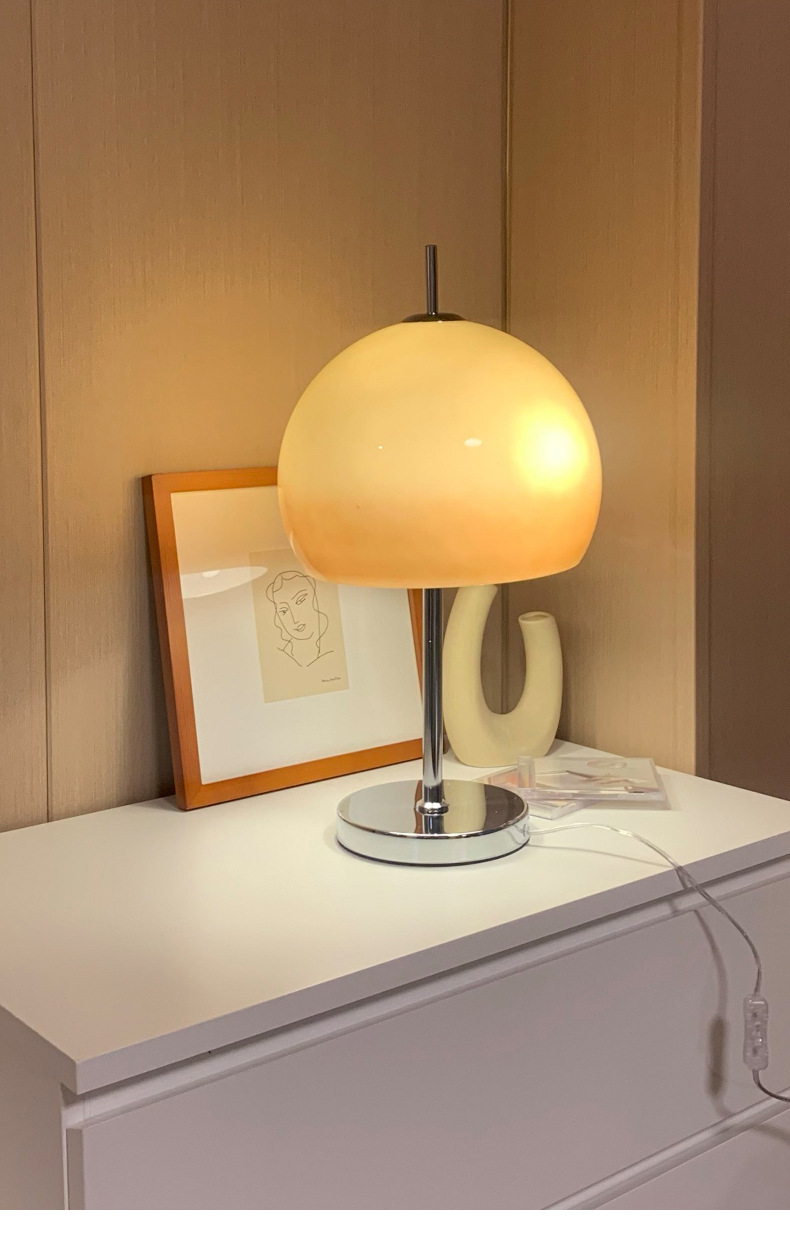 버섯 모양 테이블 램프 거실 침대 옆 인테리어 침실 레트로 크림 스타일 유리 인기 소파 램프 분위기 조명 조광 가능스토어 가기