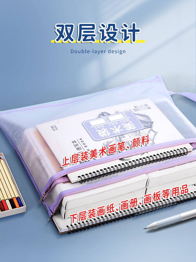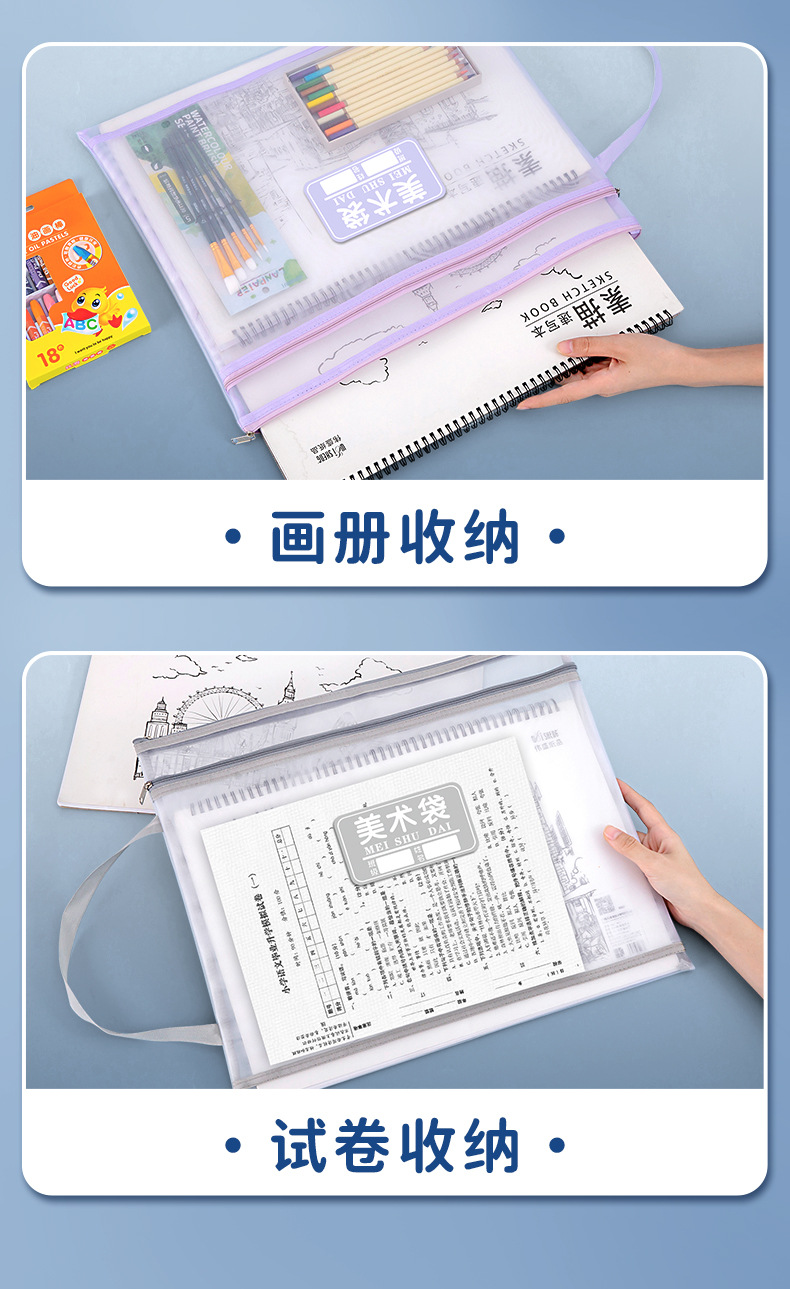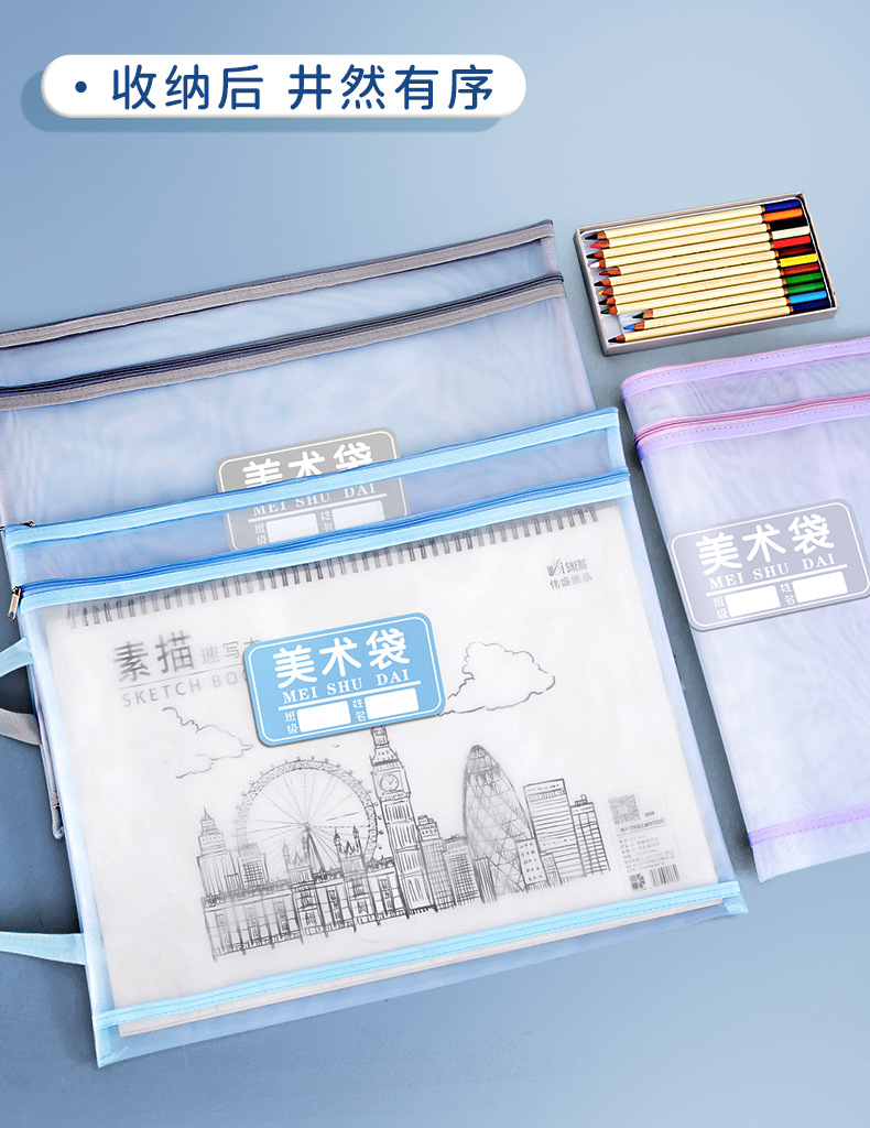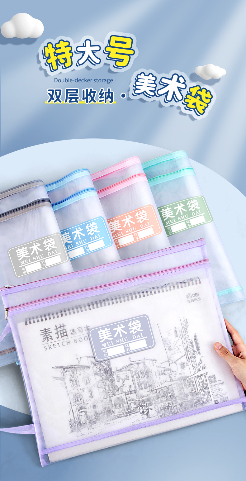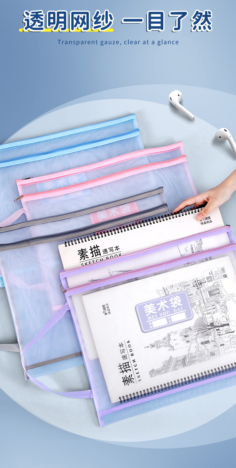 A3 더블 메쉬 아트 가방 투명 지퍼 파일 가방 8K 아트 저장 가방 사진 도구 가방스토어 가기