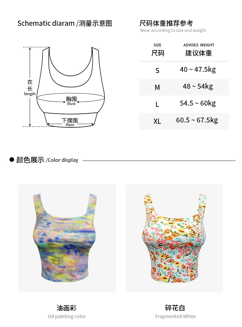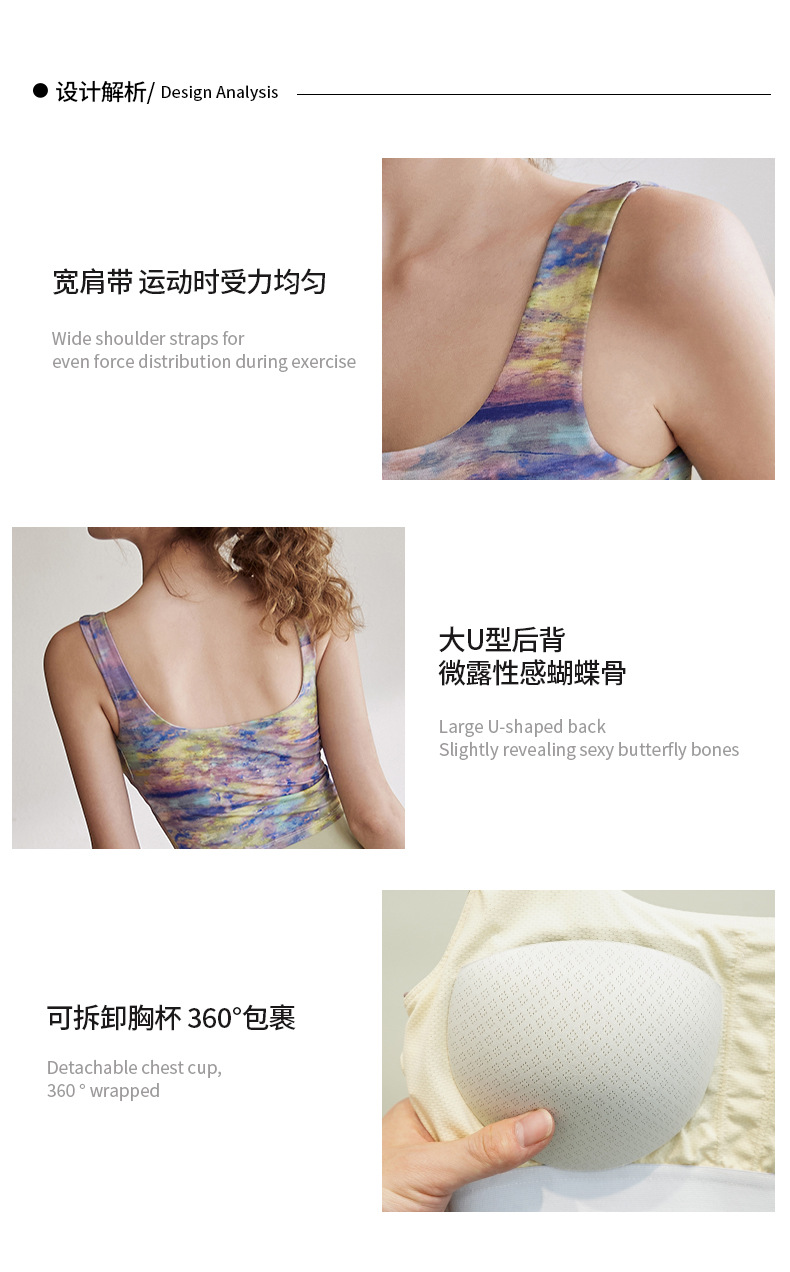 큰 브랜드 평면 크로스 보더 U 자형 등 브래지어 작은 둥근 목 수분 위킹 디지털 인쇄 스포츠 피트니스 조끼