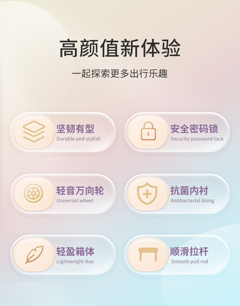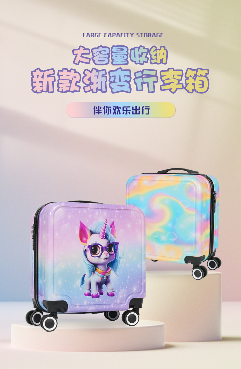 그라데이션 어린이용 여행가방 20inch 대용량 여행가방 비밀번호 잠금 기능 탑재 기내용 가방 선물용 가방 로고 인쇄 가능 도매스토어 가기