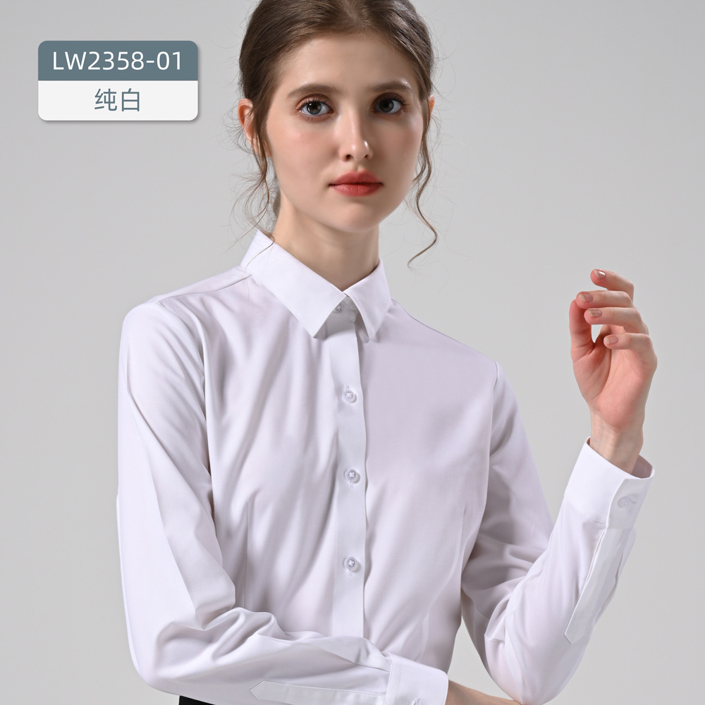 모달 3 방지 여성용 흰색 작업복 셔츠 비즈니스 비 다림질 긴 소매 손쉬운 화이트 칼라 여성용 셔츠 바지스토어 가기