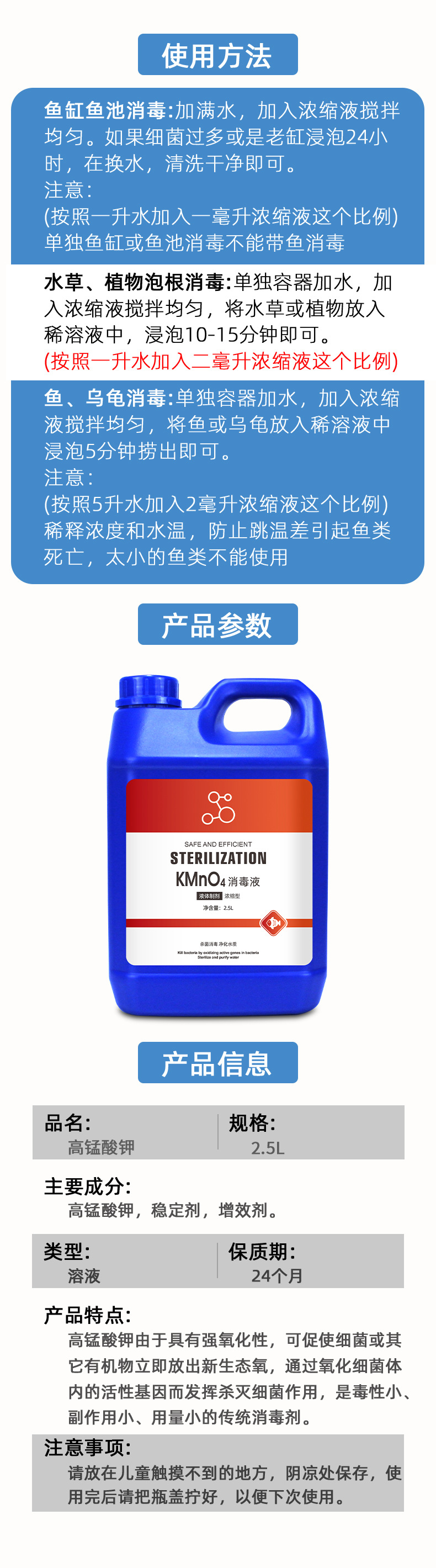 칼륨 칼륨 칼륨 어류 용액 분말 수족관 공급 어항 공장 살균 살균제 고강도 칼륨 정수기스토어 가기
