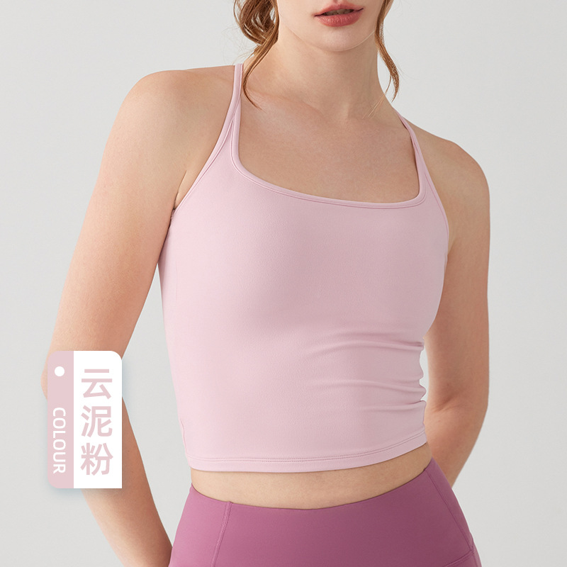 중간 강도 스포츠 조끼 여자 고정 컵 필라테스 달리기 훈련 피트니스 충격 방지 요가 브래지어 탑스토어 가기