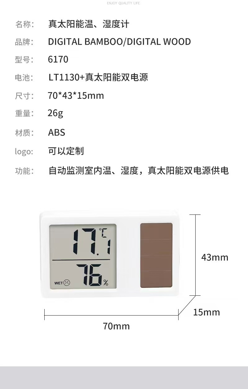 小号太阳能款温湿度计:50*30*12MM