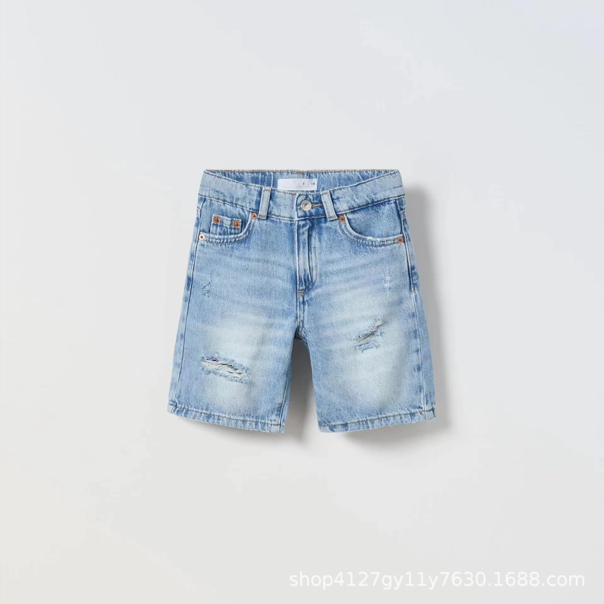 2024 봄과 여름 새로운 블루 데님 소녀 어린이 착용 높은 허리 반바지 캐주얼 통기성 착용 편안한 사랑 스타일스토어 가기