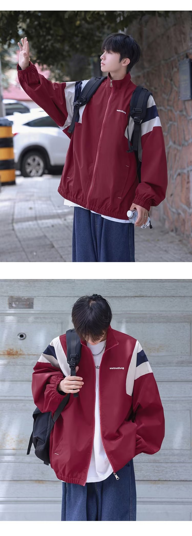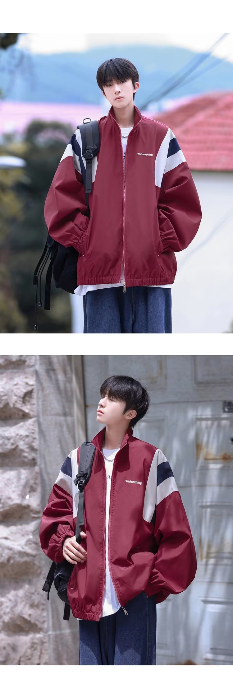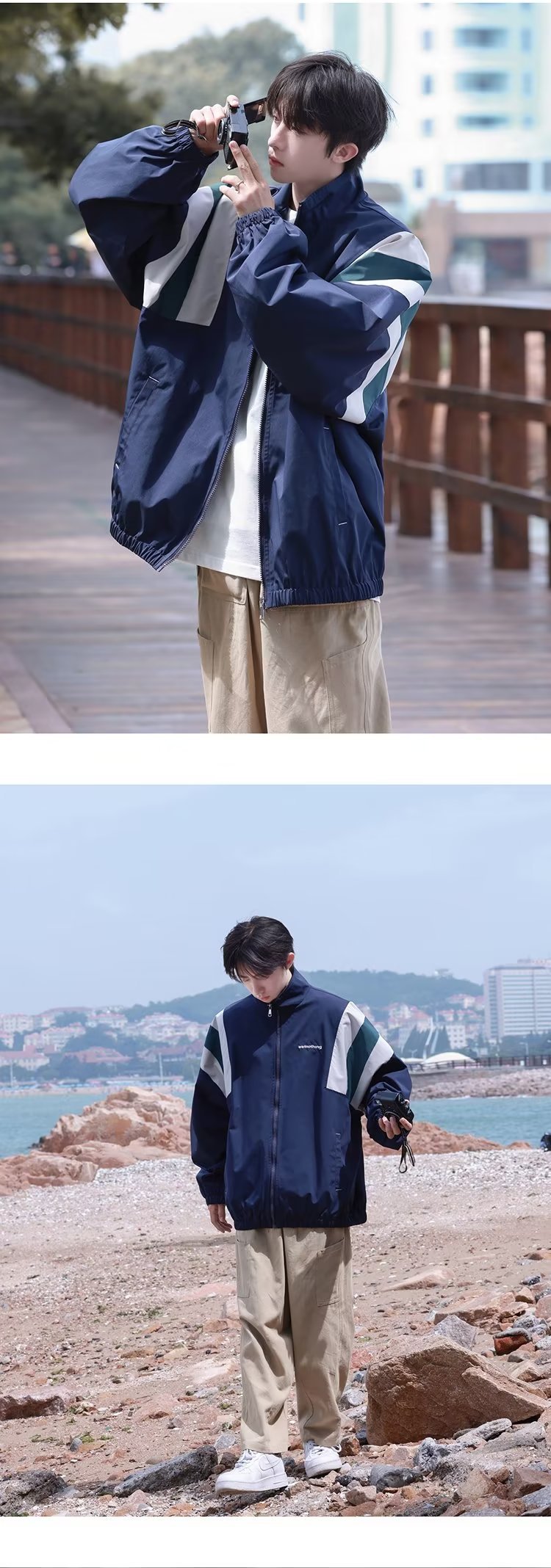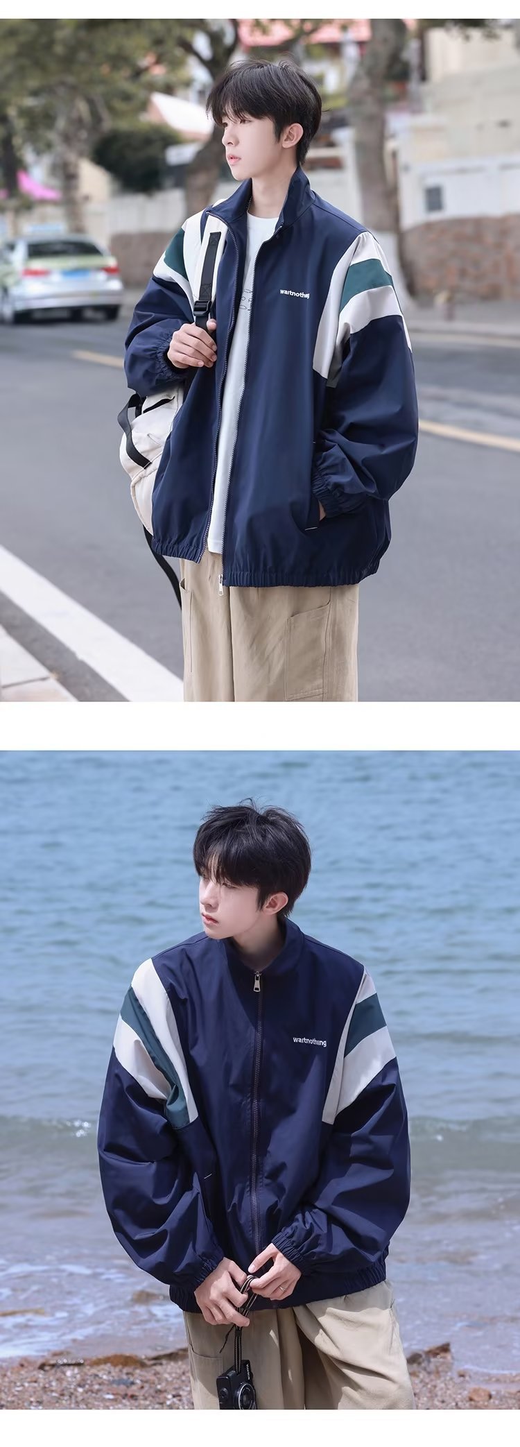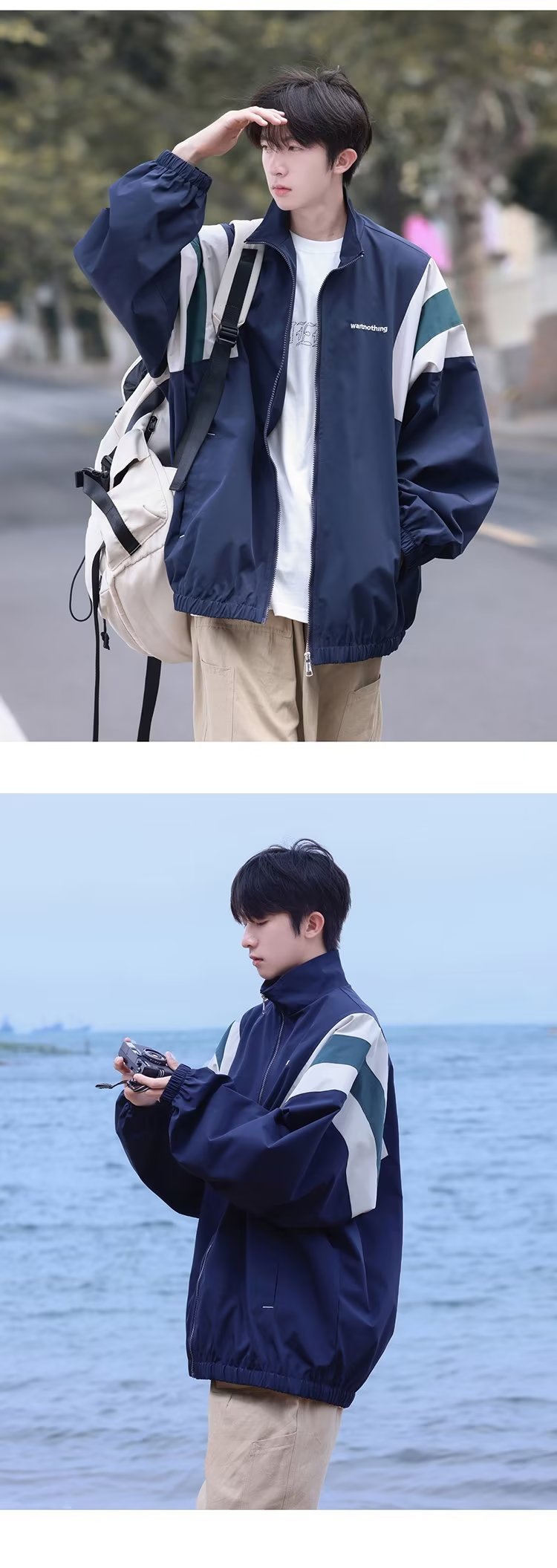 일본 복고풍 컬러 매칭 재킷 남성 가을 야외 캐주얼 방풍 재킷 패션 브랜드 한국식 느슨한 작업복 재킷스토어 가기