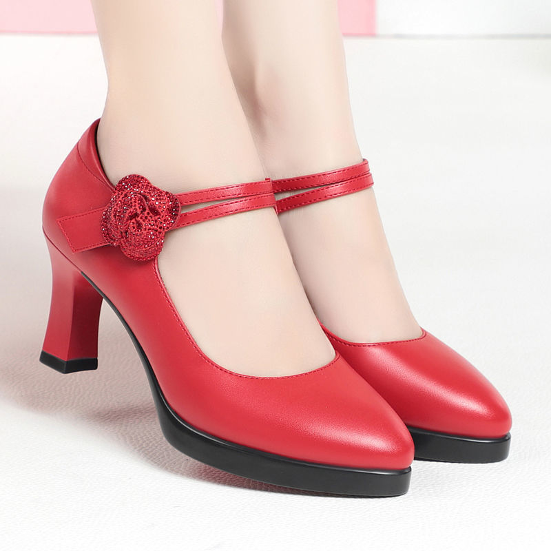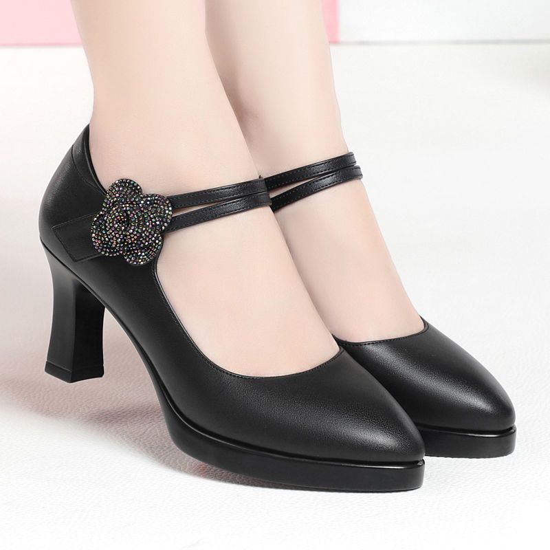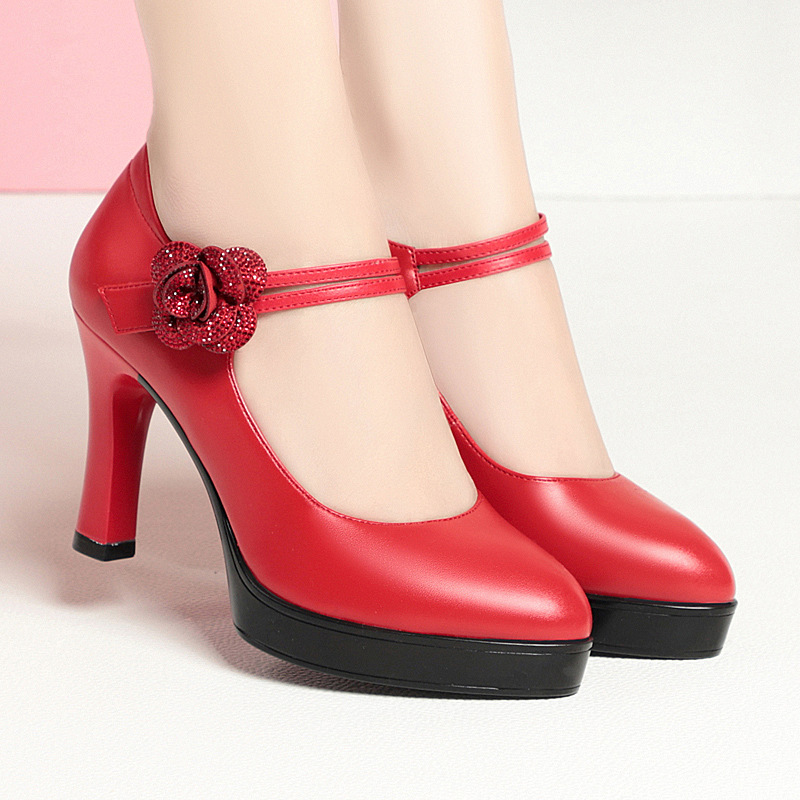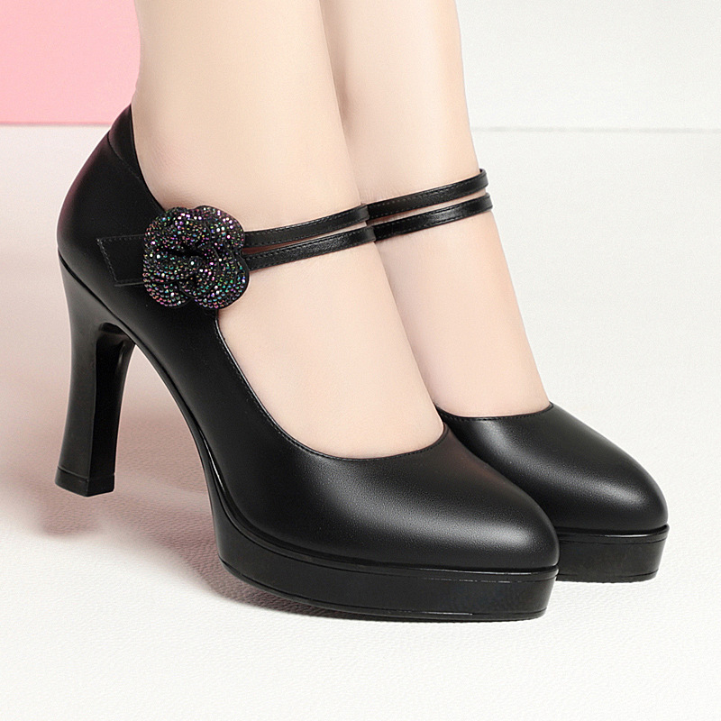 싱글 레이어 신발 새로운 우아한 패션 서양식 치삼 캣워크 하이힐 여성 오래 서 피곤하지 않은 발 방수 플랫폼 여성 가죽 신발스토어 가기