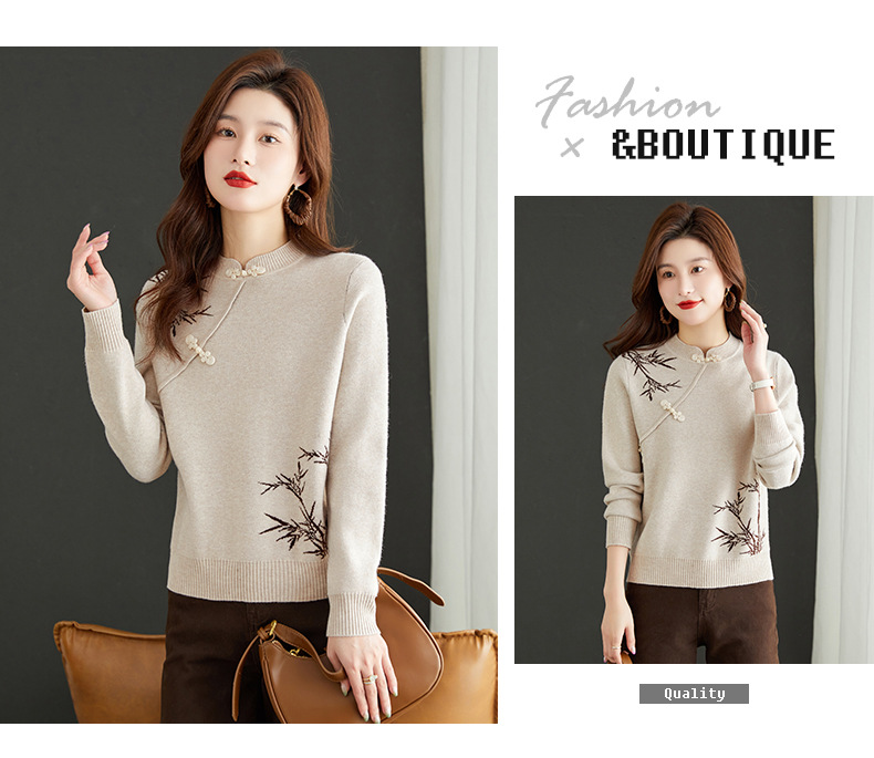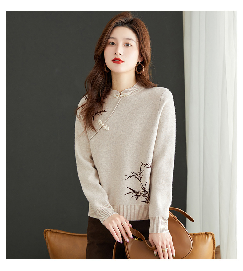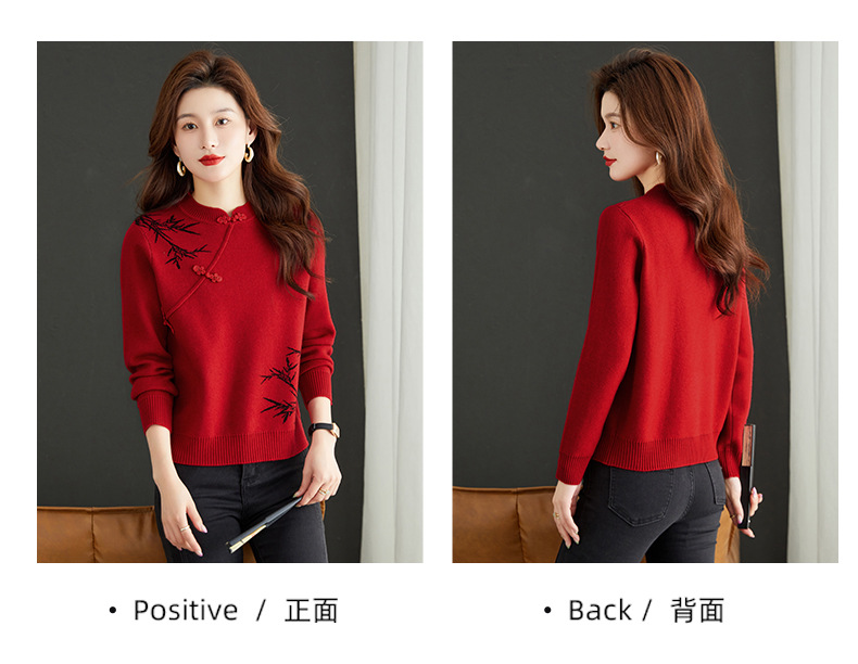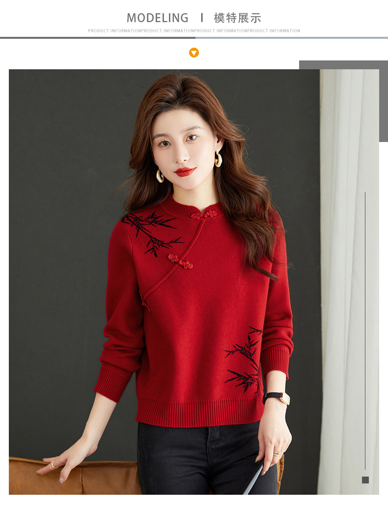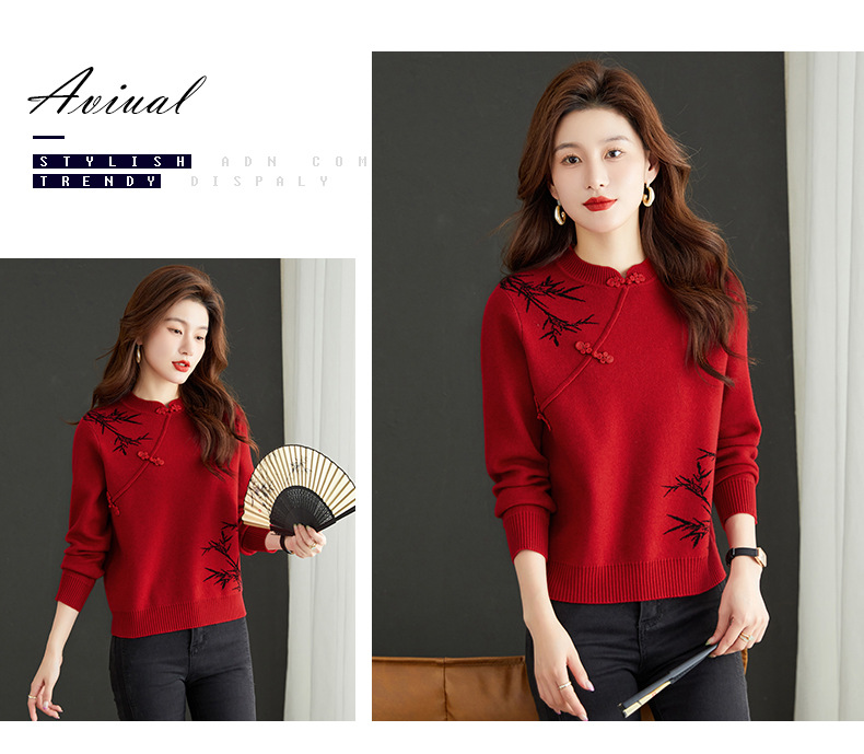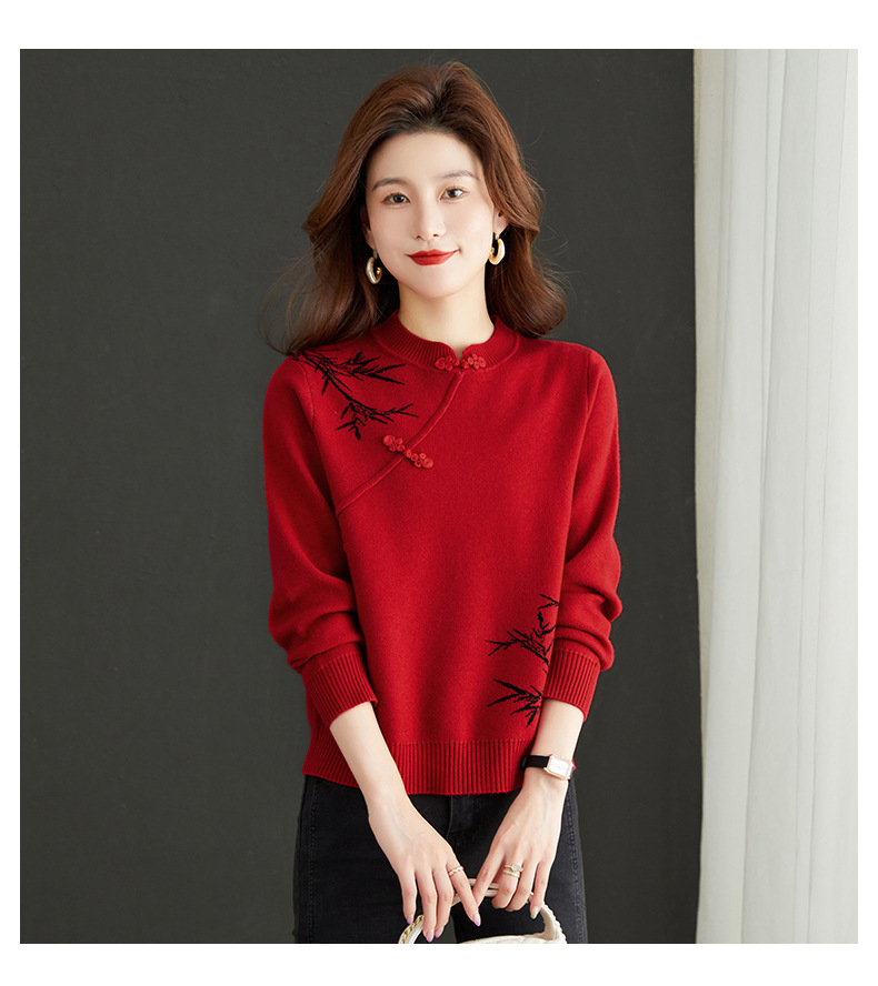 새로운 가을과 겨울 중국 스타일 버클 드래곤 2024 여성을위한 새로운 중국 스타일의 빨간 스웨터 새해 내부 바닥 스웨터스토어 가기