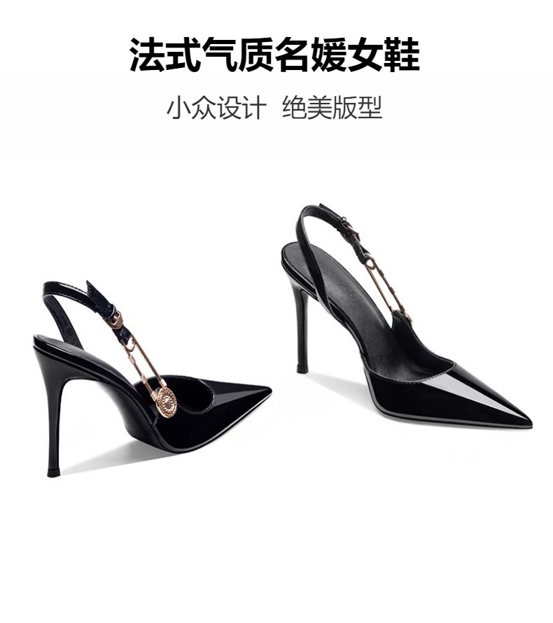 정품 양가죽 2025 봄 여름 검은색 하이힐, 발가락이 빈 스트랩, 여성용 우아하고 섹시한 샌들스토어 가기