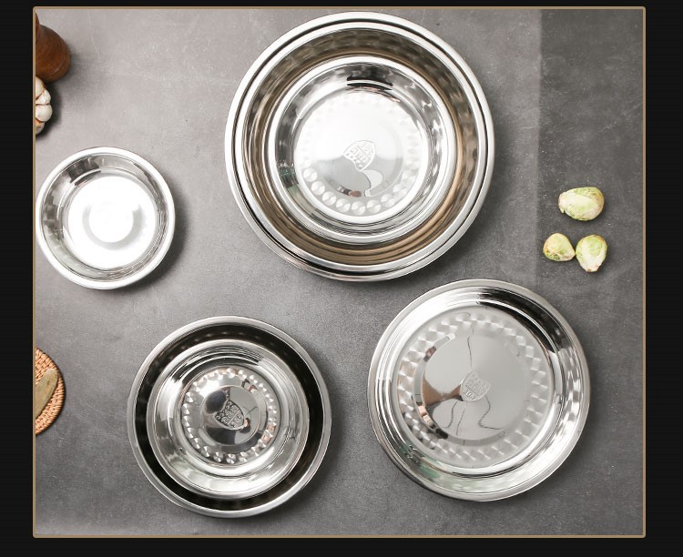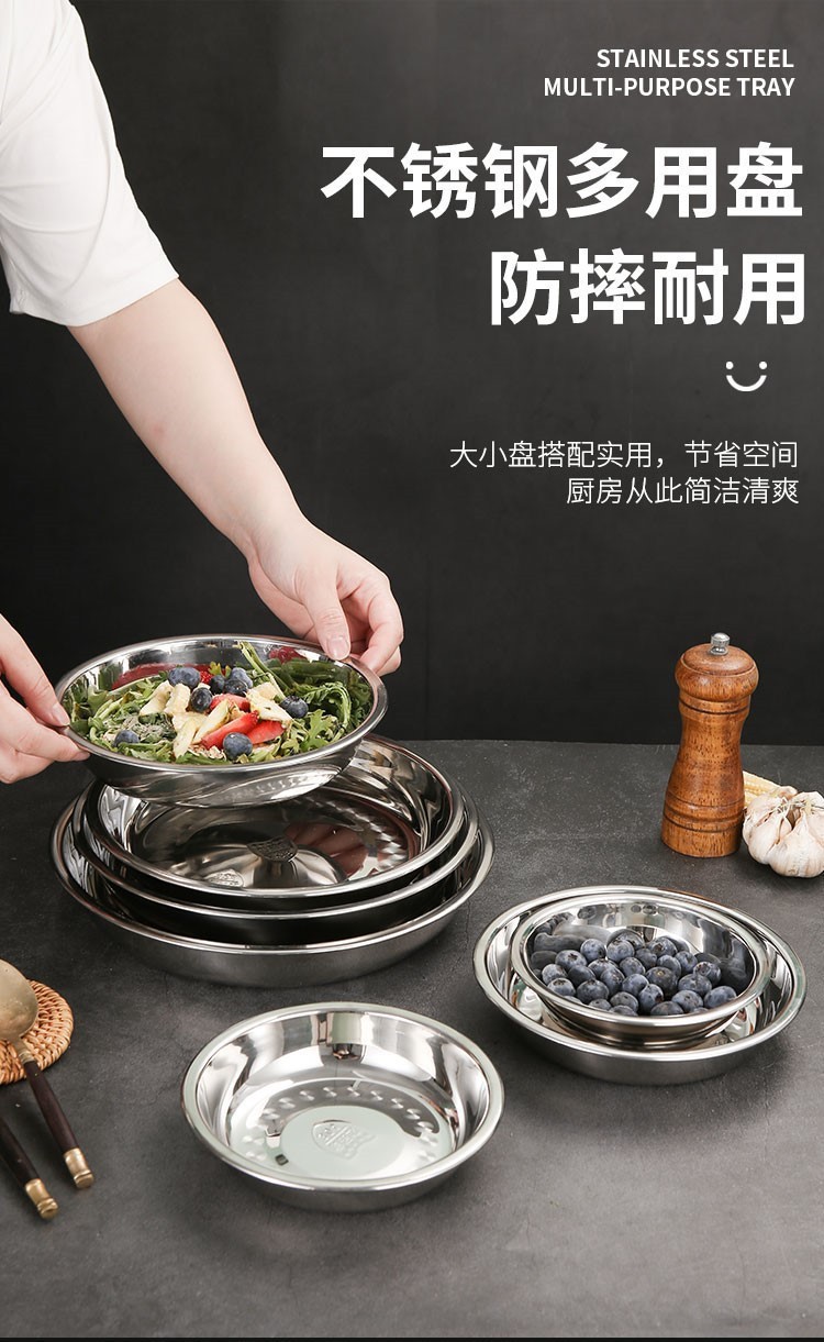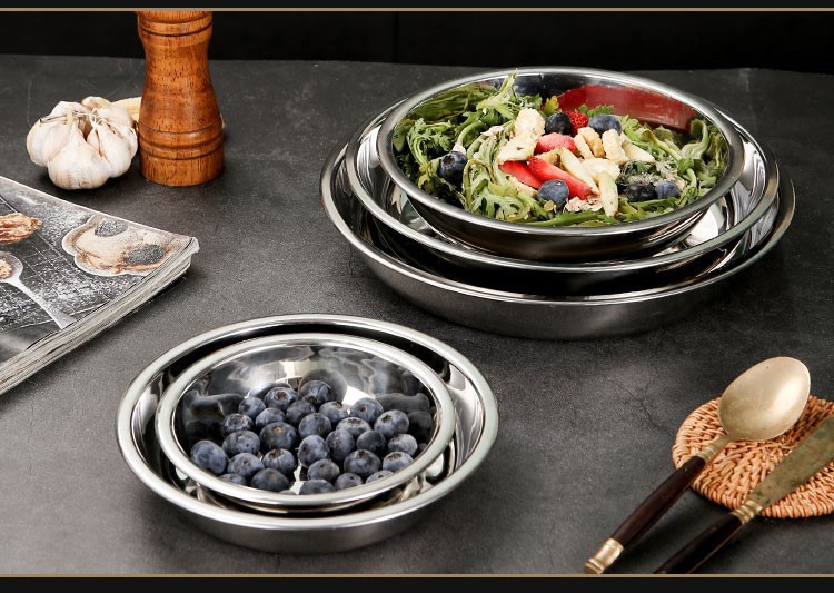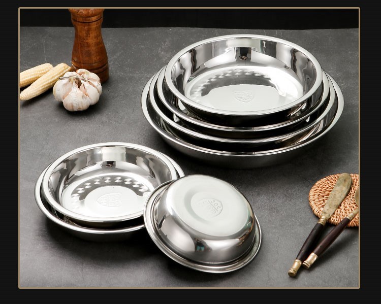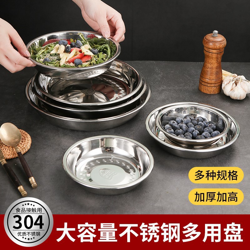 도매 두꺼운 304 스테인레스 스틸 디스크 비 자기 다목적 바베큐 판 심화 플랫 접시 식품 트레이스토어 가기