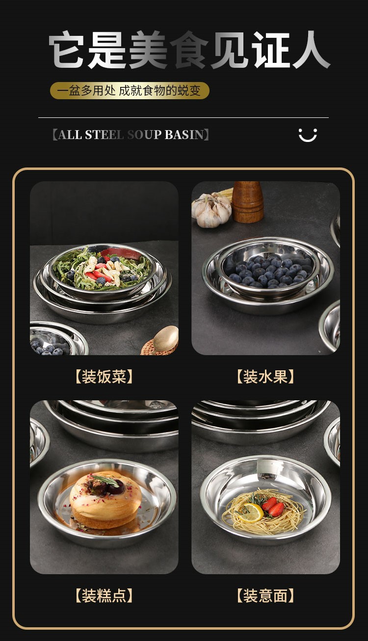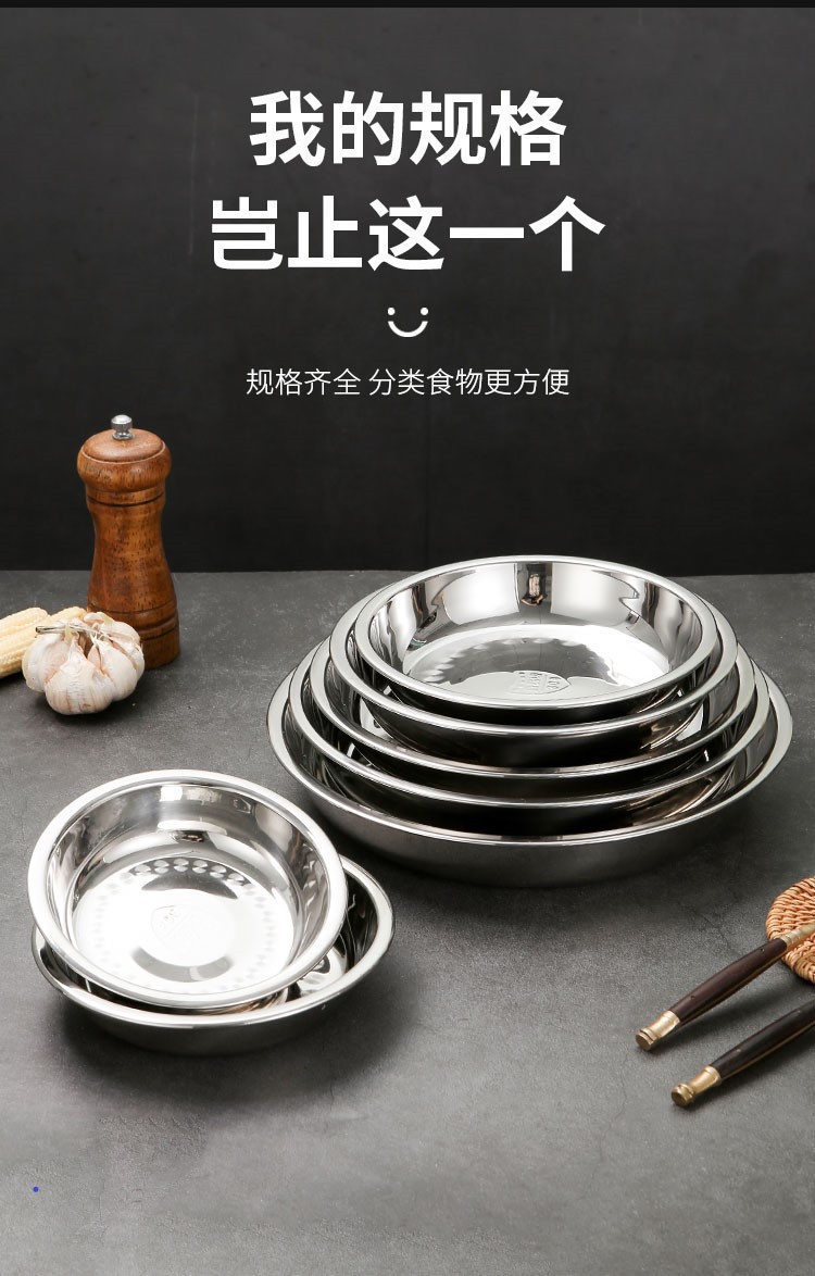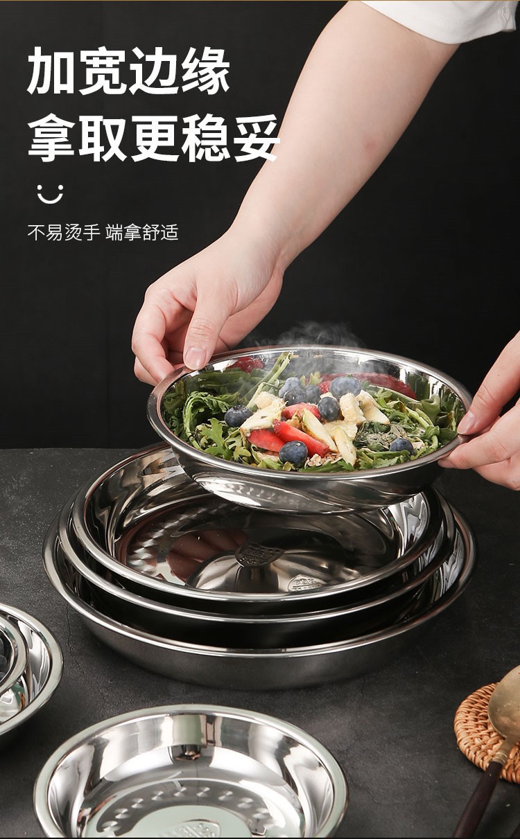 도매 두꺼운 304 스테인레스 스틸 디스크 비 자기 다목적 바베큐 판 심화 플랫 접시 식품 트레이