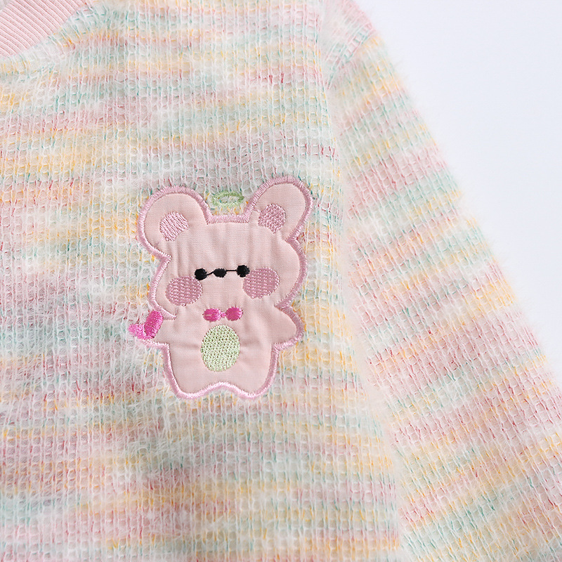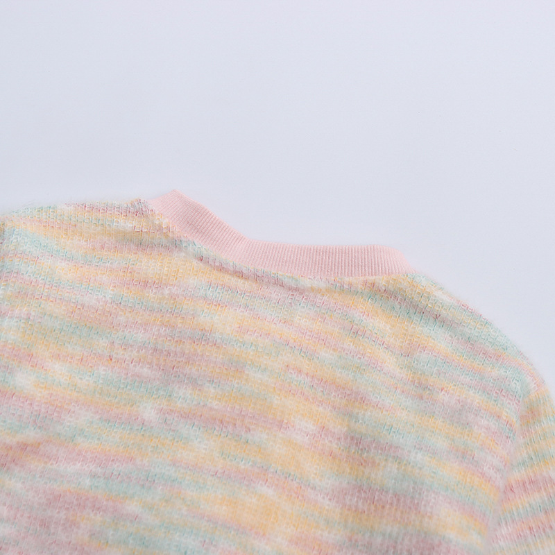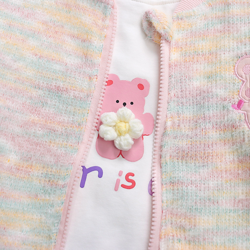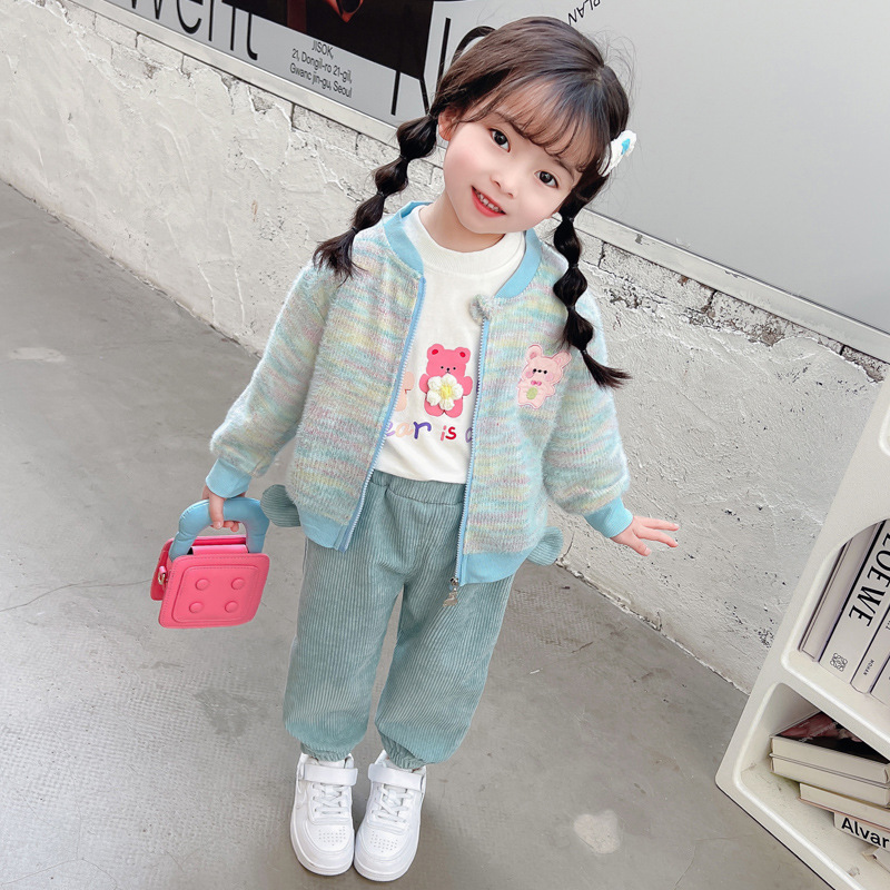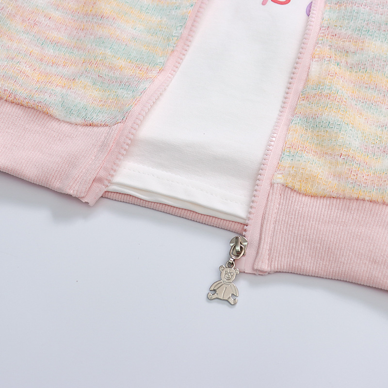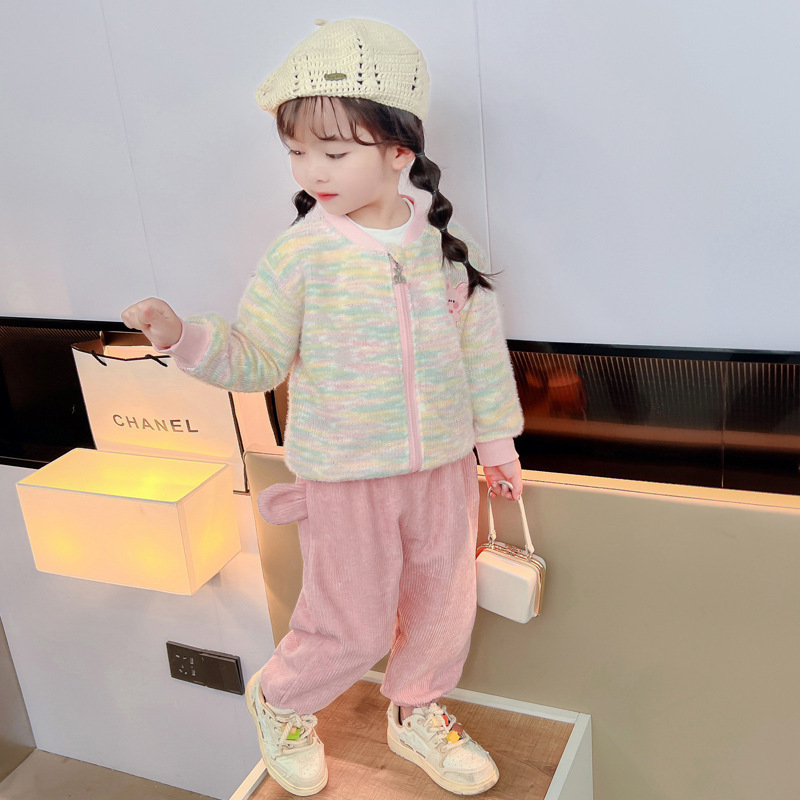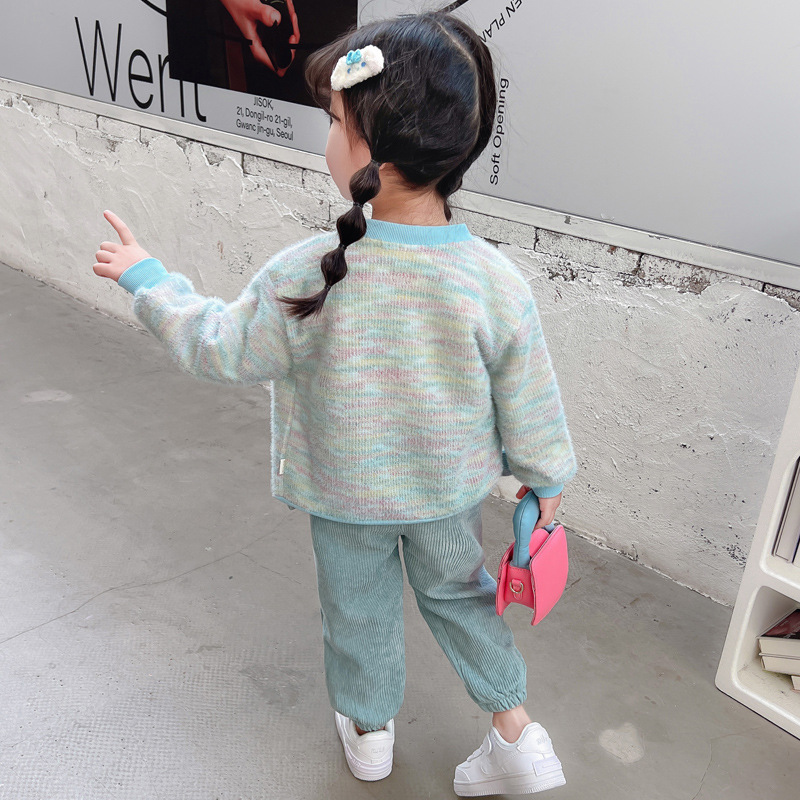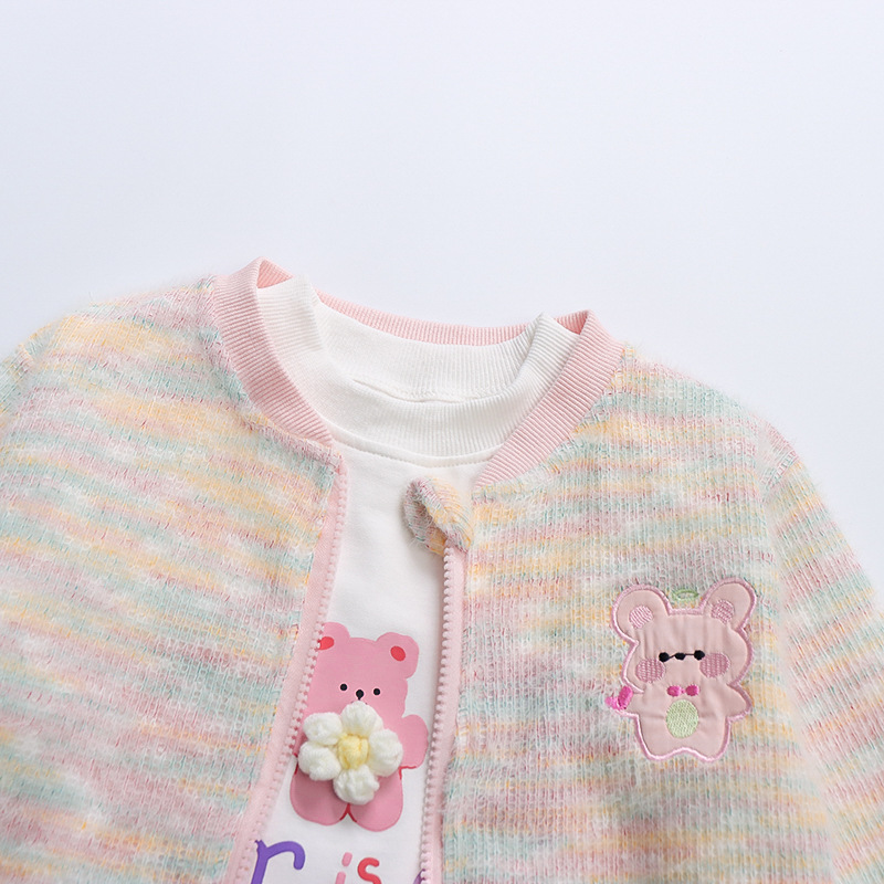 어린 소녀 봄 의류 2024 봄 새로운 어린이 무지개 카디건 코트 아기 소녀 스포츠 레저 3 피스 정장 패션스토어 가기
