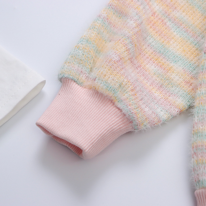 어린 소녀 봄 의류 2024 봄 새로운 어린이 무지개 카디건 코트 아기 소녀 스포츠 레저 3 피스 정장 패션