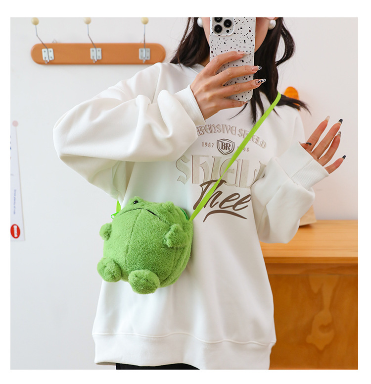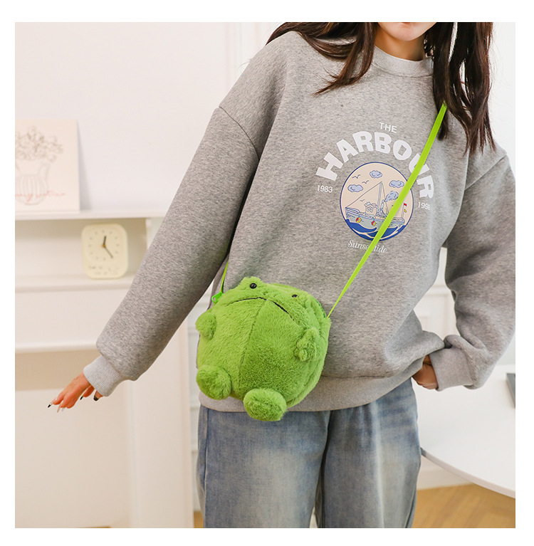 일본 만화 개구리 메신저 가방 2024 새로운 패션 봉제 어깨 가방 스푸핑 귀여운 인형 메신저 가방스토어 가기