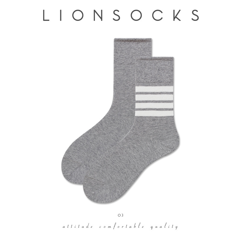 여성 미드 튜브 양말 봄과 여름 스타킹 흑백 회색 양말 여성의 빗질 코튼 스트라이프 양말 스포츠 4 바 2122
