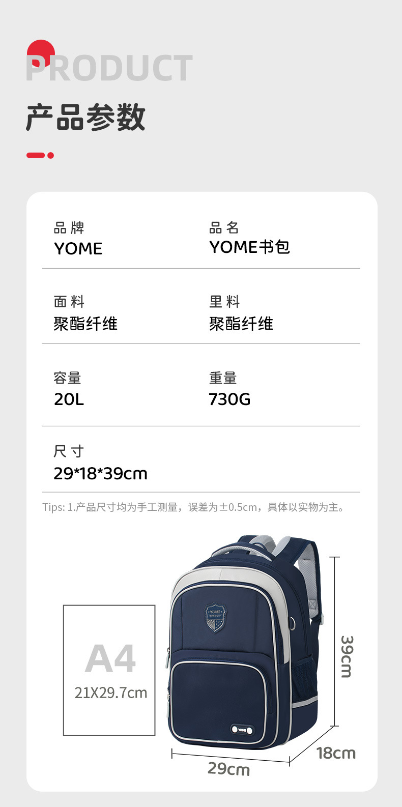 원제조사 요메 영국식 책가방 초등학생 1~5학년 여학생 남학생 초경량 경량화