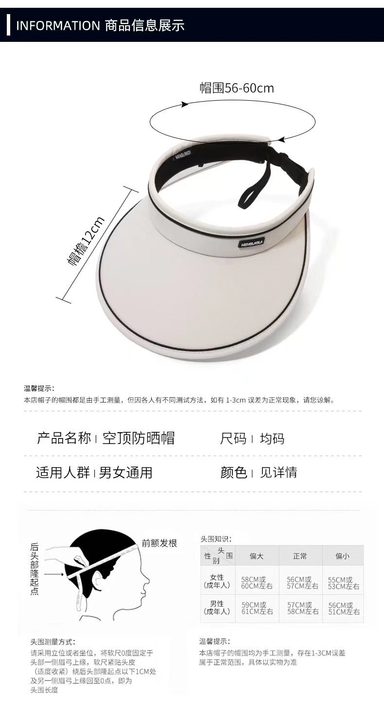 선스크린 모자 여성의 여름 빈 모자 큰 브림 차양 모자 대형 얼굴 태양 모자 선 스크린 여름 모자 도매스토어 가기