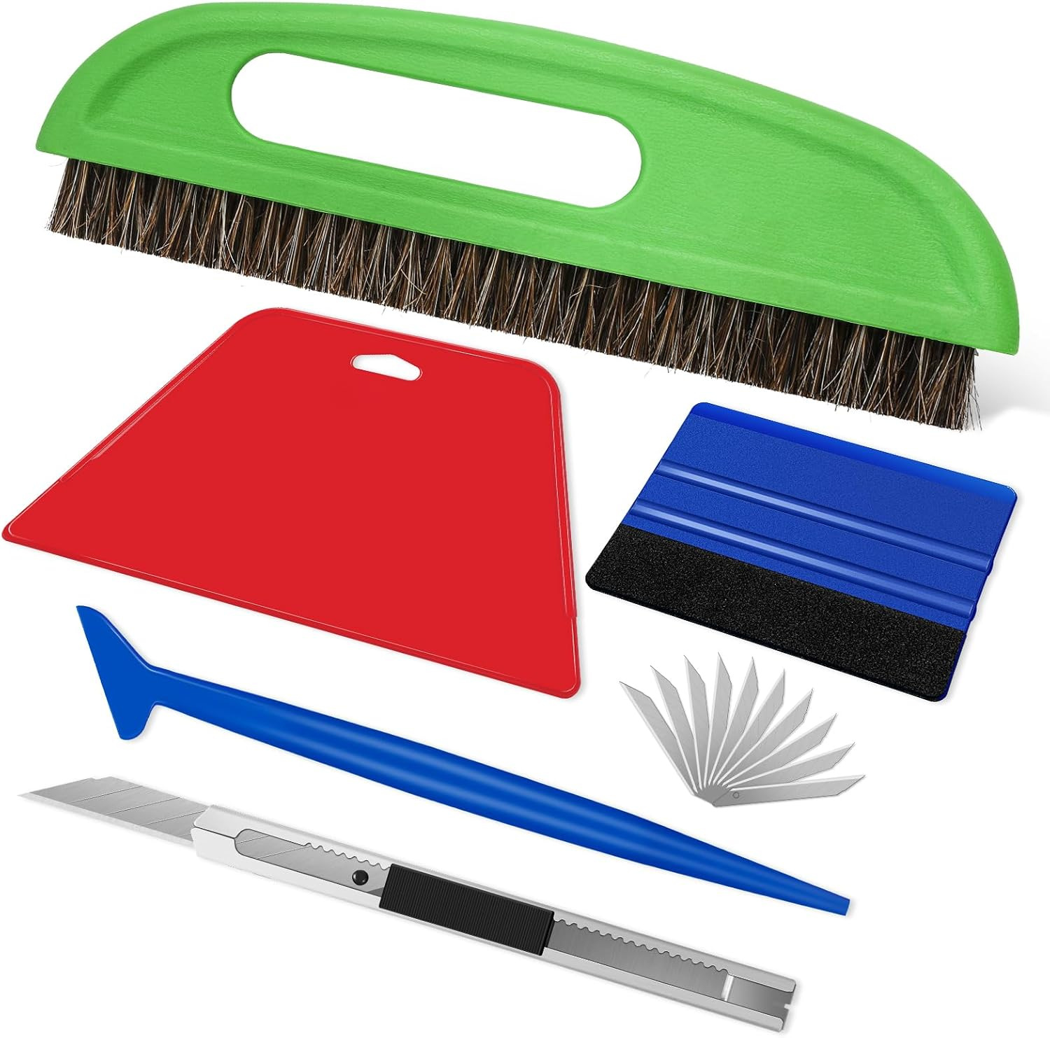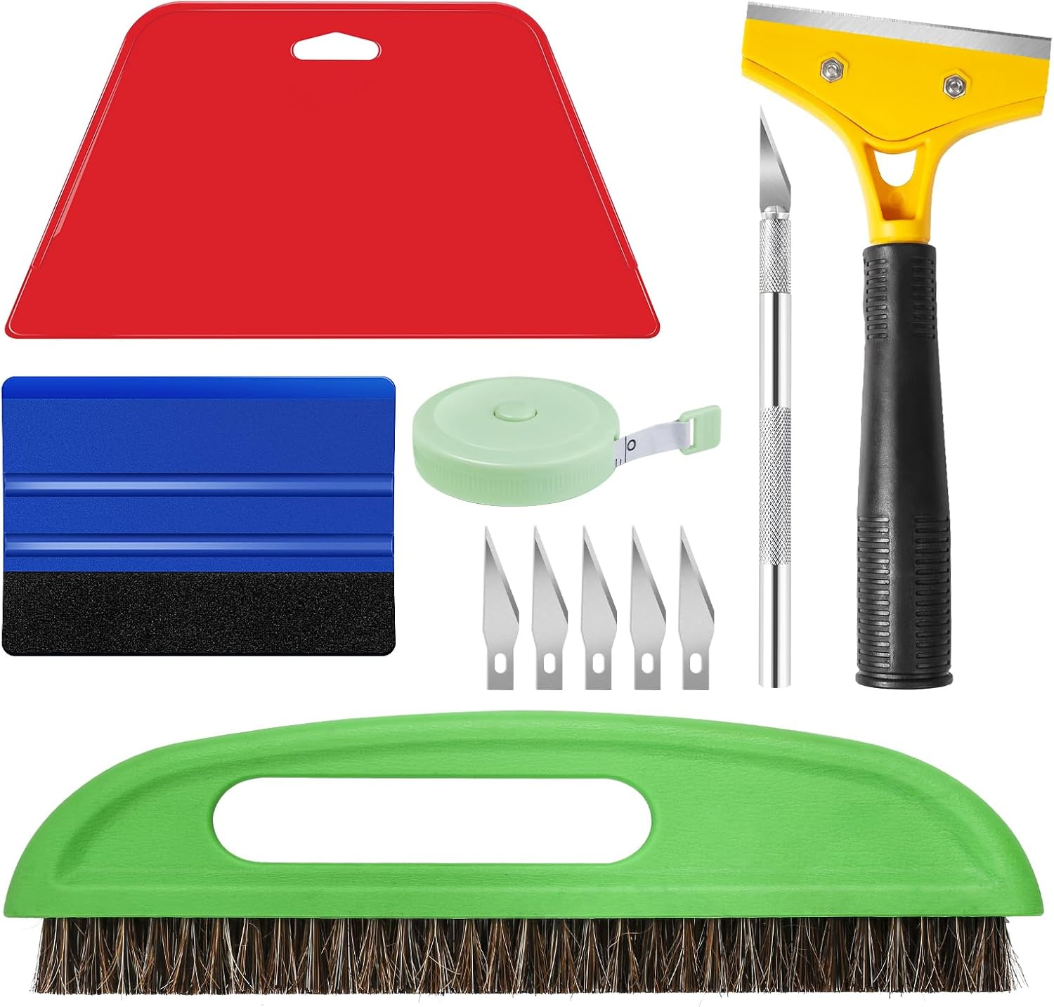 这套四个刮刀可用于各种用途,如去除接触纸、彩色玻璃膜、车窗膜、剥离和粘贴壁纸等。无论你是需要刮去旧墙纸,贴上新贴花,还是清洁窗户。