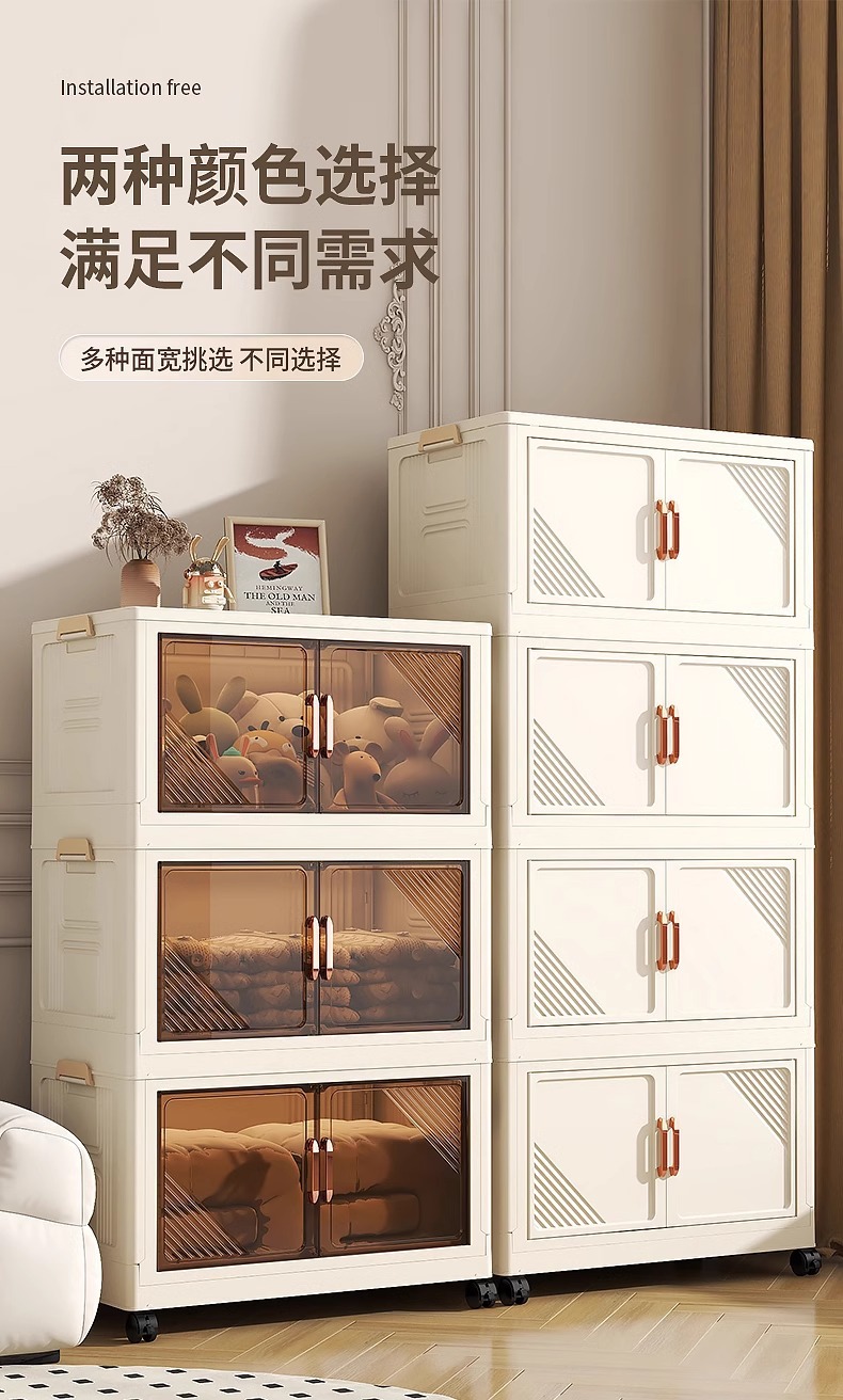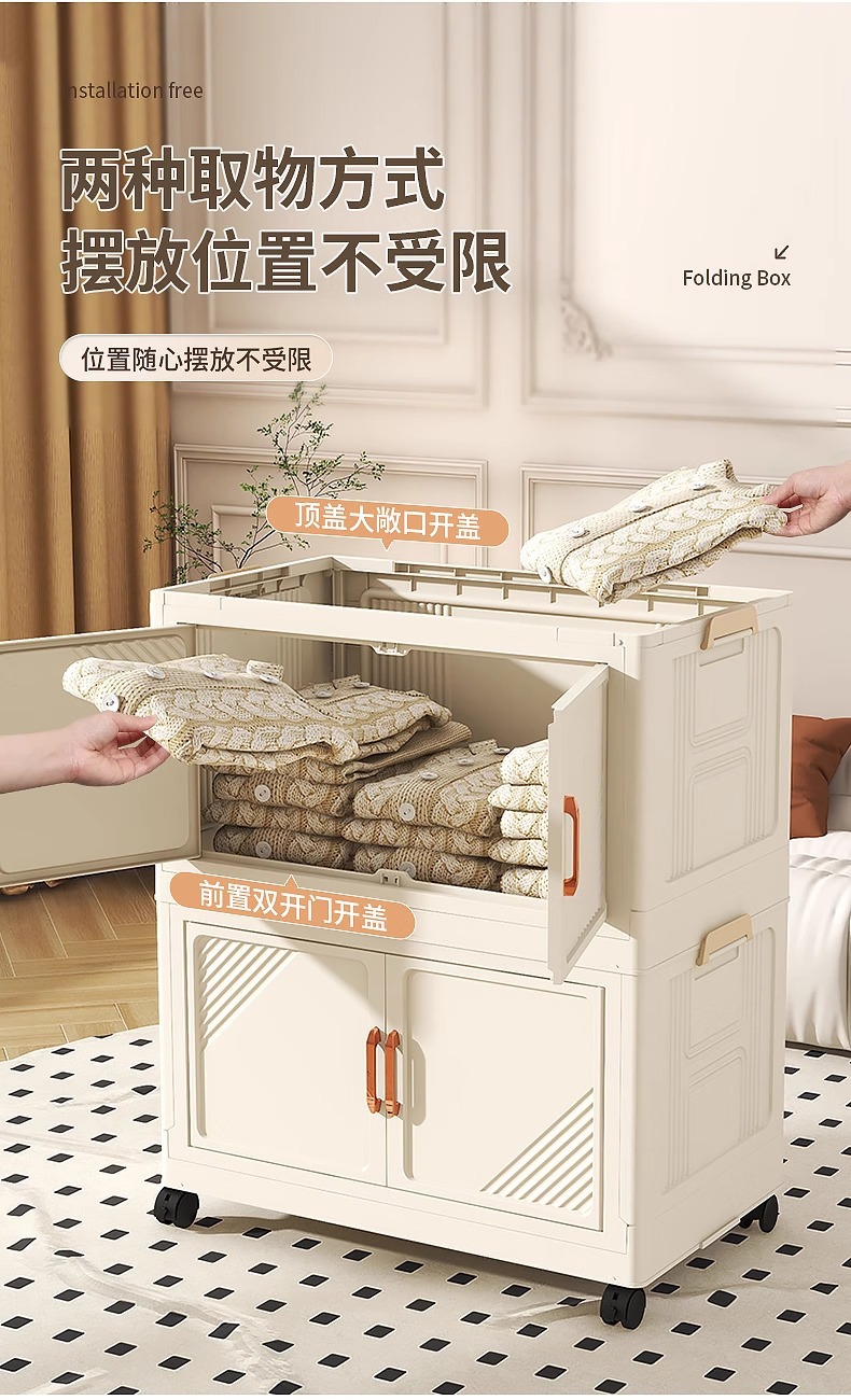 더블 도어 저장 상자 접이식 사물함 옷 장난감 접이식 저장 상자 이동식 다층 보관 캐비닛