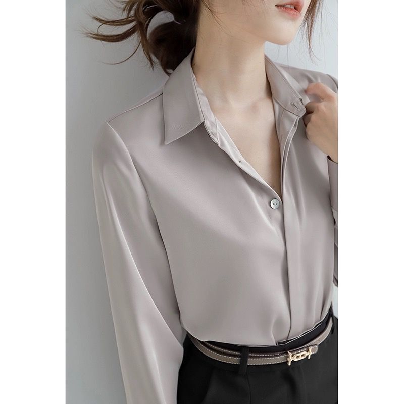 2025년 가을 신상 심플하고 우아한 출퇴근용 여성 셔츠, 실크처럼 부드러운 고급스러운 도시 스타일 긴팔 셔츠스토어 가기