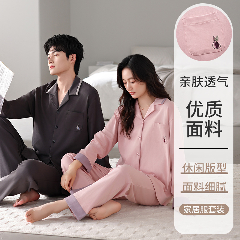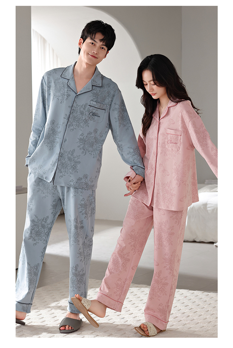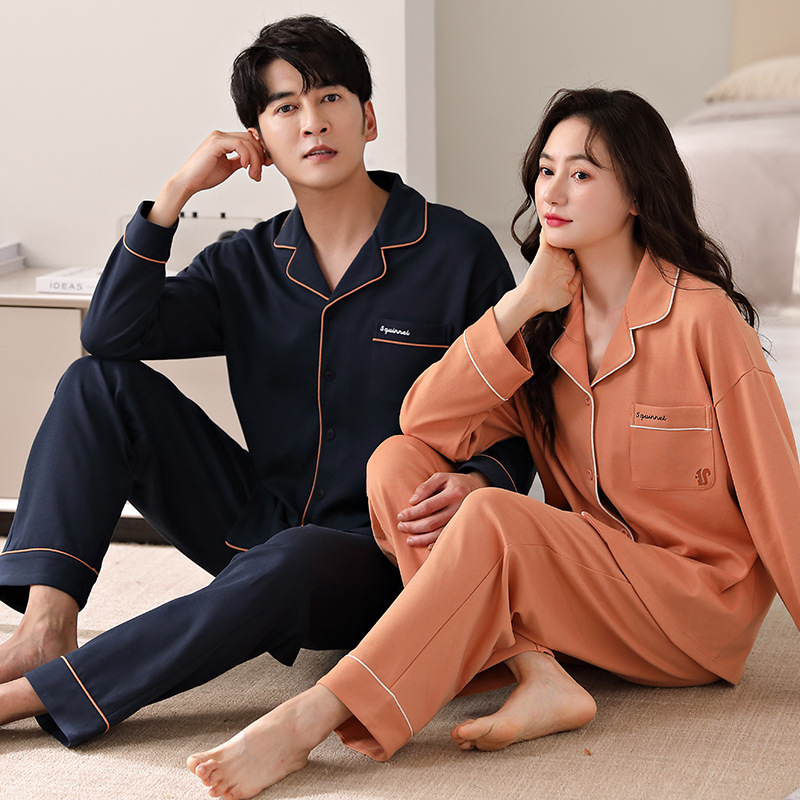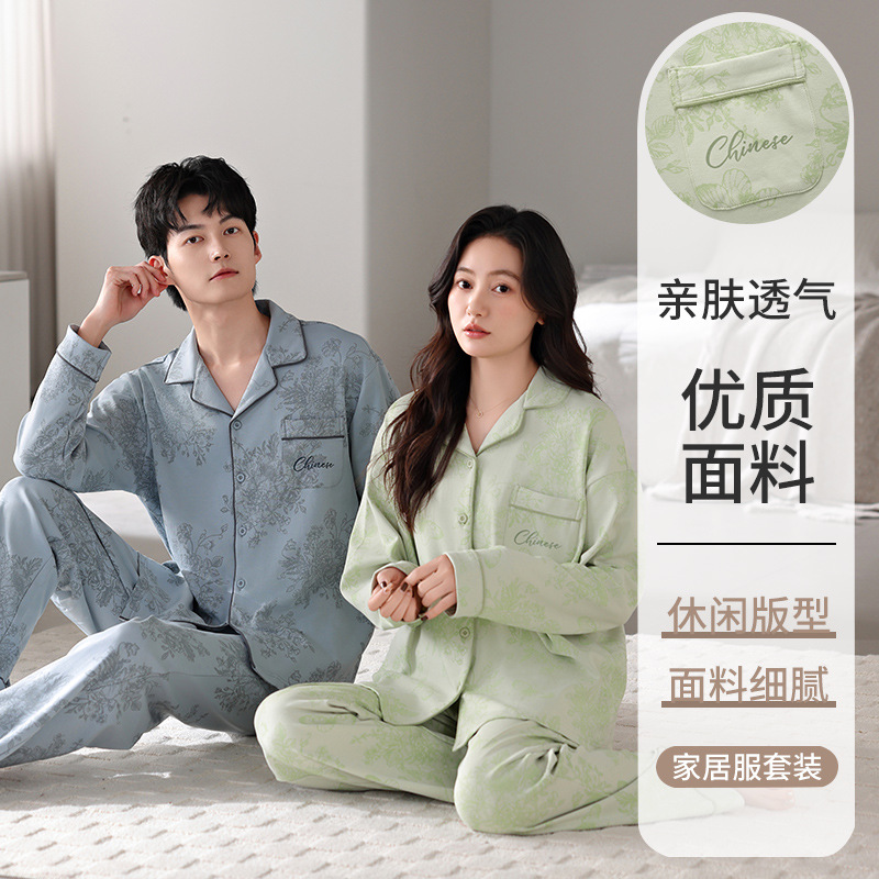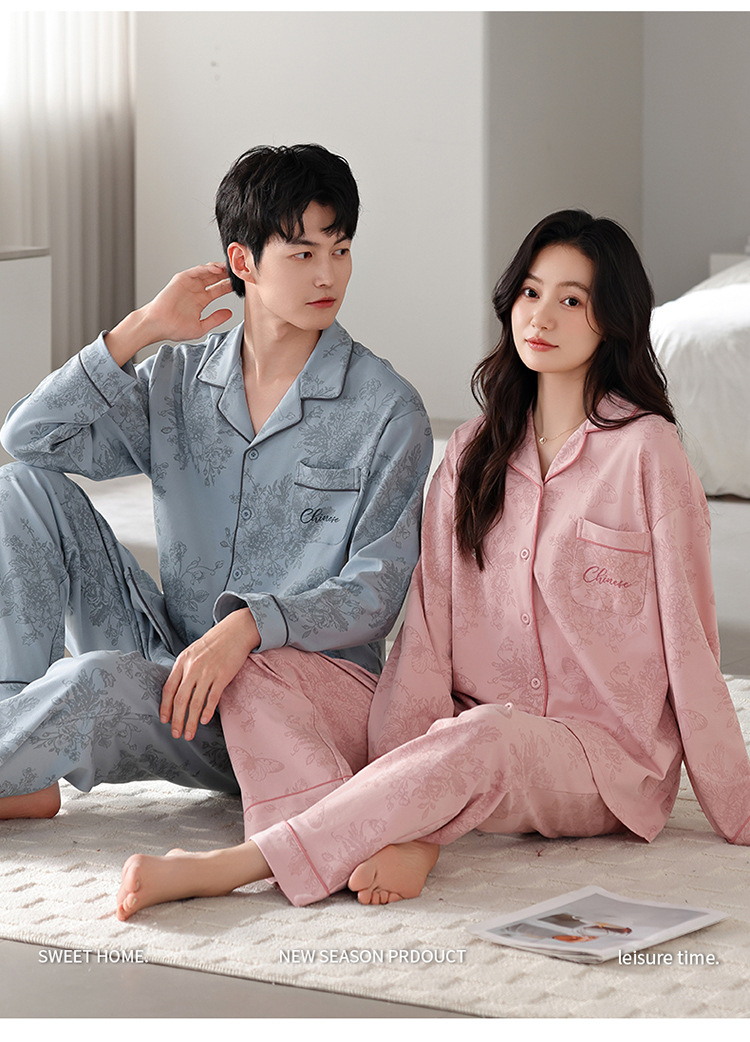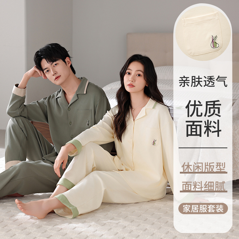커플 잠옷 봄가을용 순면 긴팔 2025년 신상 남녀 가디건 큰 사이즈 외출복으로도 착용 가능한 홈웨어 세트
