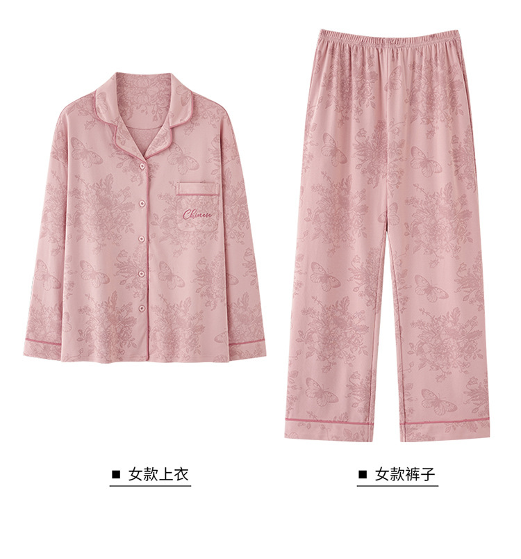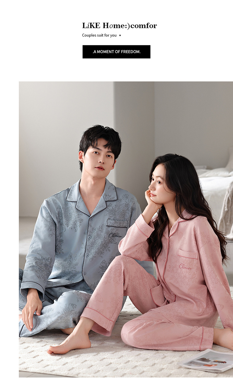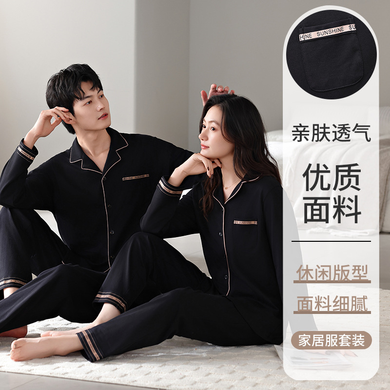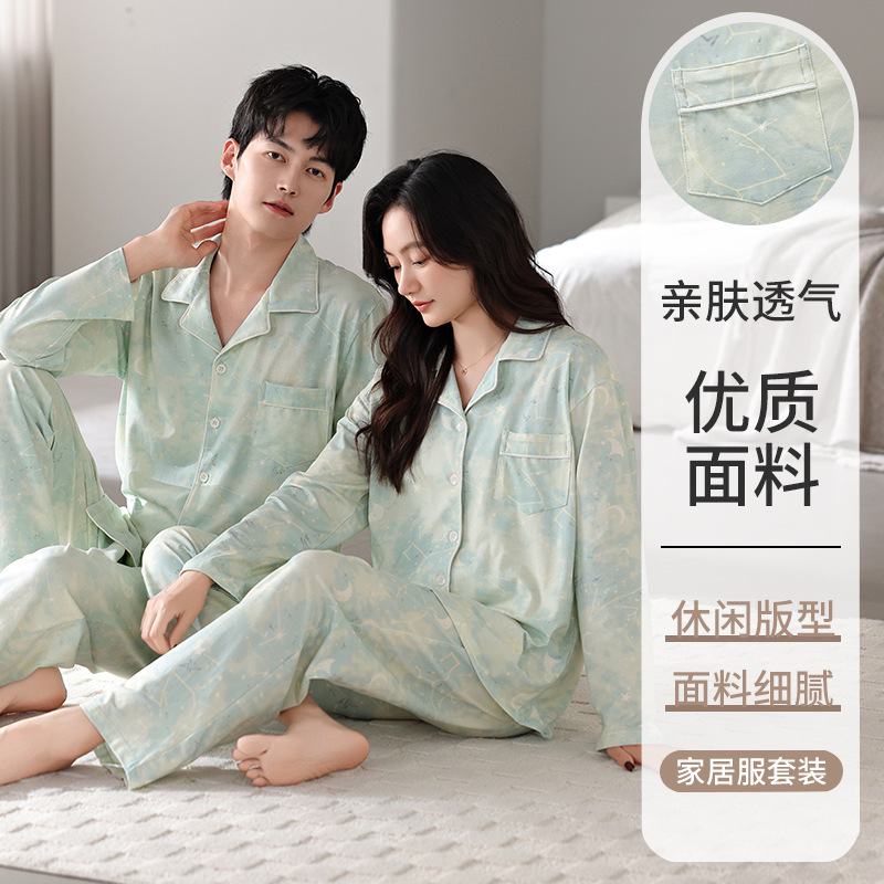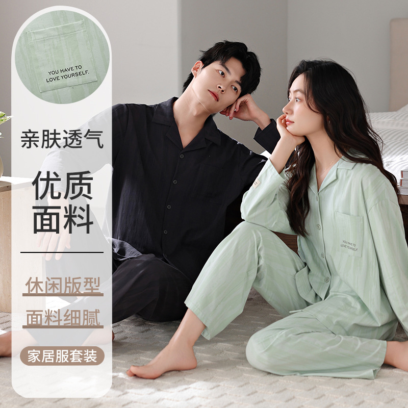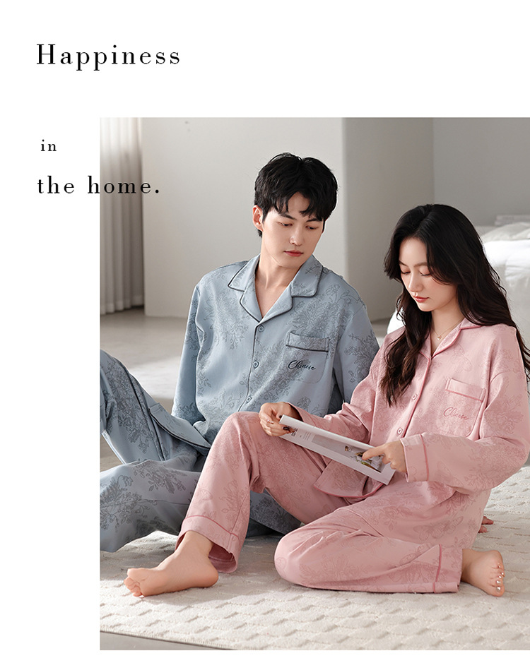 커플 잠옷 봄가을용 순면 긴팔 2025년 신상 남녀 가디건 큰 사이즈 외출복으로도 착용 가능한 홈웨어 세트