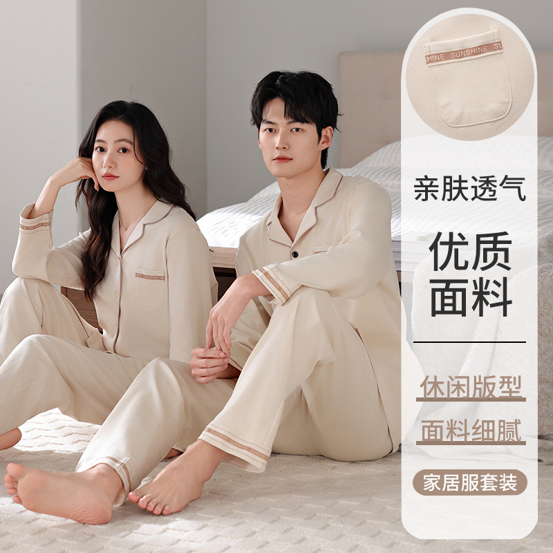 커플 잠옷 봄가을용 순면 긴팔 2025년 신상 남녀 가디건 큰 사이즈 외출복으로도 착용 가능한 홈웨어 세트스토어 가기