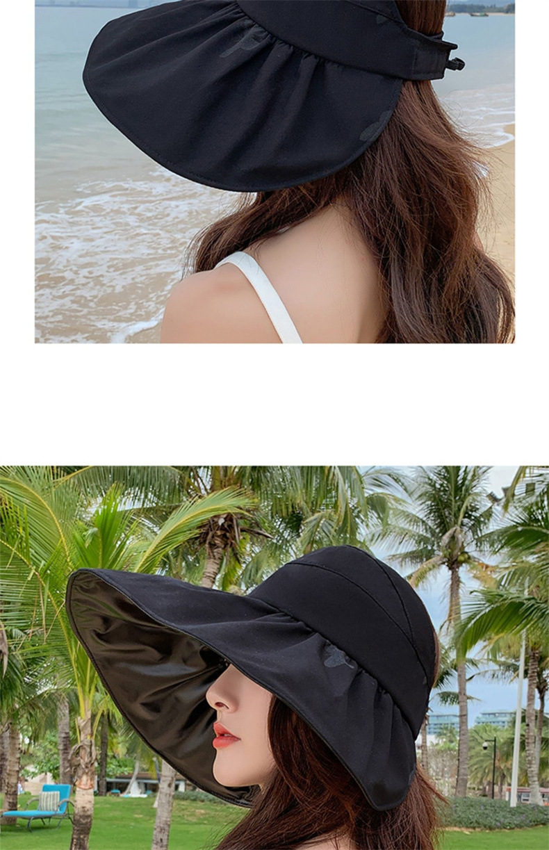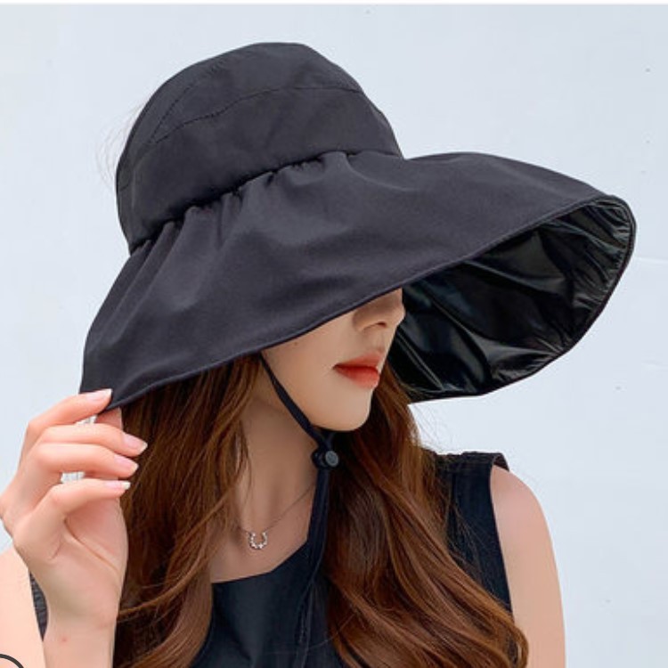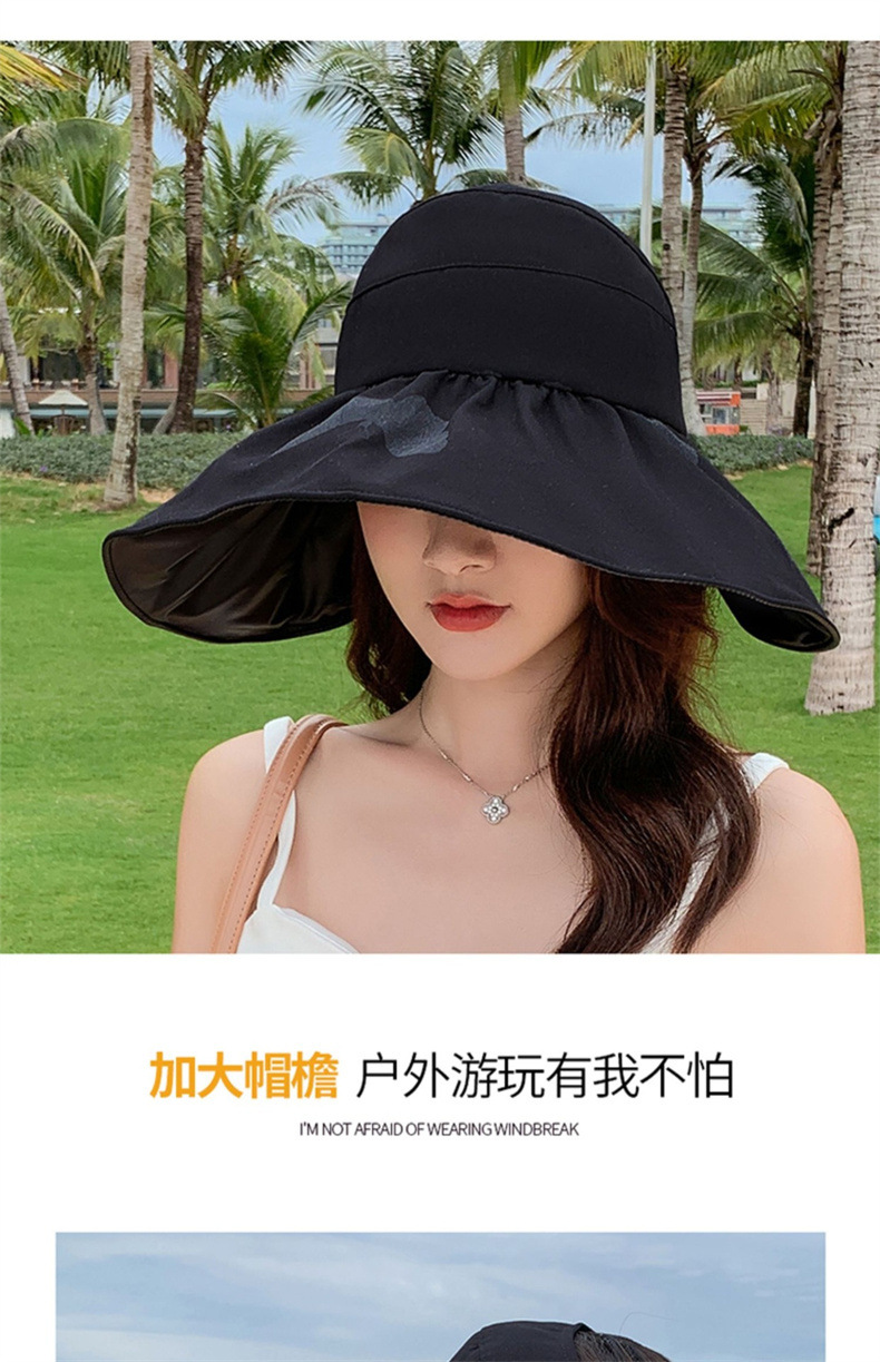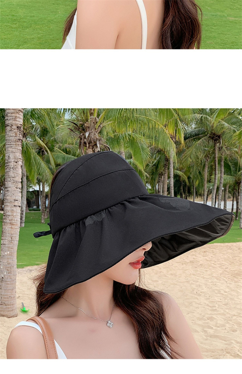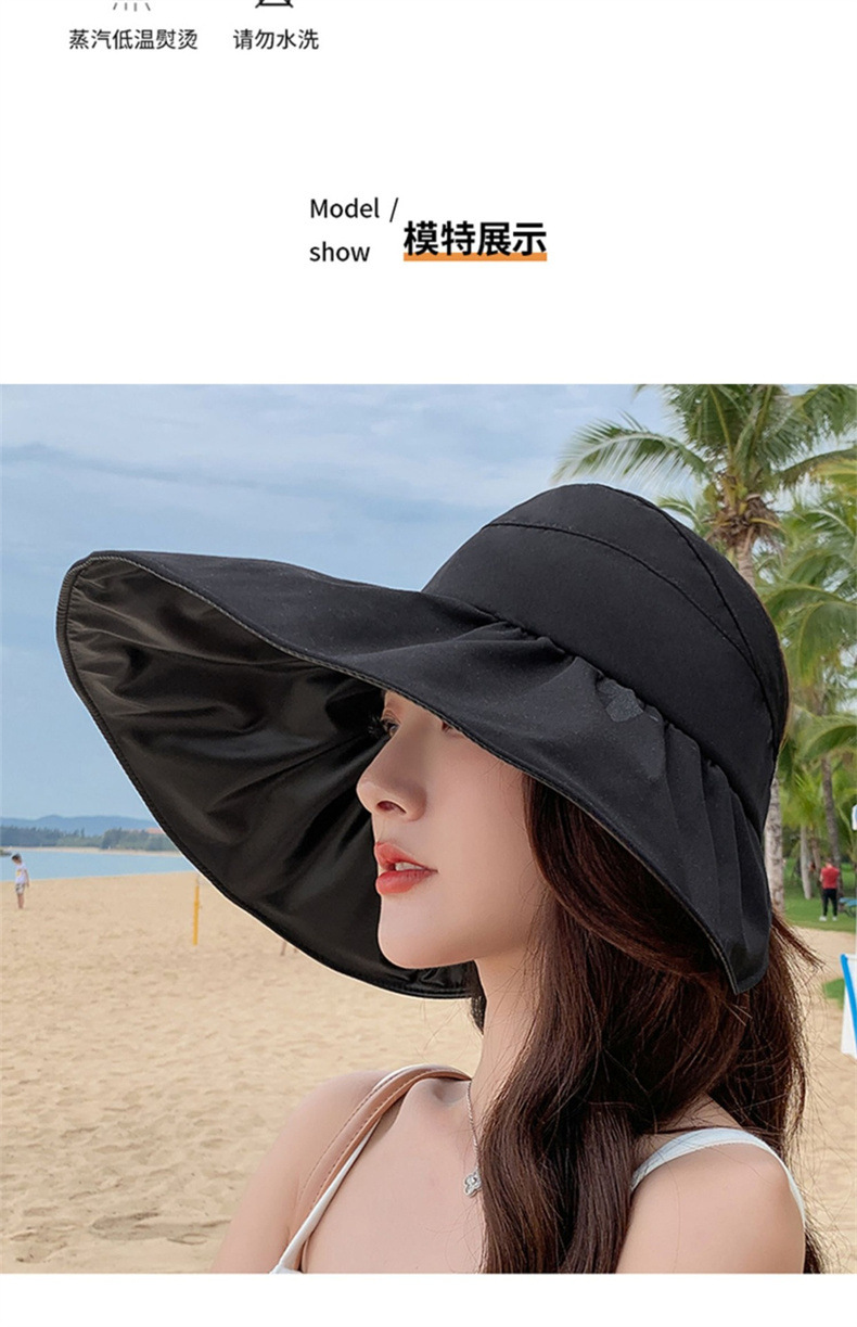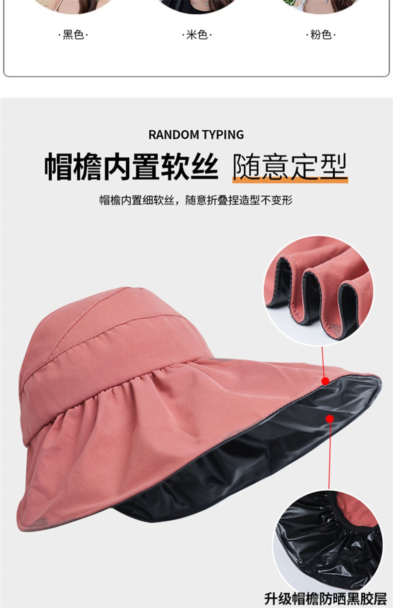 여름 새로운 검은 접착제 빈 모자 큰 테두리 UV 보호 태양 모자 통기성 휴대용 접이식 포니 테일스토어 가기