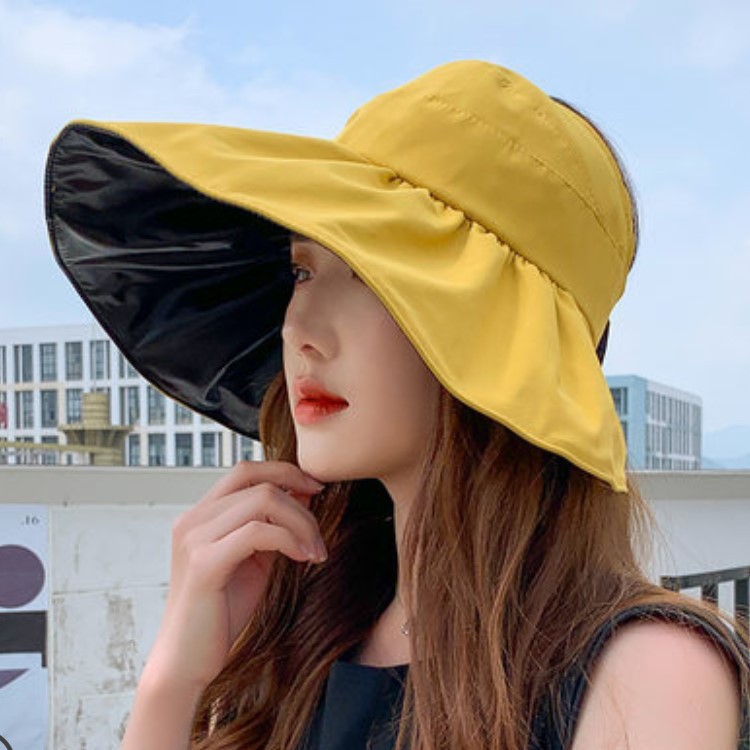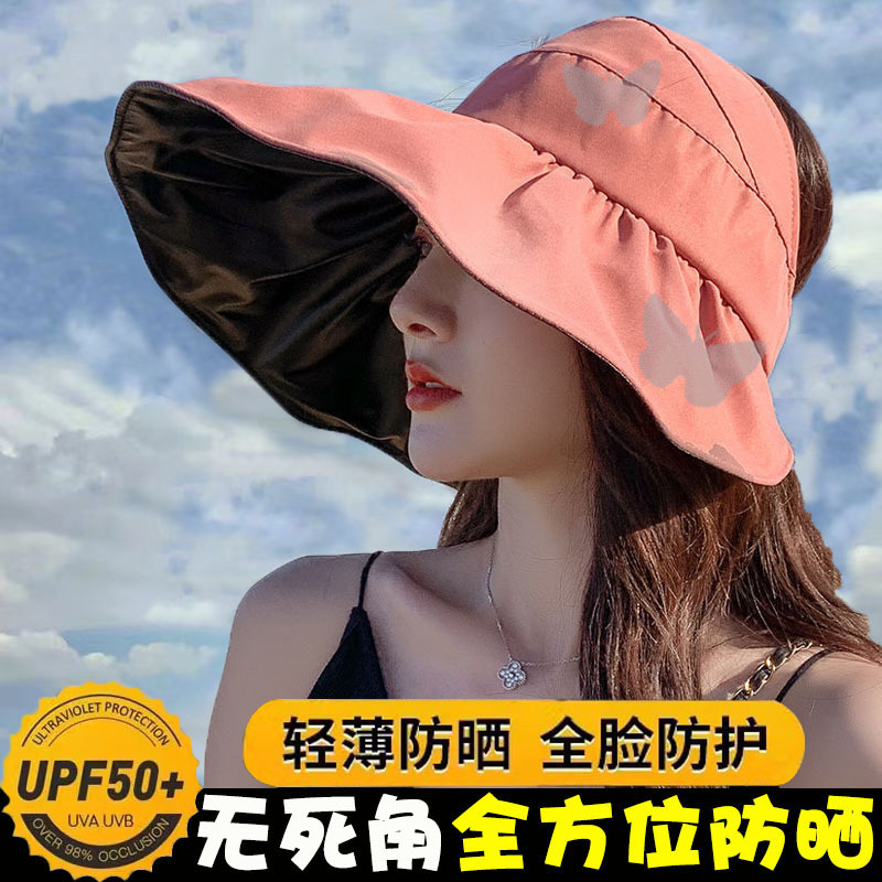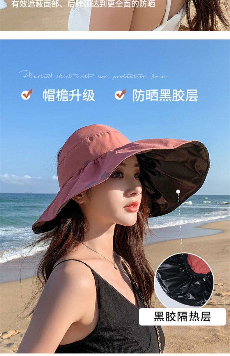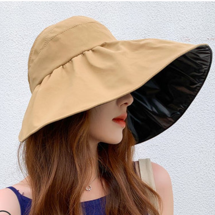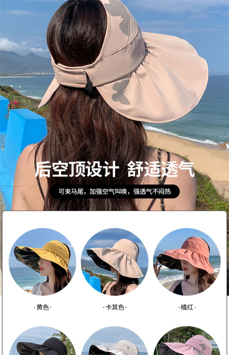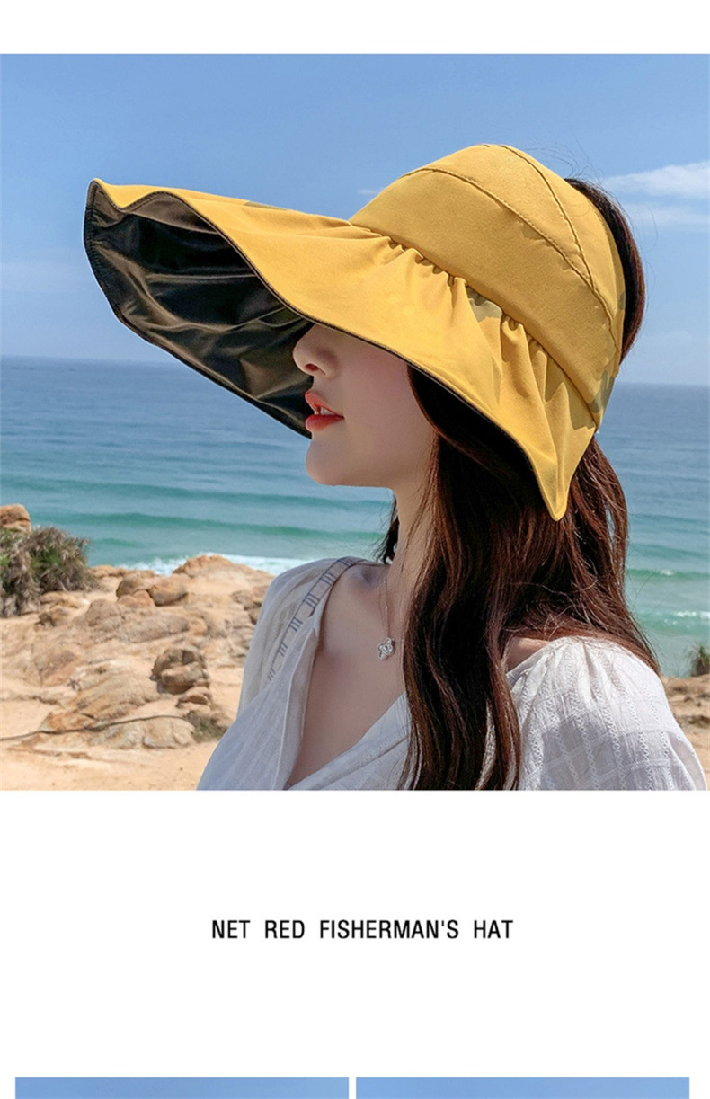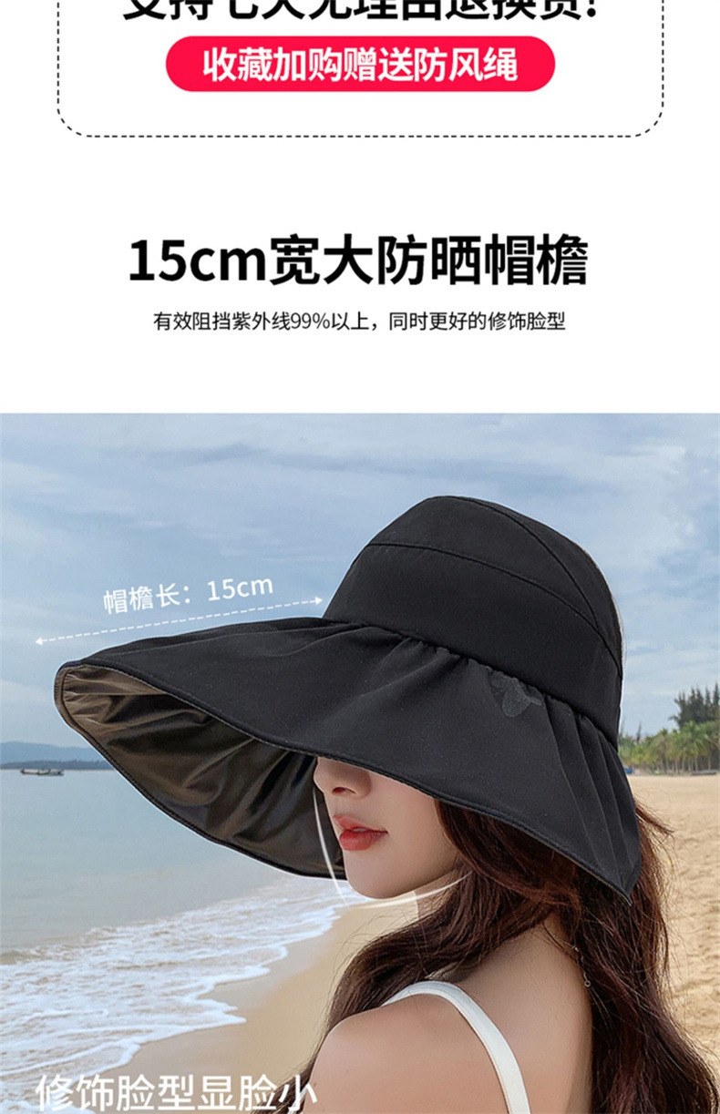 여름 새로운 검은 접착제 빈 모자 큰 테두리 UV 보호 태양 모자 통기성 휴대용 접이식 포니 테일스토어 가기