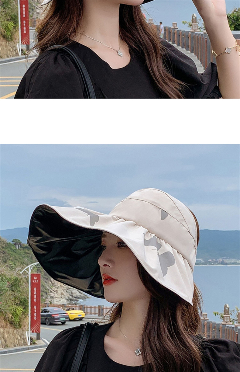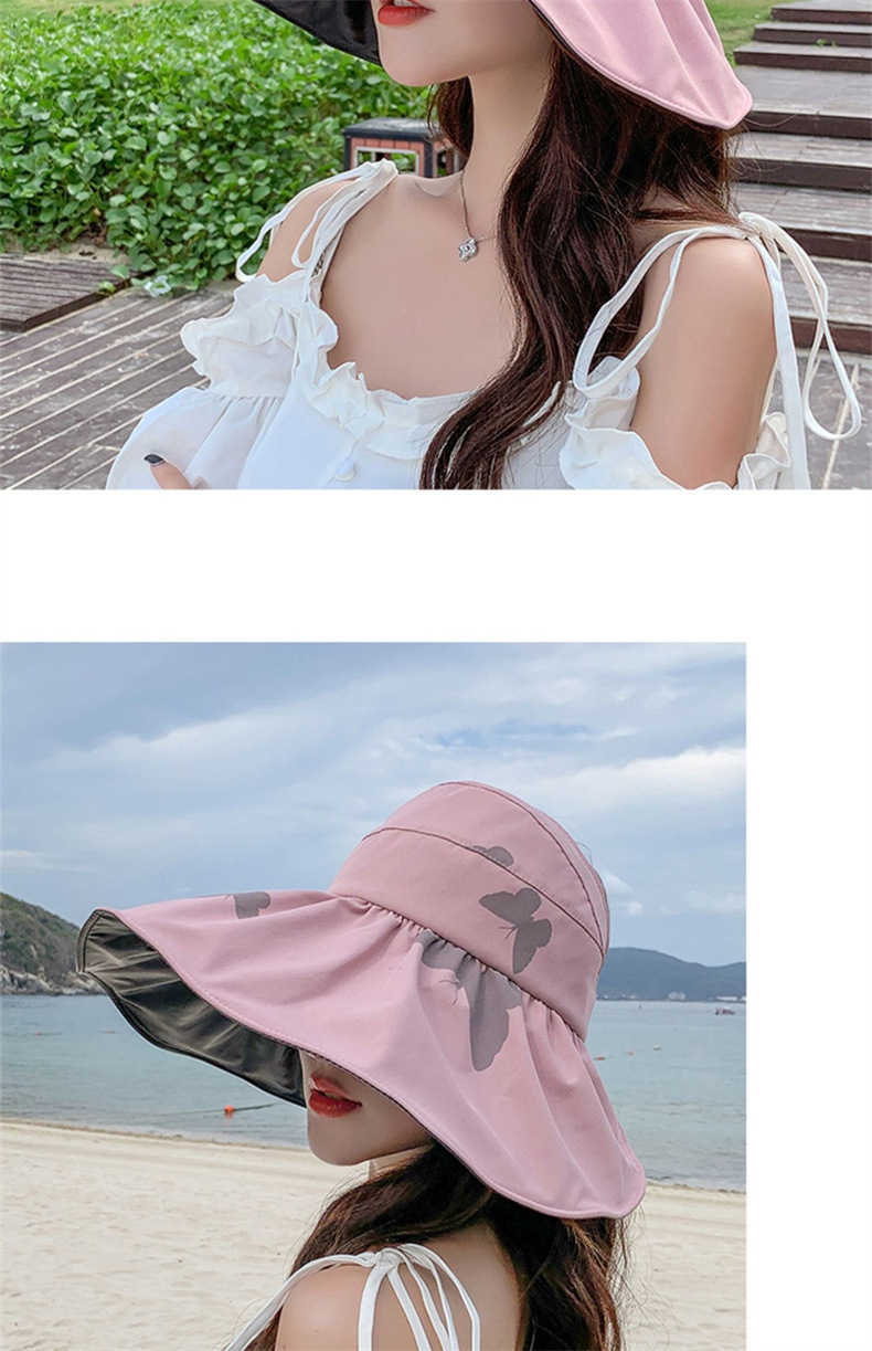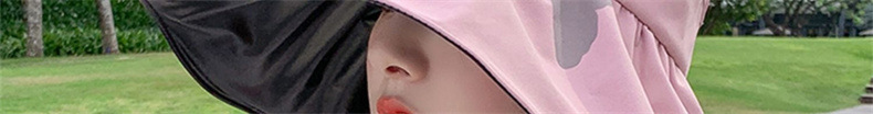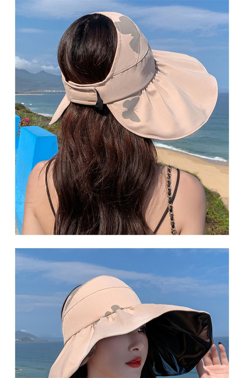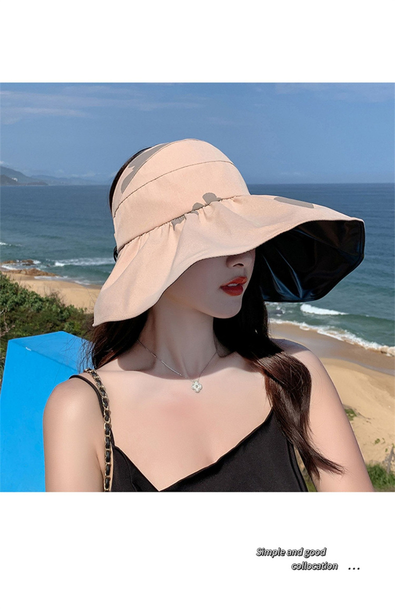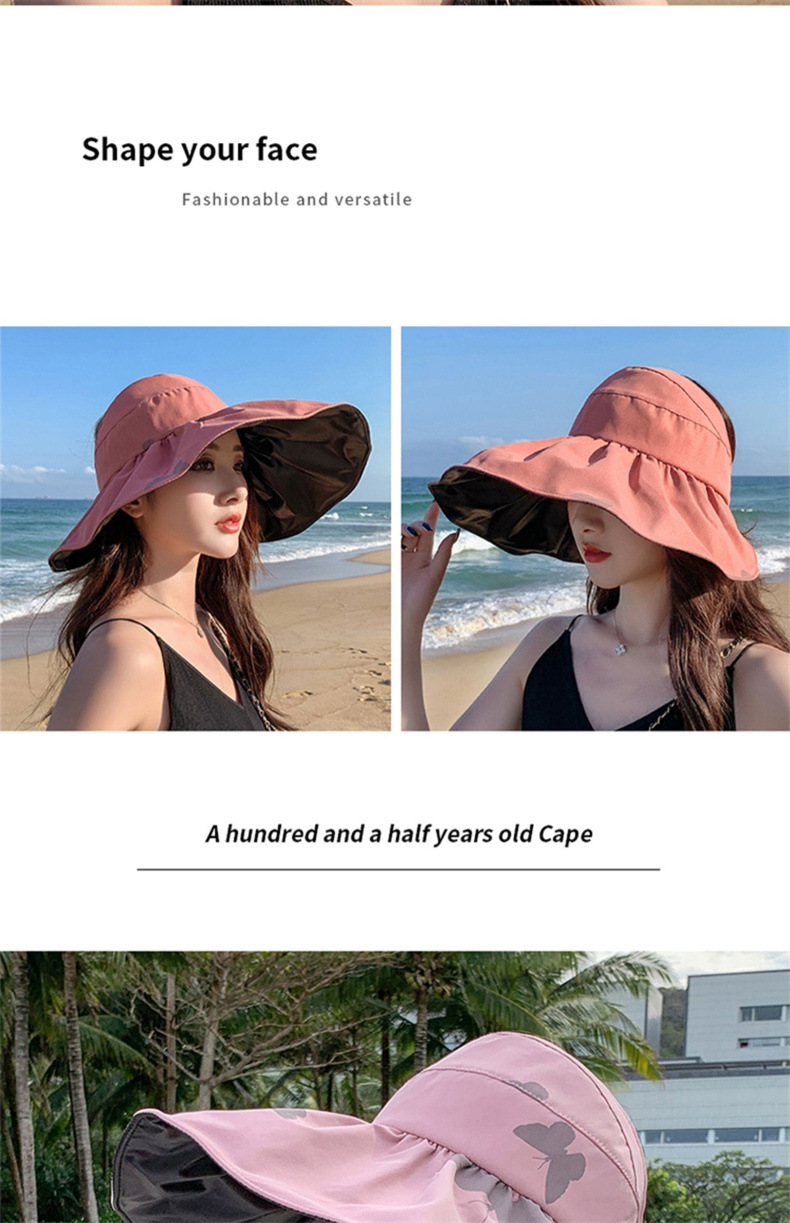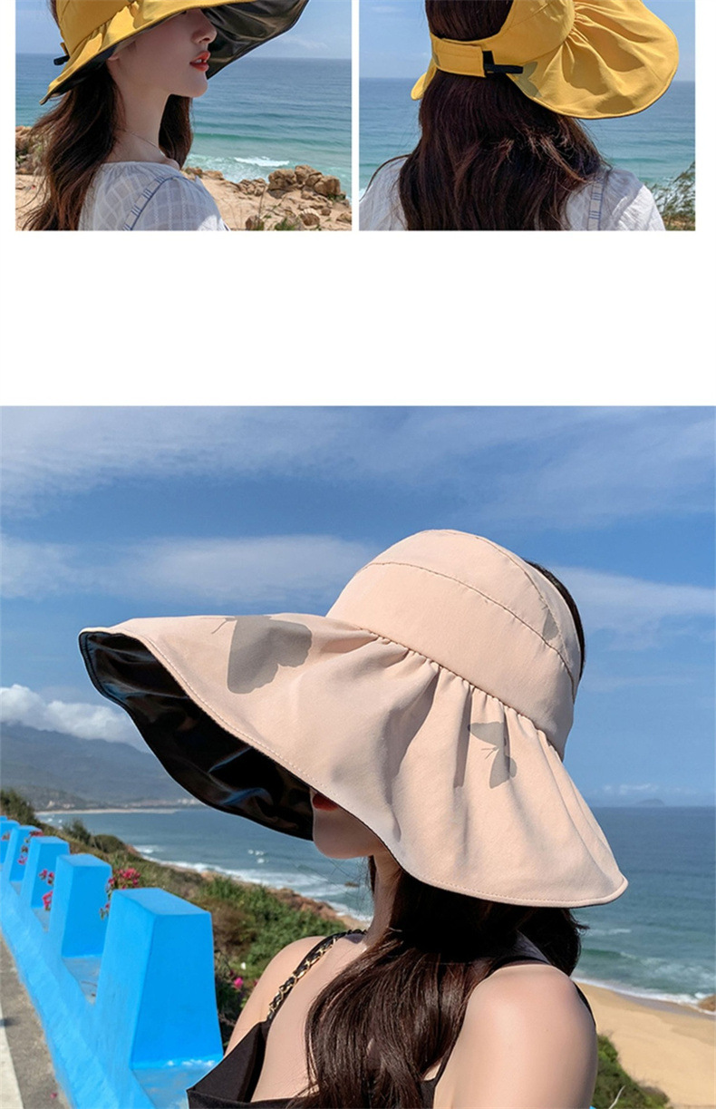 여름 새로운 검은 접착제 빈 모자 큰 테두리 UV 보호 태양 모자 통기성 휴대용 접이식 포니 테일스토어 가기