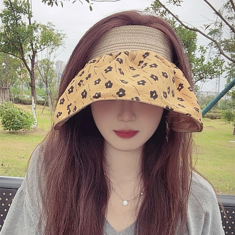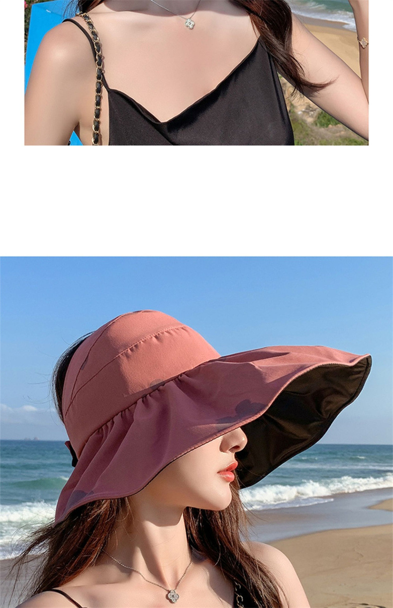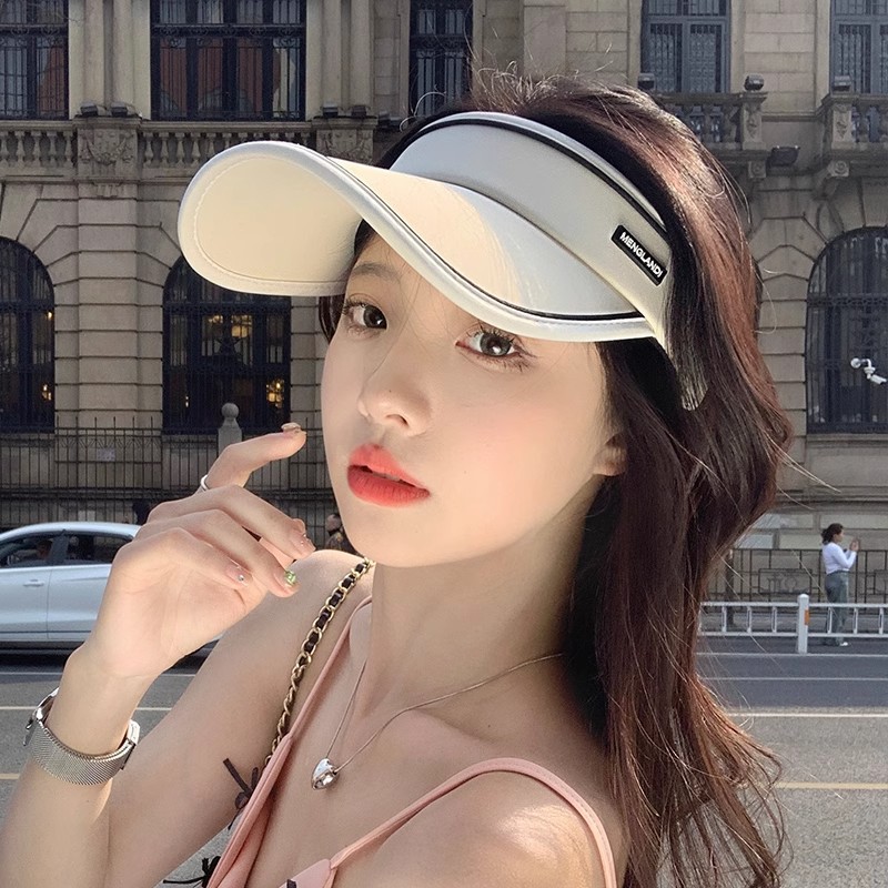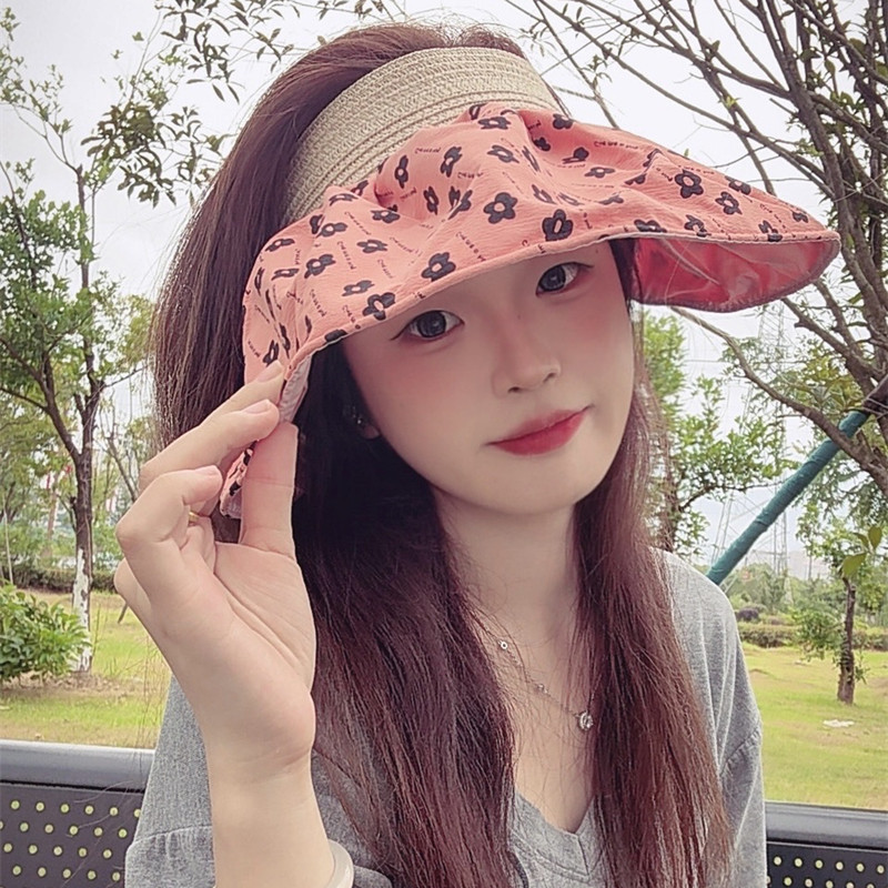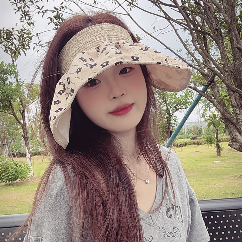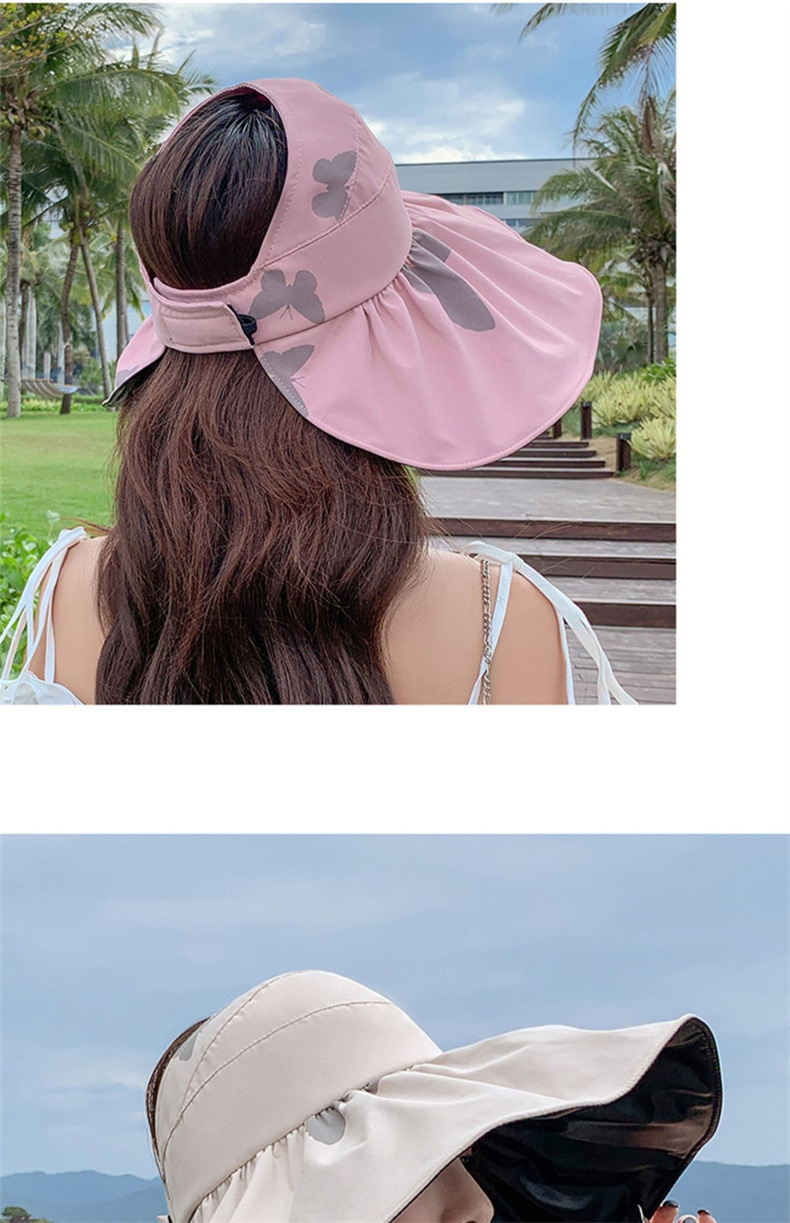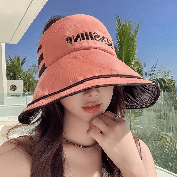 여름 새로운 검은 접착제 빈 모자 큰 테두리 UV 보호 태양 모자 통기성 휴대용 접이식 포니 테일스토어 가기