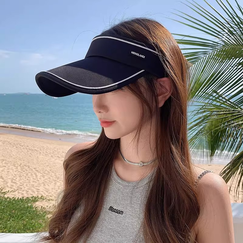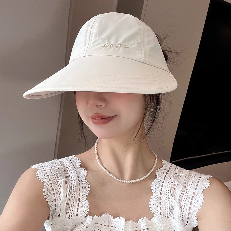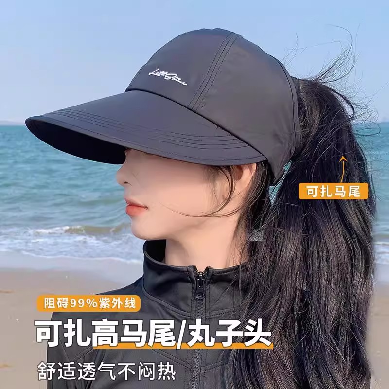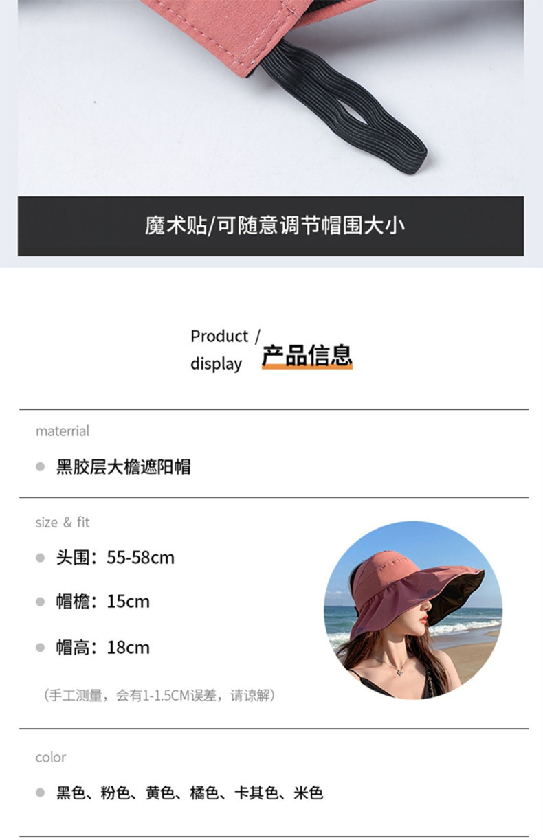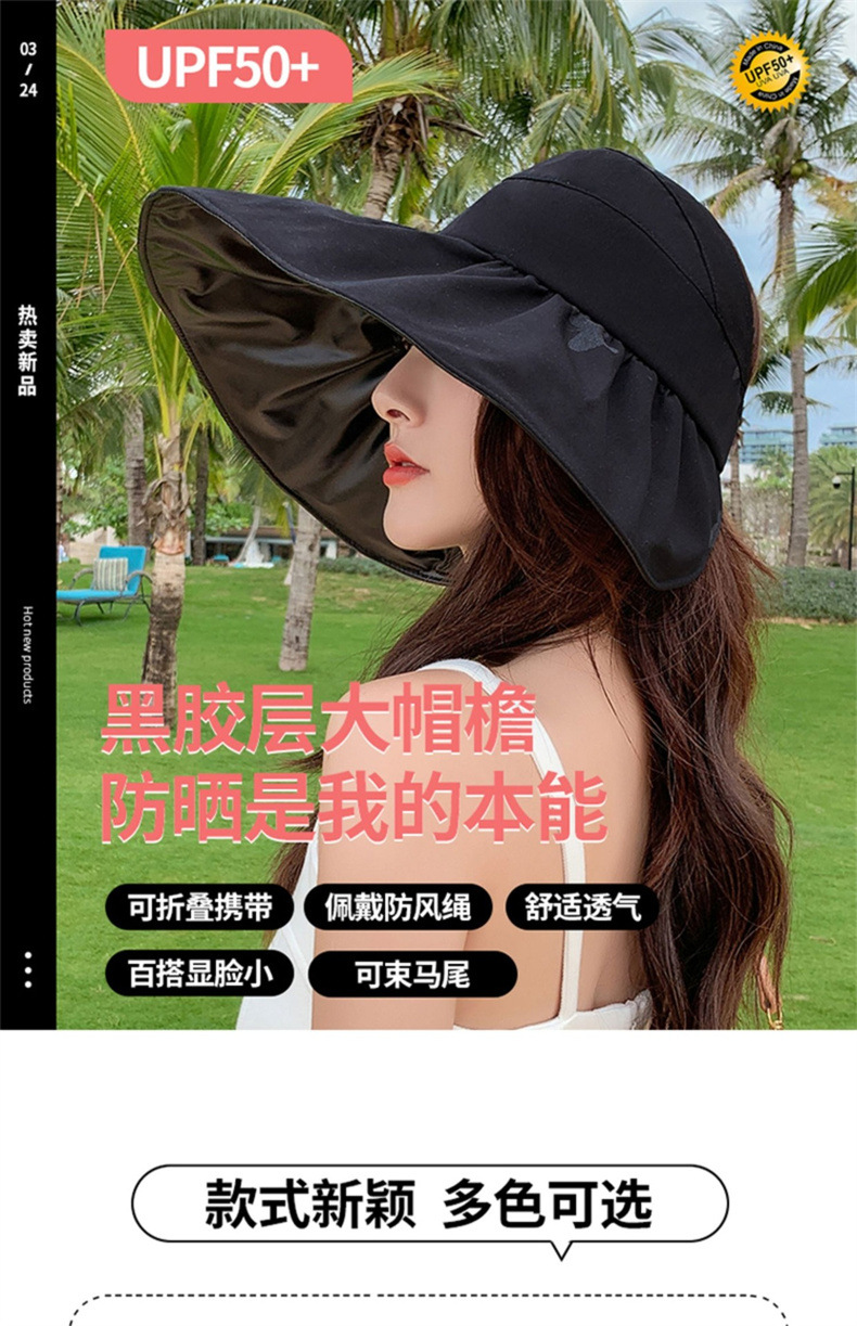 여름 새로운 검은 접착제 빈 모자 큰 테두리 UV 보호 태양 모자 통기성 휴대용 접이식 포니 테일