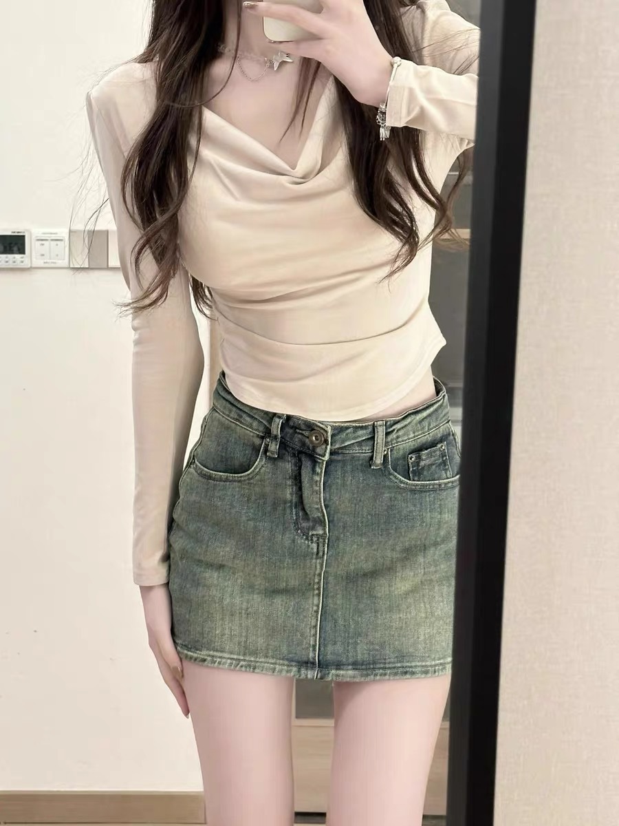 2023 새 여자 칼집 데님 스커트 여름 인기 올 매치 스커트 하이 웨이스트 A 라인 스커트 어린이스토어 가기