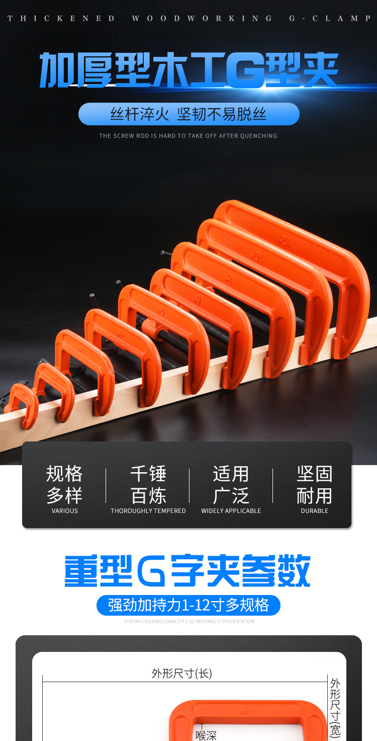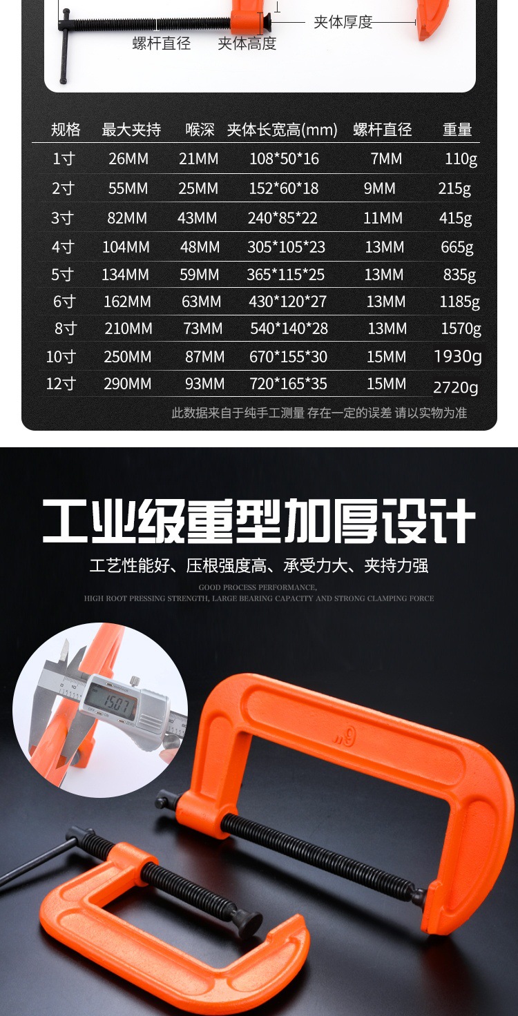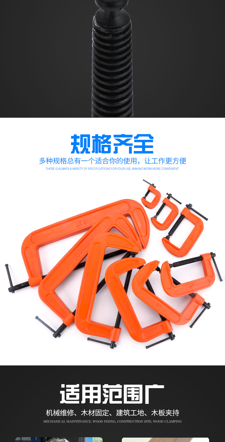 목공 클램프 G자형 클램프 두꺼운 C자형 클램프 중형 목공 고정 클램프 G자형 클램프 주철스토어 가기