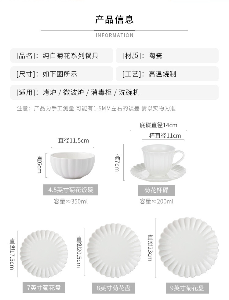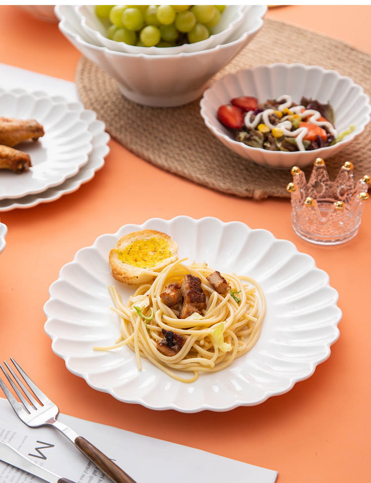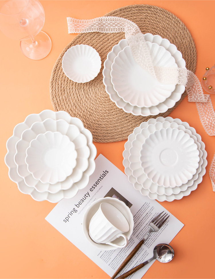 세라믹 국화 접시 순수한 흰색 레이스 접시 접시 크리 에이 티브 서양 음식 접시 파스타 접시 홈 스낵 접시 과일 샐러드 그릇