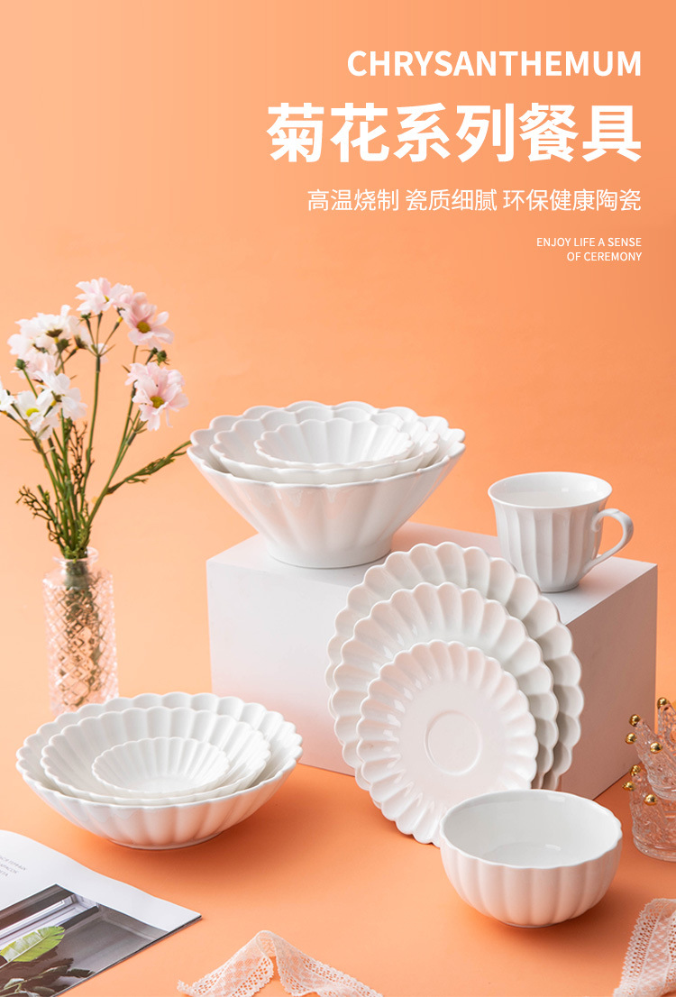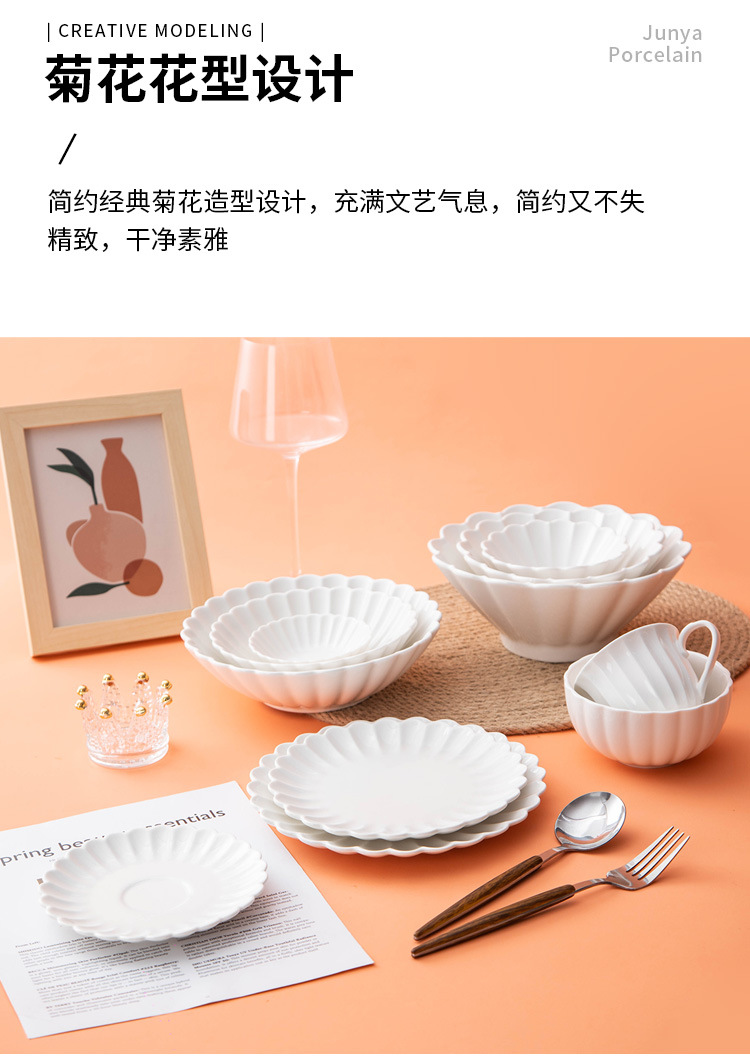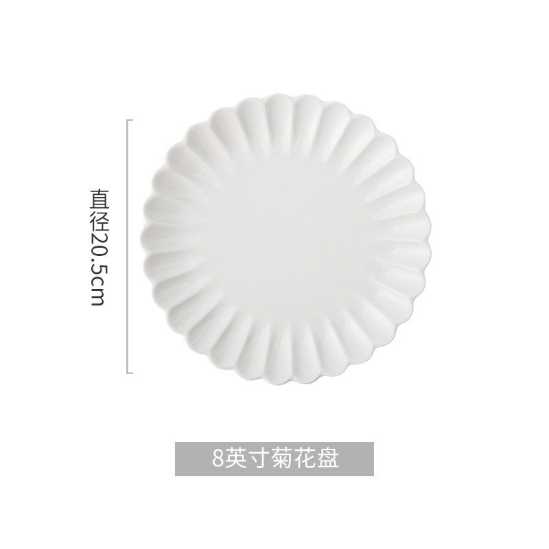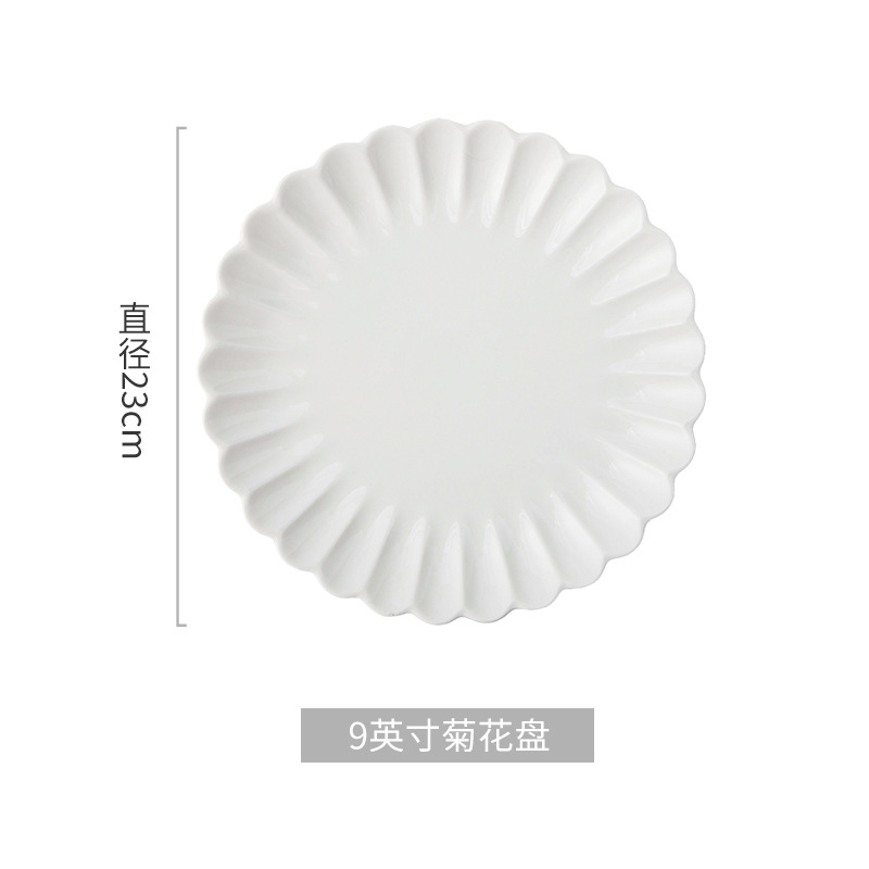 세라믹 국화 접시 순수한 흰색 레이스 접시 접시 크리 에이 티브 서양 음식 접시 파스타 접시 홈 스낵 접시 과일 샐러드 그릇스토어 가기