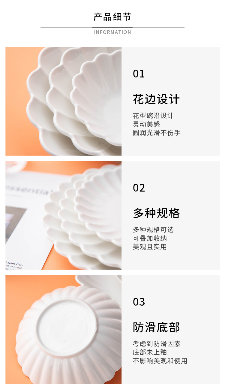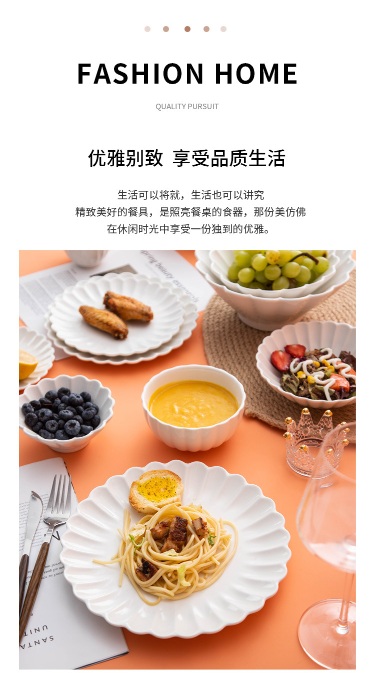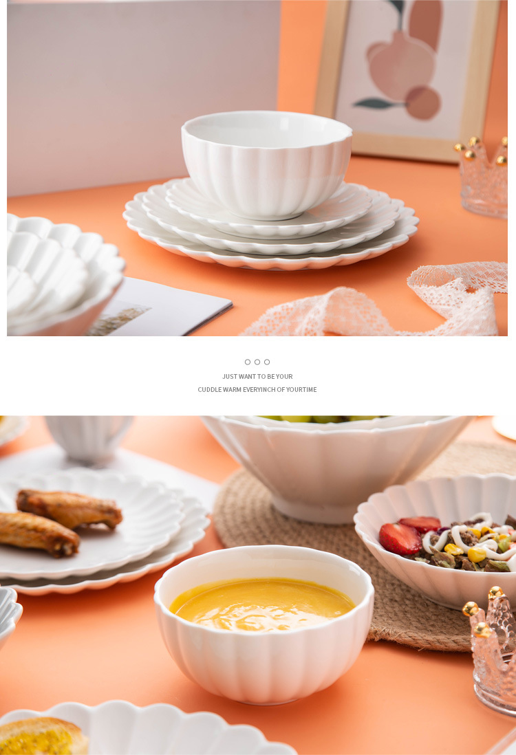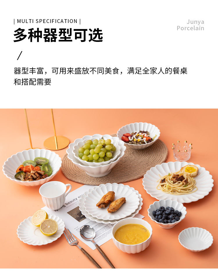 세라믹 국화 접시 순수한 흰색 레이스 접시 접시 크리 에이 티브 서양 음식 접시 파스타 접시 홈 스낵 접시 과일 샐러드 그릇스토어 가기
