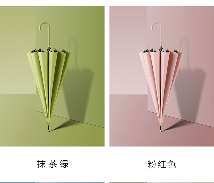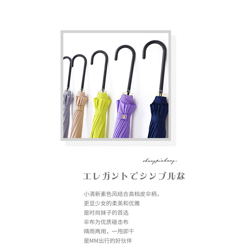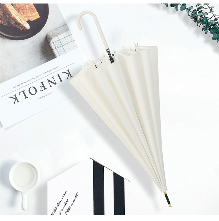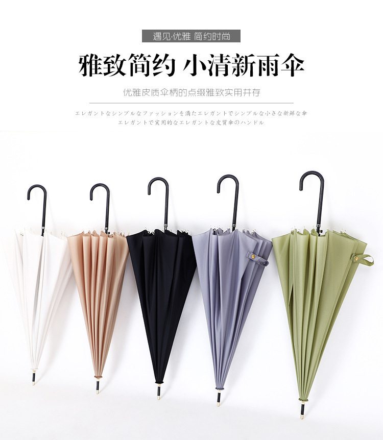 스팟 곡선 후크 우산, 작은 신선한 여성용 16본 직선 솔리드 컬러 비닐 광고 우산, 비가 오나 눈이 오나 드롭 배송