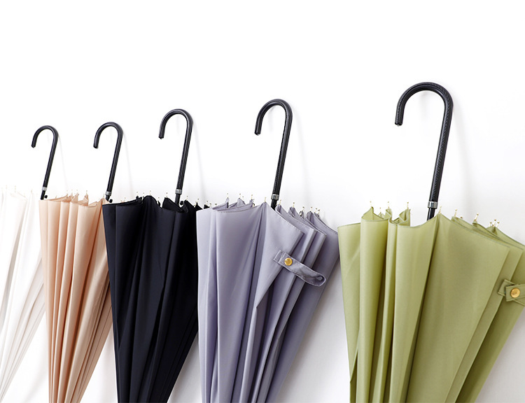 스팟 곡선 후크 우산, 작은 신선한 여성용 16본 직선 솔리드 컬러 비닐 광고 우산, 비가 오나 눈이 오나 드롭 배송스토어 가기