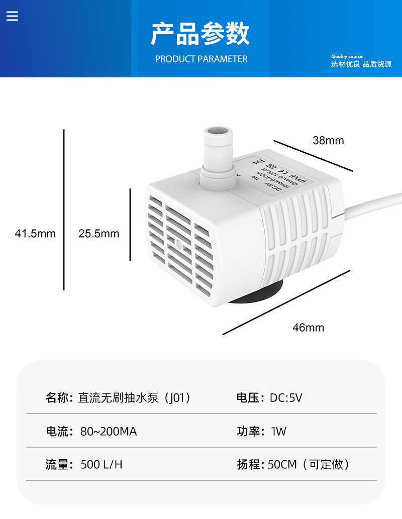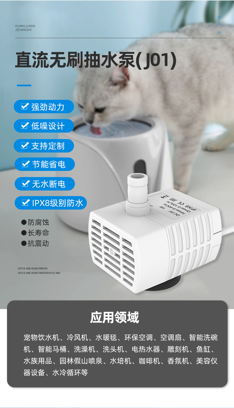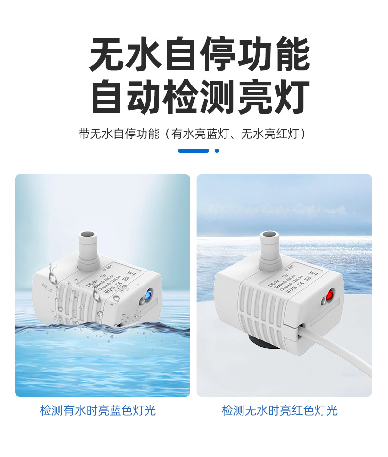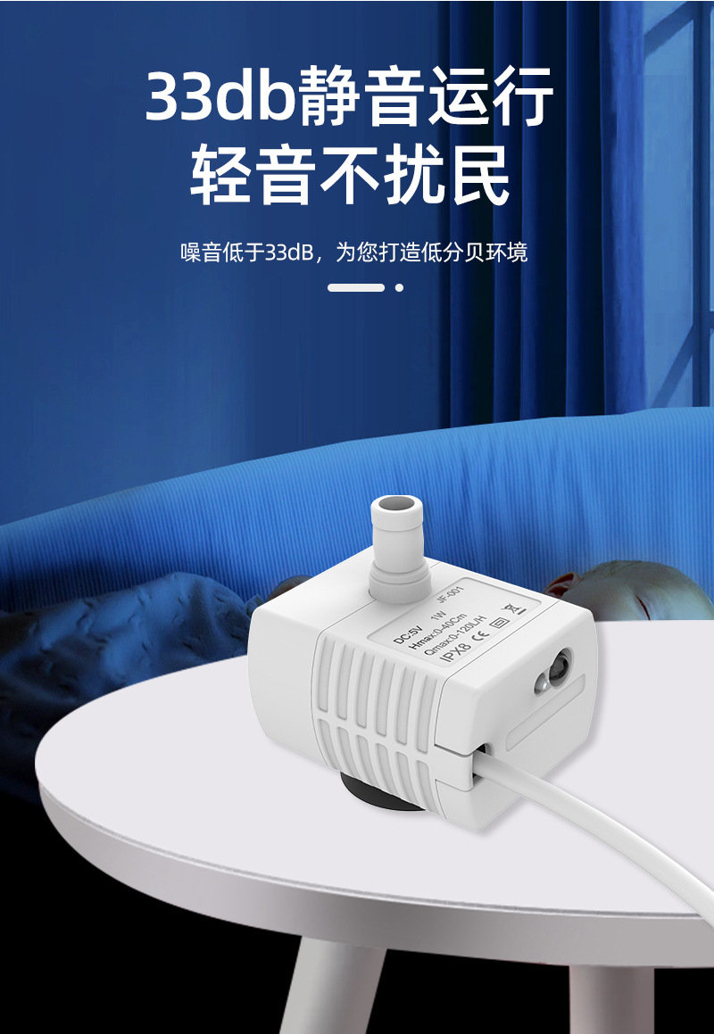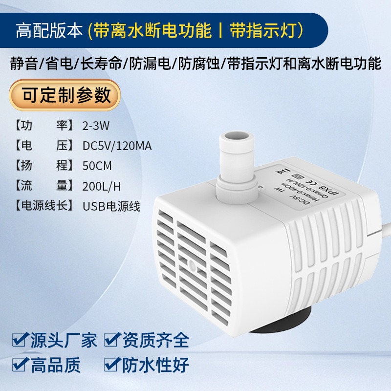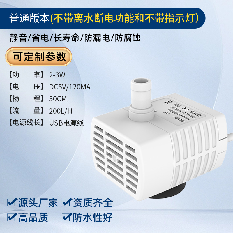 DC 브러시리스 워터 펌프 USB 워터 펌프 지능형 애완 동물 워터 디스펜서 수경 암석 어항 조용한 작은 잠수정 펌프