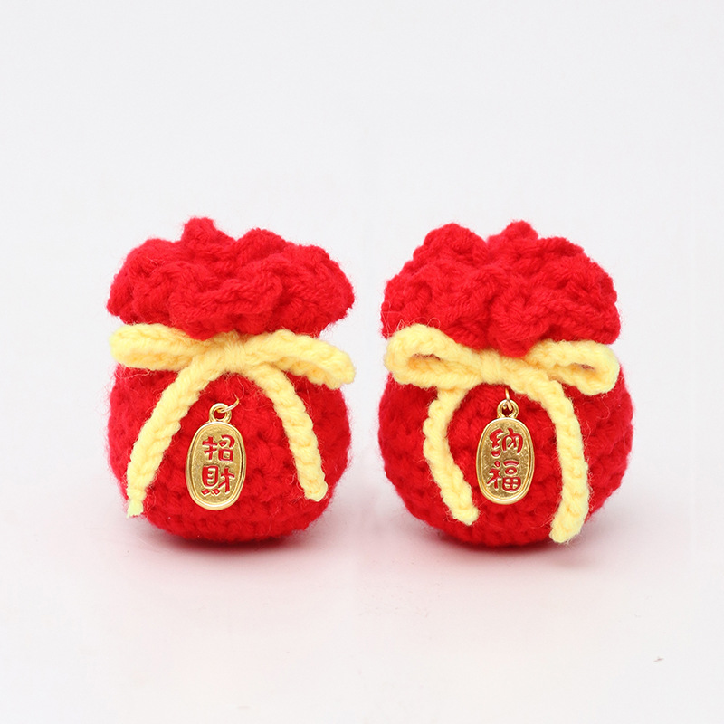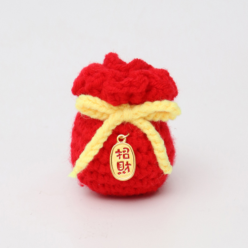 완성 된 손으로 뜨개질을 한 새해 행운의 가방 펜던트 양모 새 새해 행운의 열쇠 고리 장식품