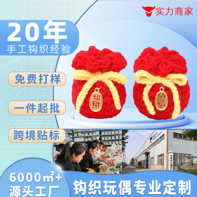 완성 된 손으로 뜨개질을 한 새해 행운의 가방 펜던트 양모 새 새해 행운의 열쇠 고리 장식품스토어 가기
