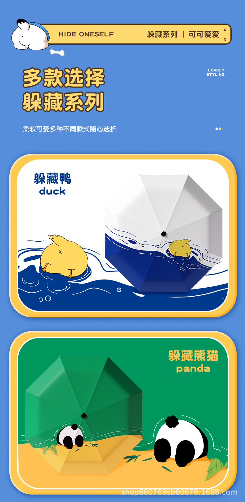 새로운 창조적 인 숨기기 팬더 우산 소녀 만화 인쇄 양산 우산 선 스크린 UV 보호 자동 접는 우산