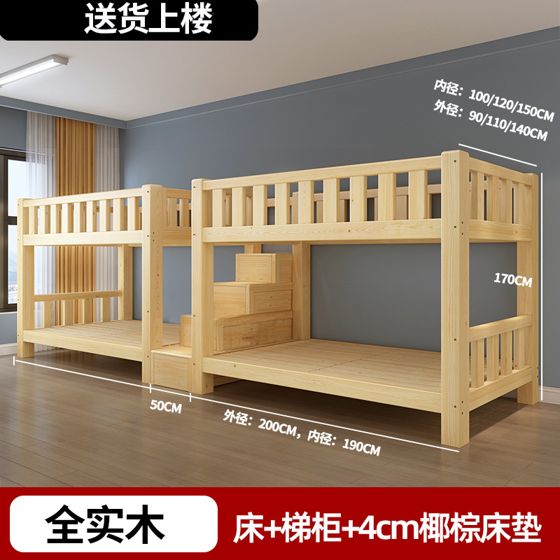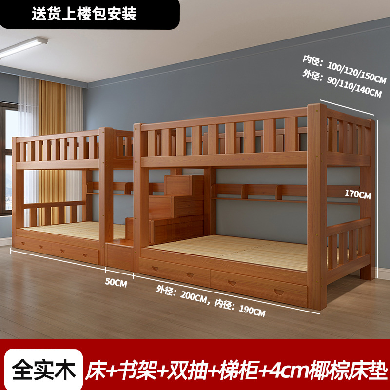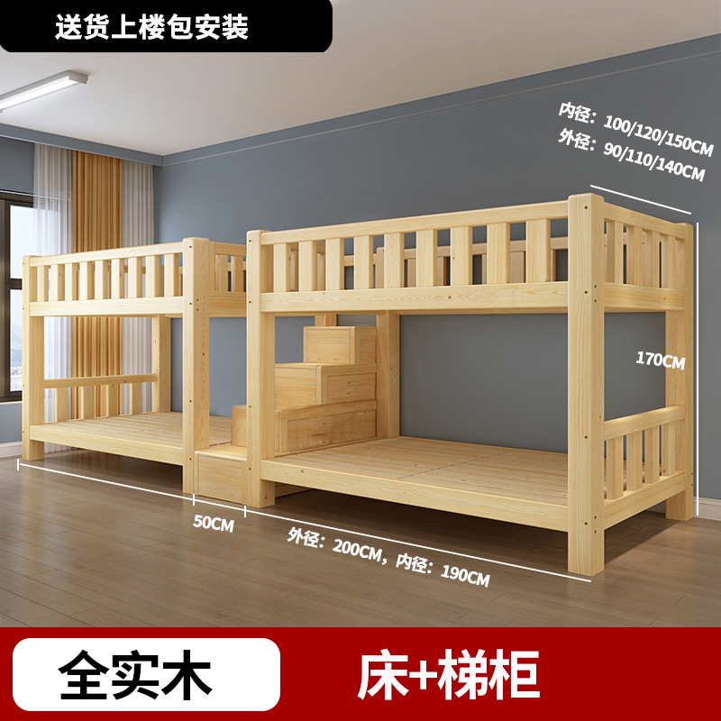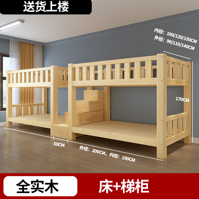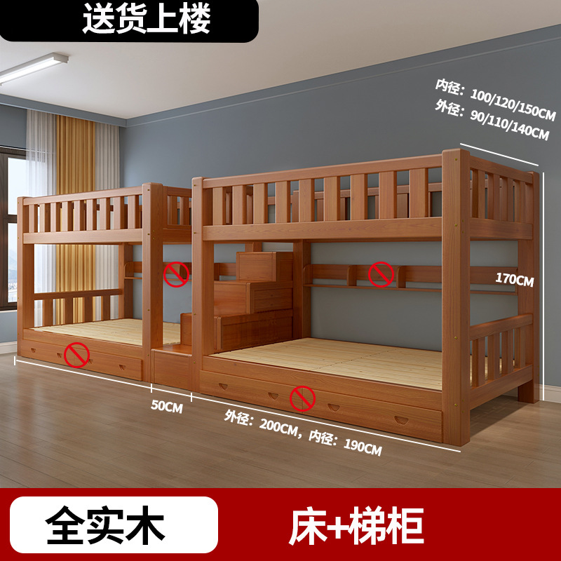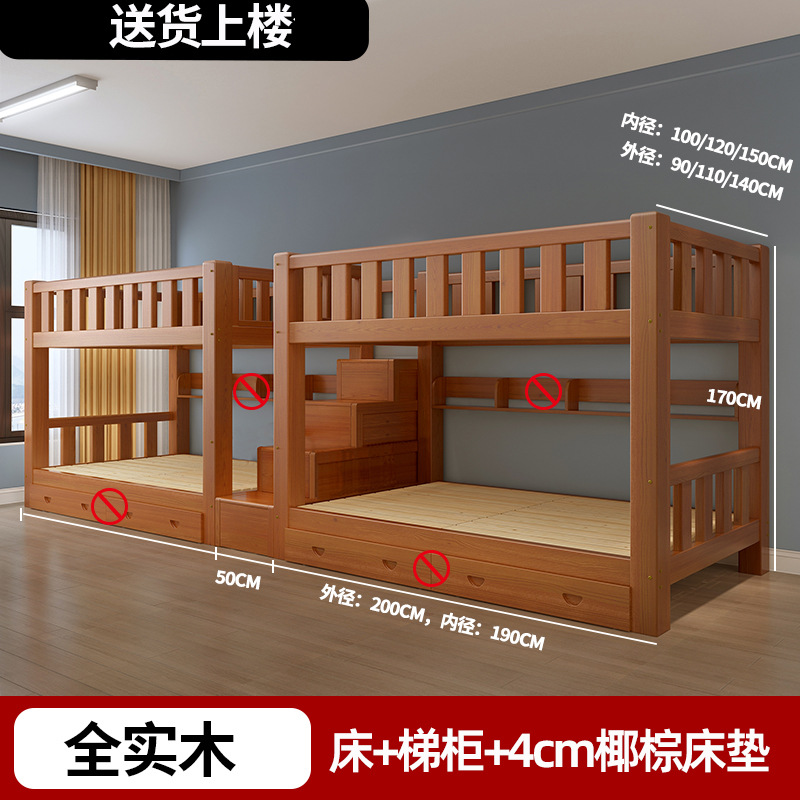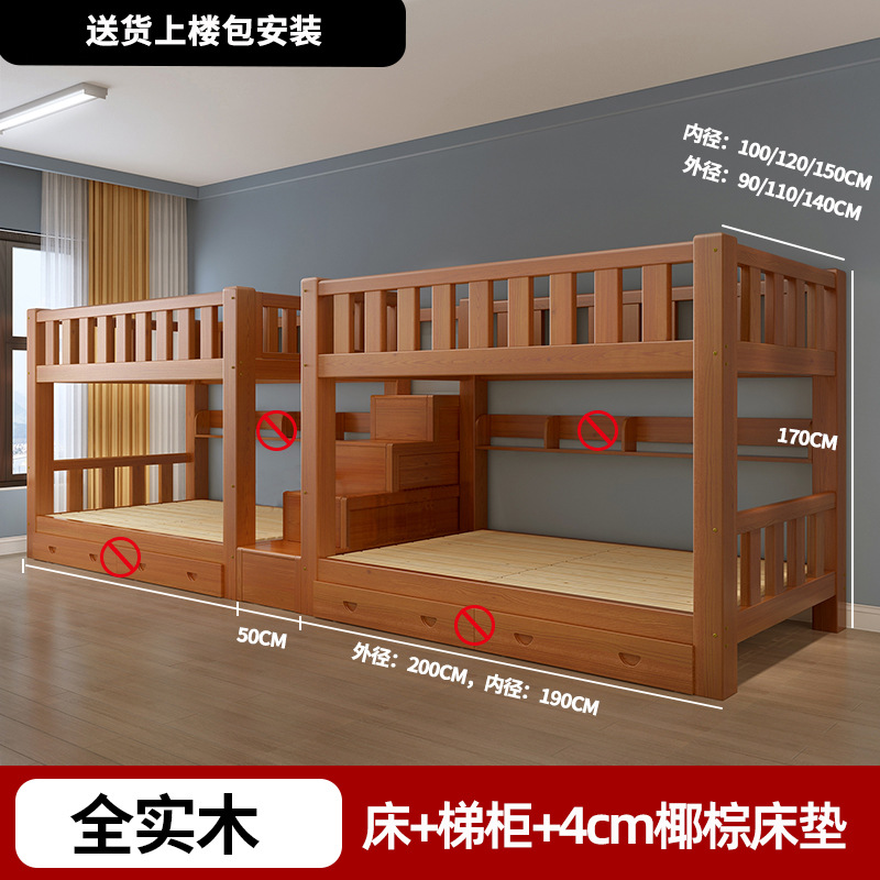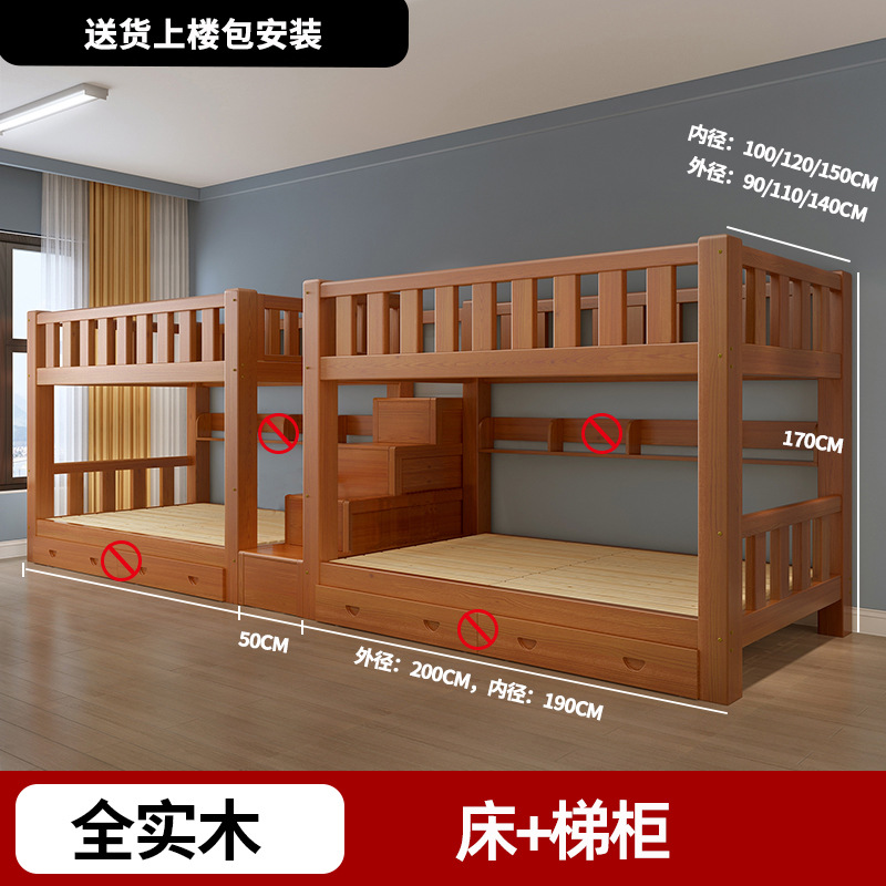 단단한 나무 높고 낮은 침대 기숙사 조합 이층 침대 경제적 인 2 층 침대 작은 아파트 이층 침대 성인 상부 및 하부 이층 침대스토어 가기