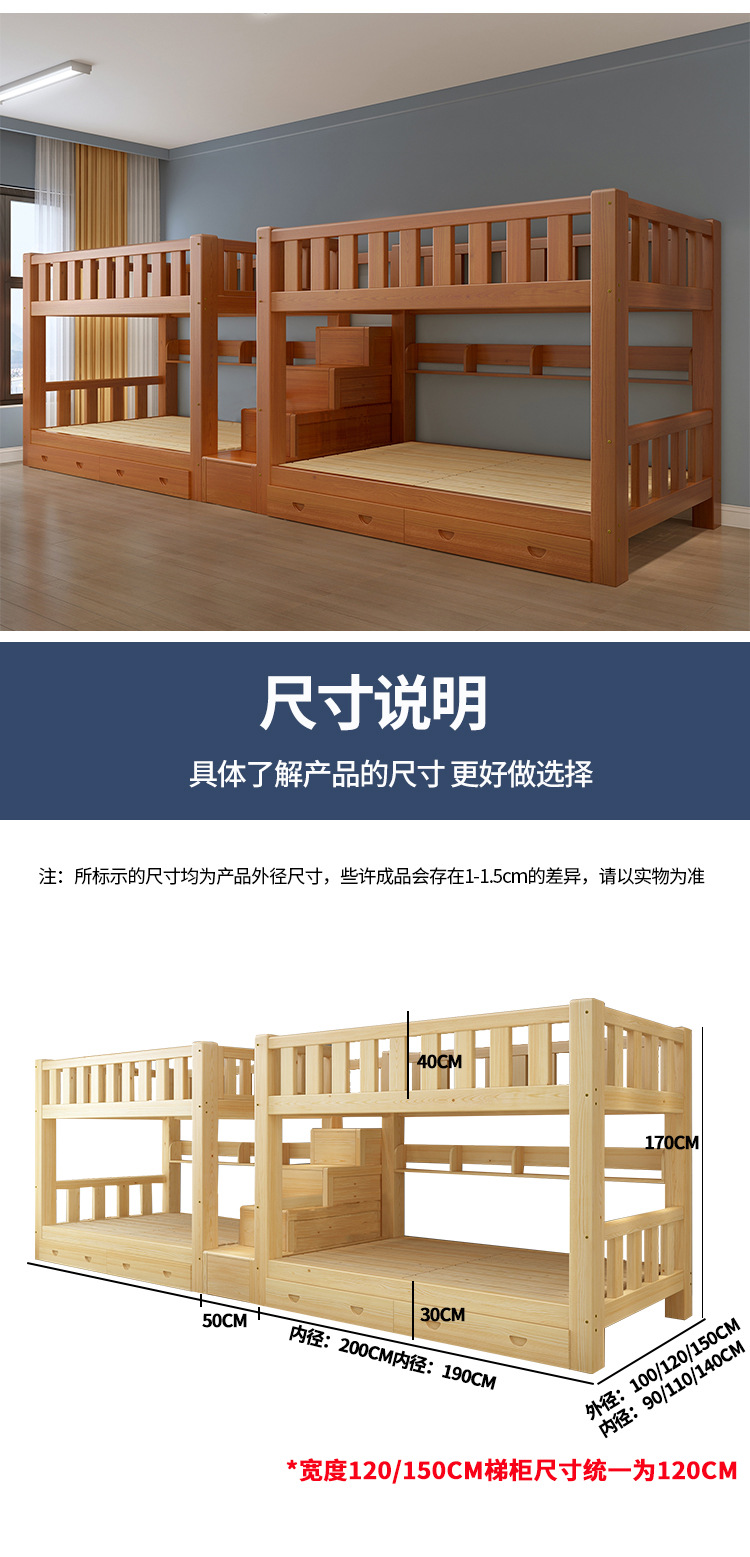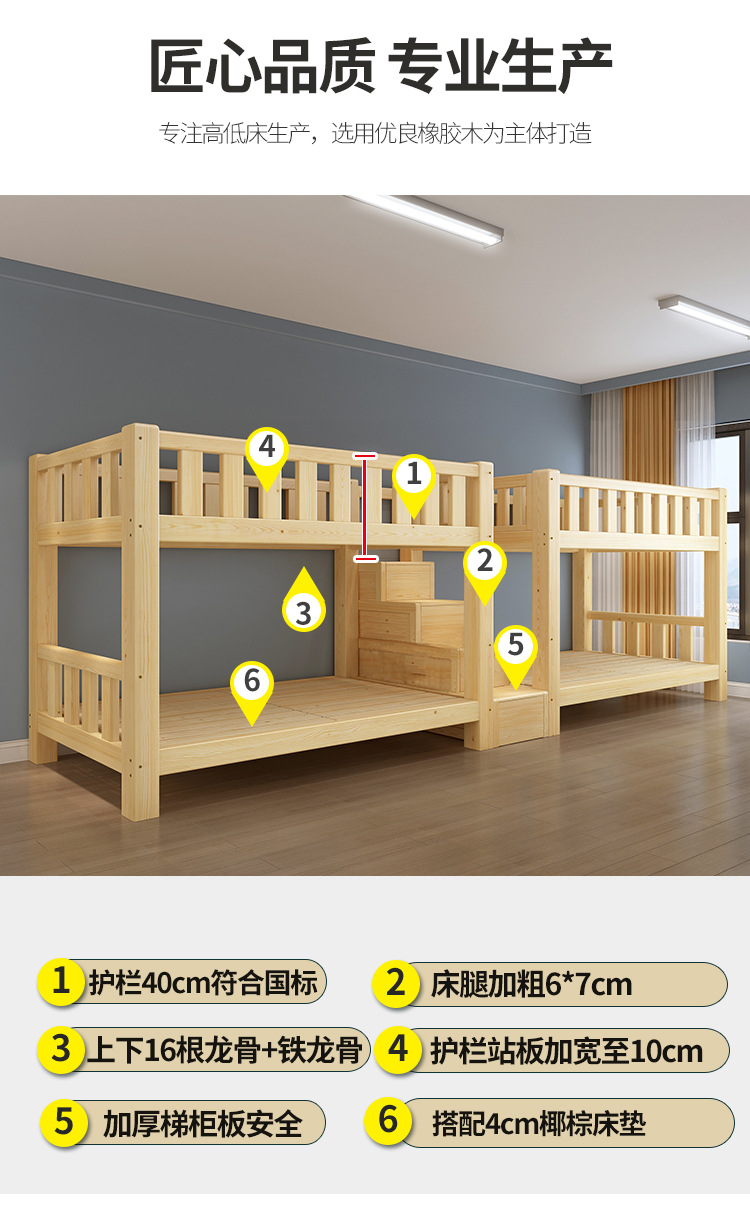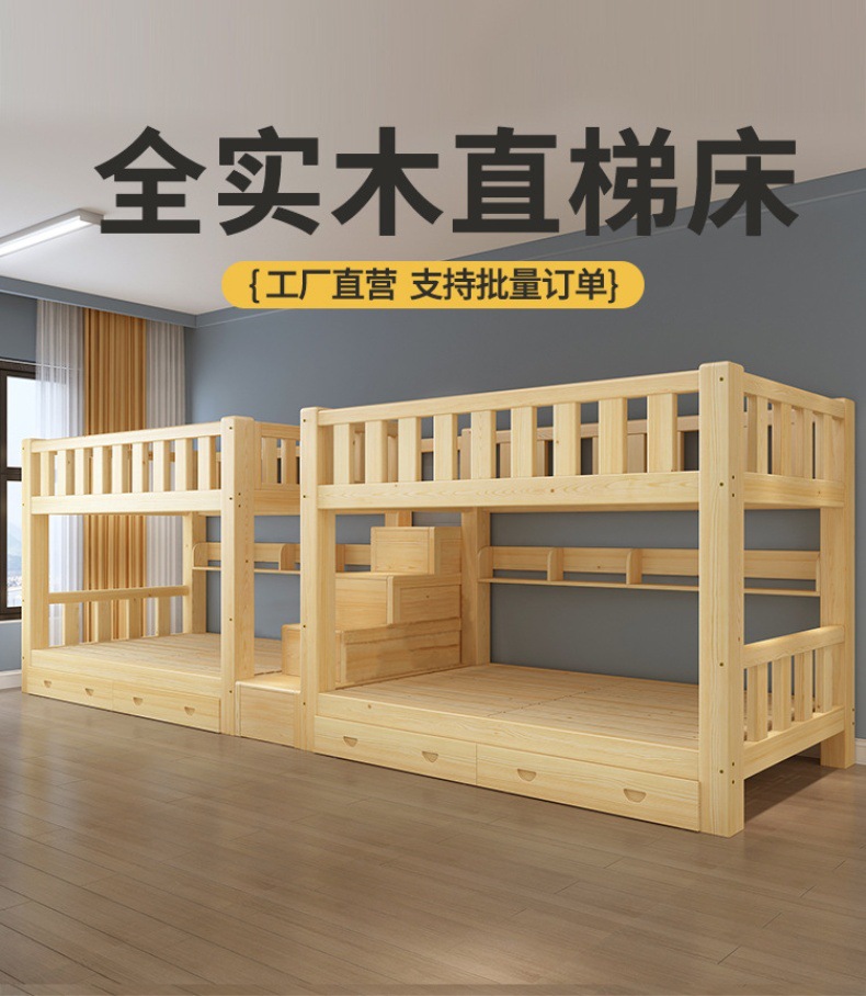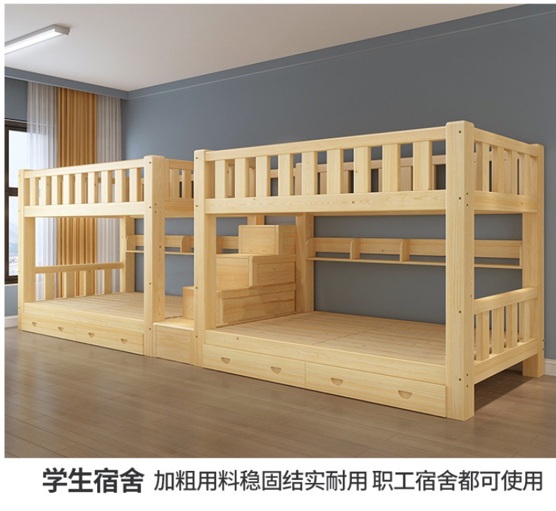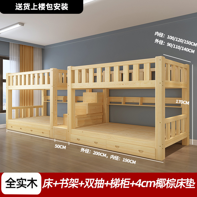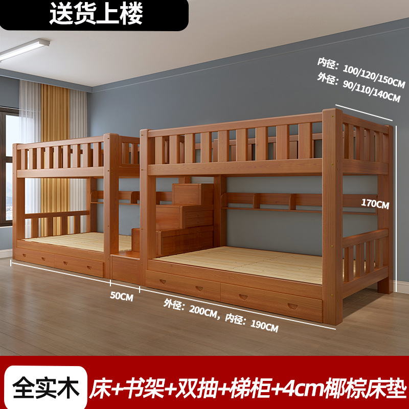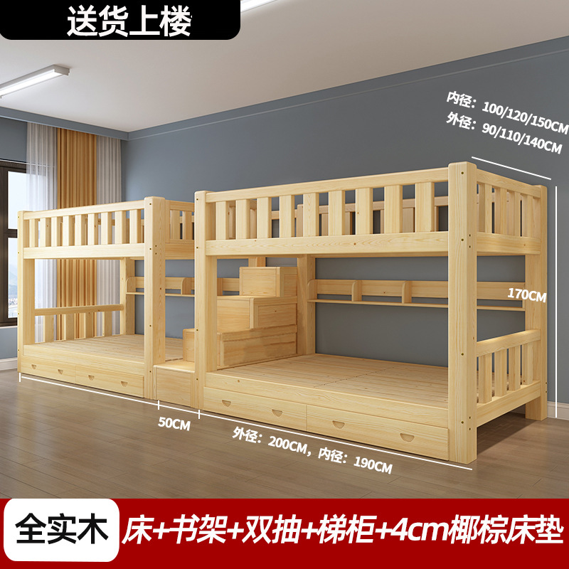 단단한 나무 높고 낮은 침대 기숙사 조합 이층 침대 경제적 인 2 층 침대 작은 아파트 이층 침대 성인 상부 및 하부 이층 침대스토어 가기