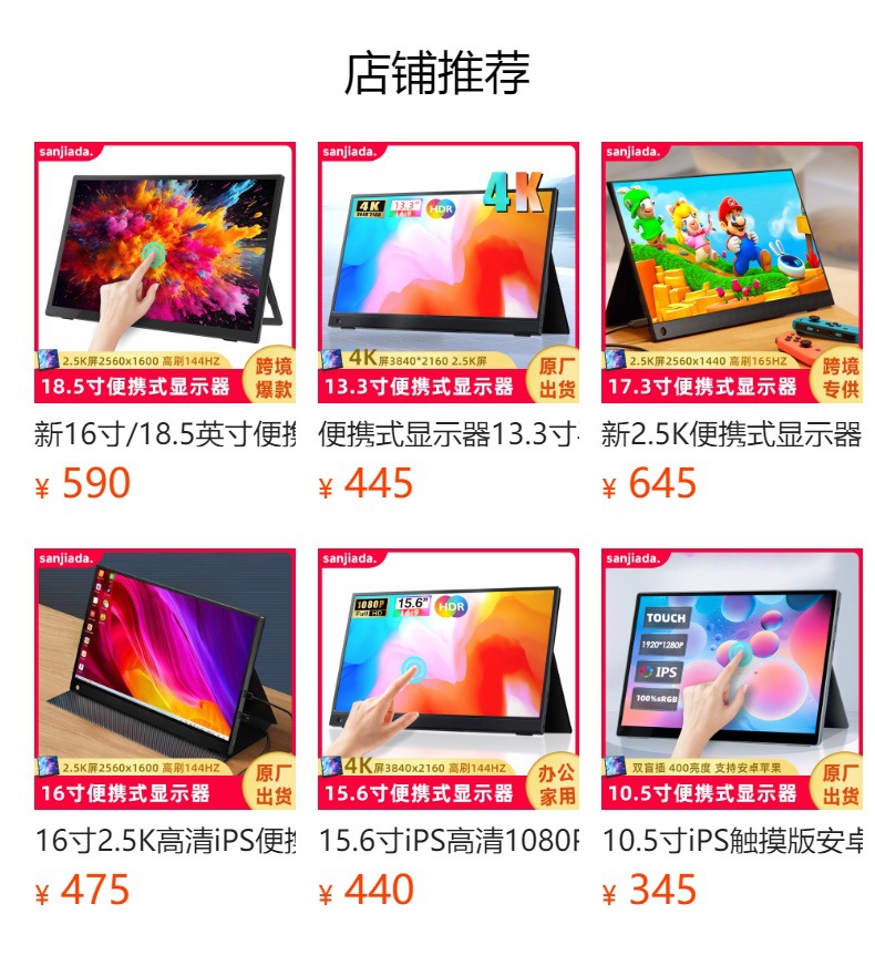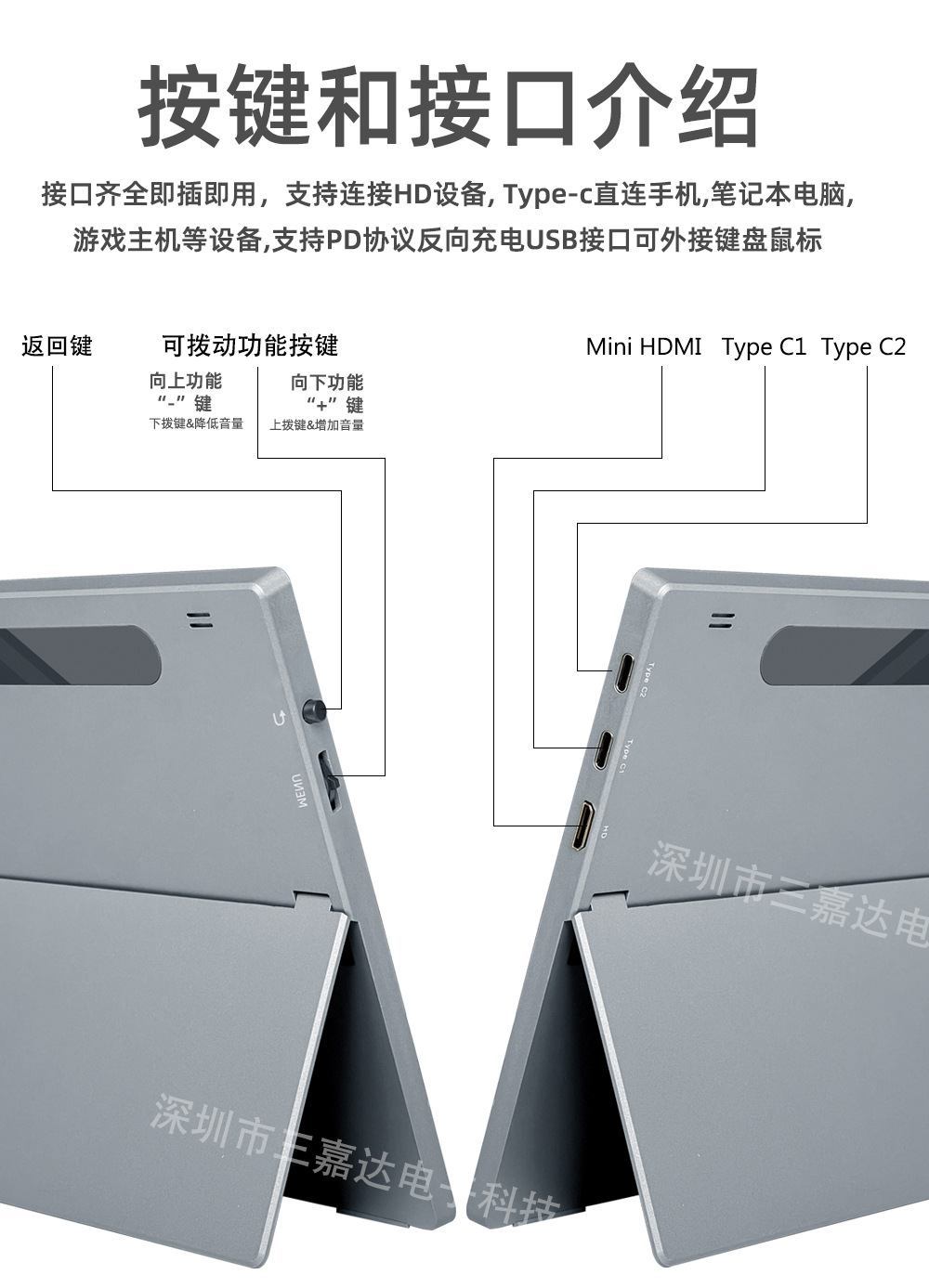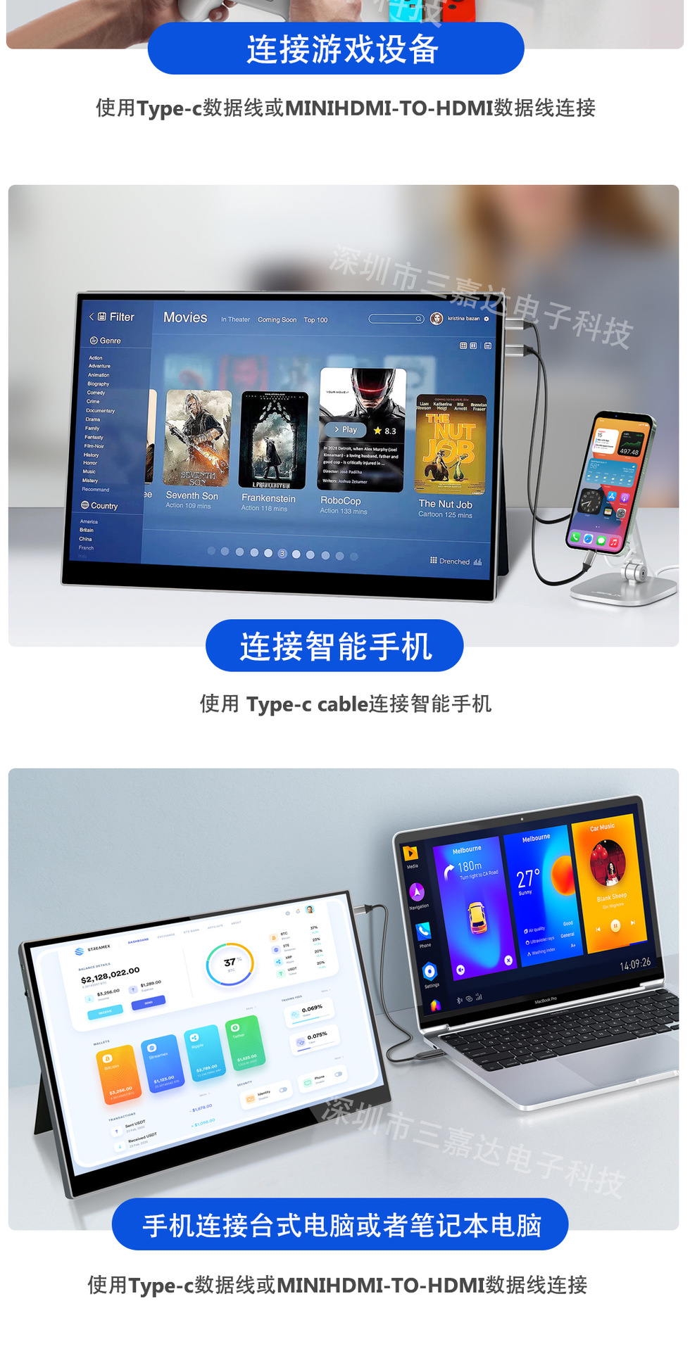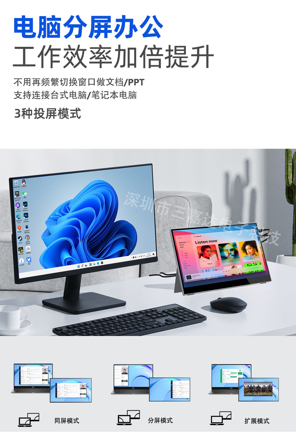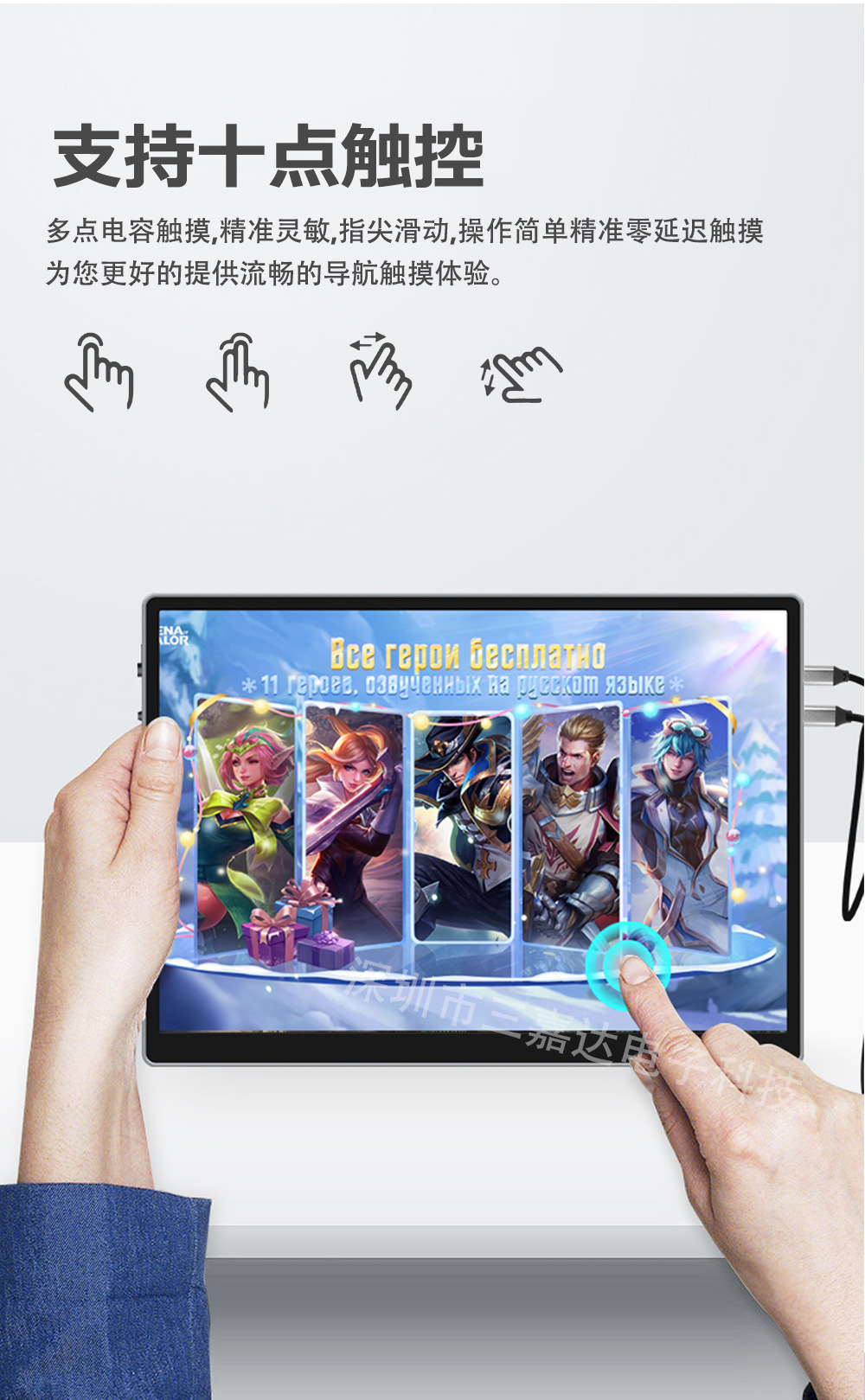 Sanjieda 10.5inch iPS 터치 스크린 휴대용 모니터 휴대 전화 스크린 프로젝션 노트북 확장 사무실 엔터테인먼트스토어 가기