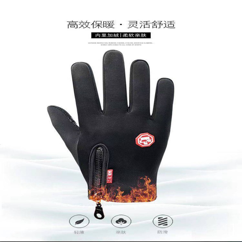 남성과 여성의 터치 스크린 장갑 겨울 방풍 지퍼 기모 미끄럼 방지 실리콘 장갑 야외 등산 사이클링